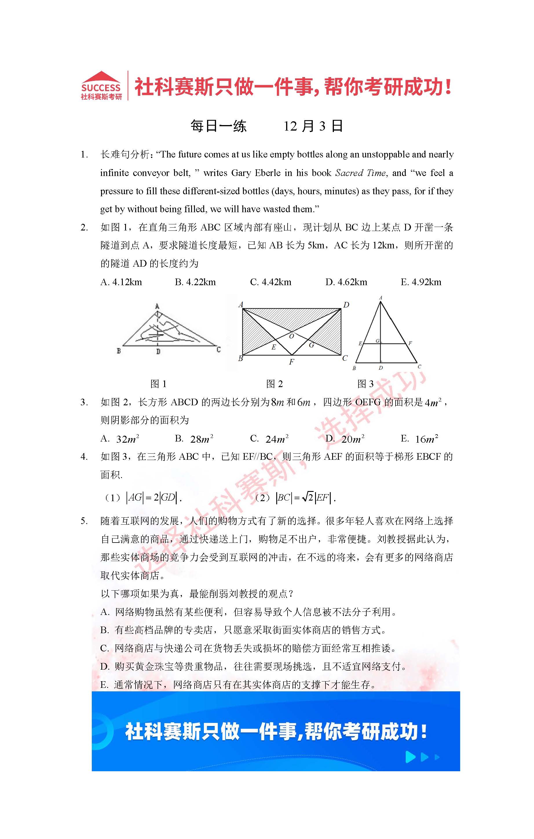 導(dǎo)讀:考研是一場持久戰(zhàn),保持良好的學(xué)習(xí)習(xí)慣,是能確保復(fù)習(xí)高效的關(guān)鍵。今天社科賽斯MBA備考網(wǎng)小編整理了“2022管理類聯(lián)考12月3日每日一練及答案”的內(nèi)容,希望能對廣大考生有所幫助。