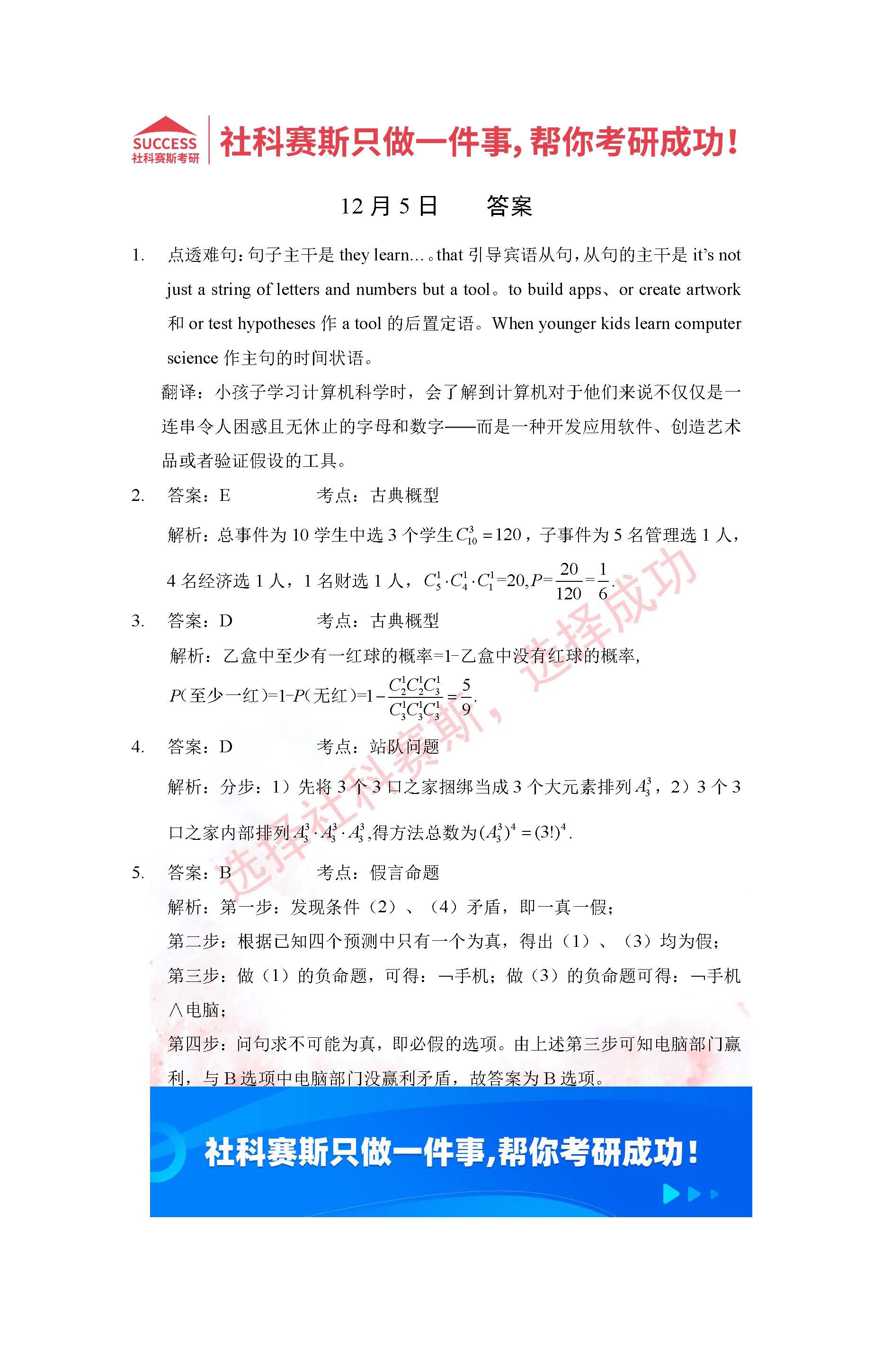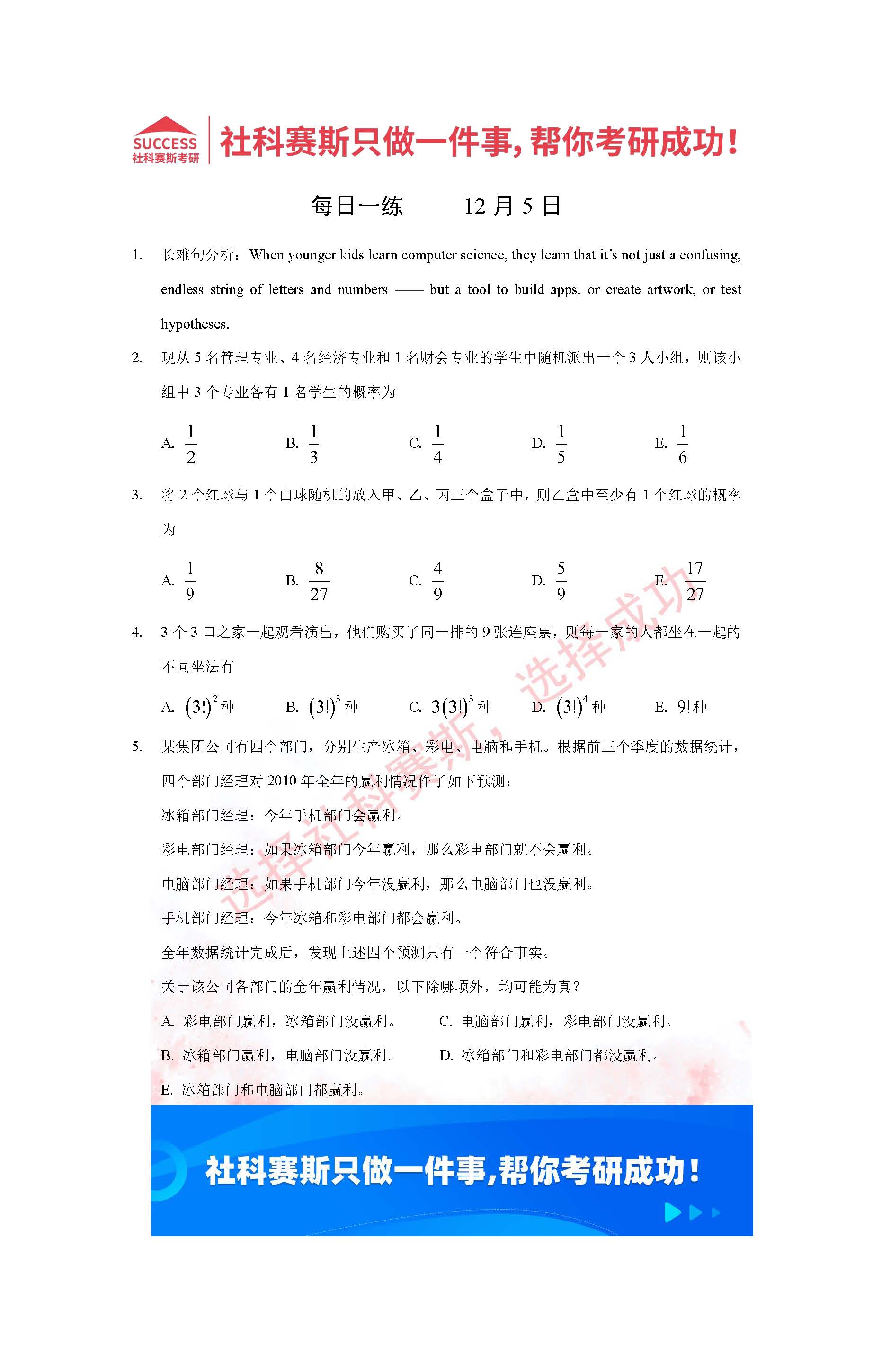 導讀:考研是一場持久戰,保持良好的學習習慣,是能確保復習高效的關鍵。今天社科賽斯MBA備考網小編整理了“2022管理類聯考12月5日每日一練及答案”的內容,希望能對廣大考生有所幫助。