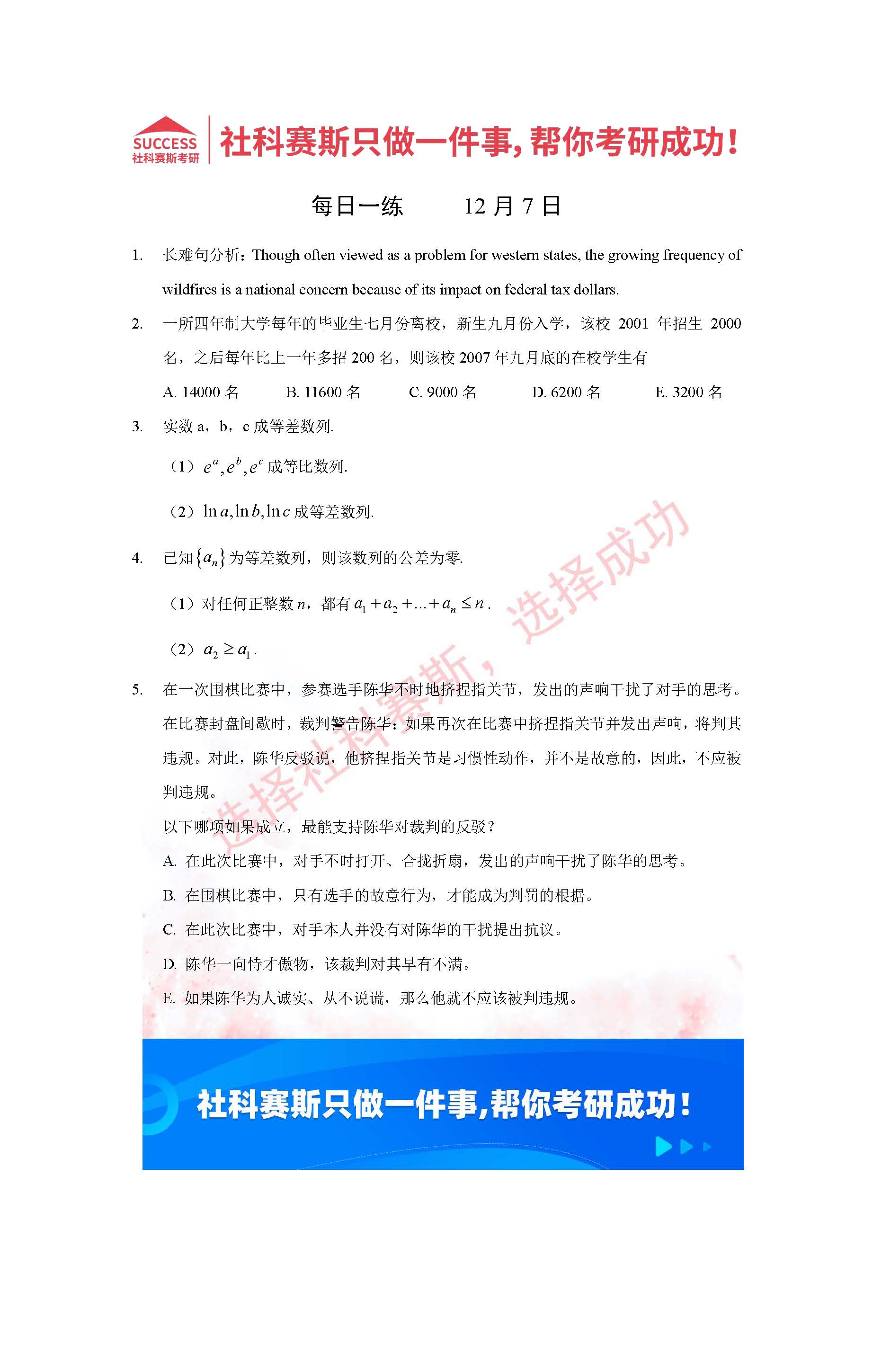 導讀:考研是一場持久戰,保持良好的學習習慣,是能確保復習高效的關鍵。今天社科賽斯MBA備考網小編整理了“2022管理類聯考12月7日每日一練及答案”的內容,希望能對廣大考生有所幫助。