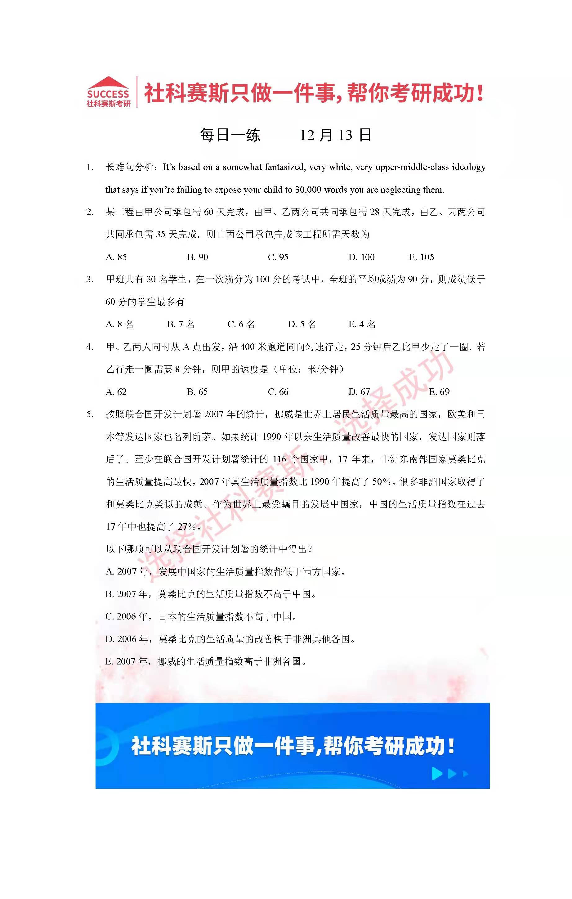 導(dǎo)讀:考研是一場(chǎng)持久戰(zhàn),保持良好的學(xué)習(xí)習(xí)慣,是能確保復(fù)習(xí)高效的關(guān)鍵。今天社科賽斯MBA備考網(wǎng)小編整理了“2022管理類聯(lián)考12月13日每日一練及答案”的內(nèi)容,希望能對(duì)廣大考生有所幫助。