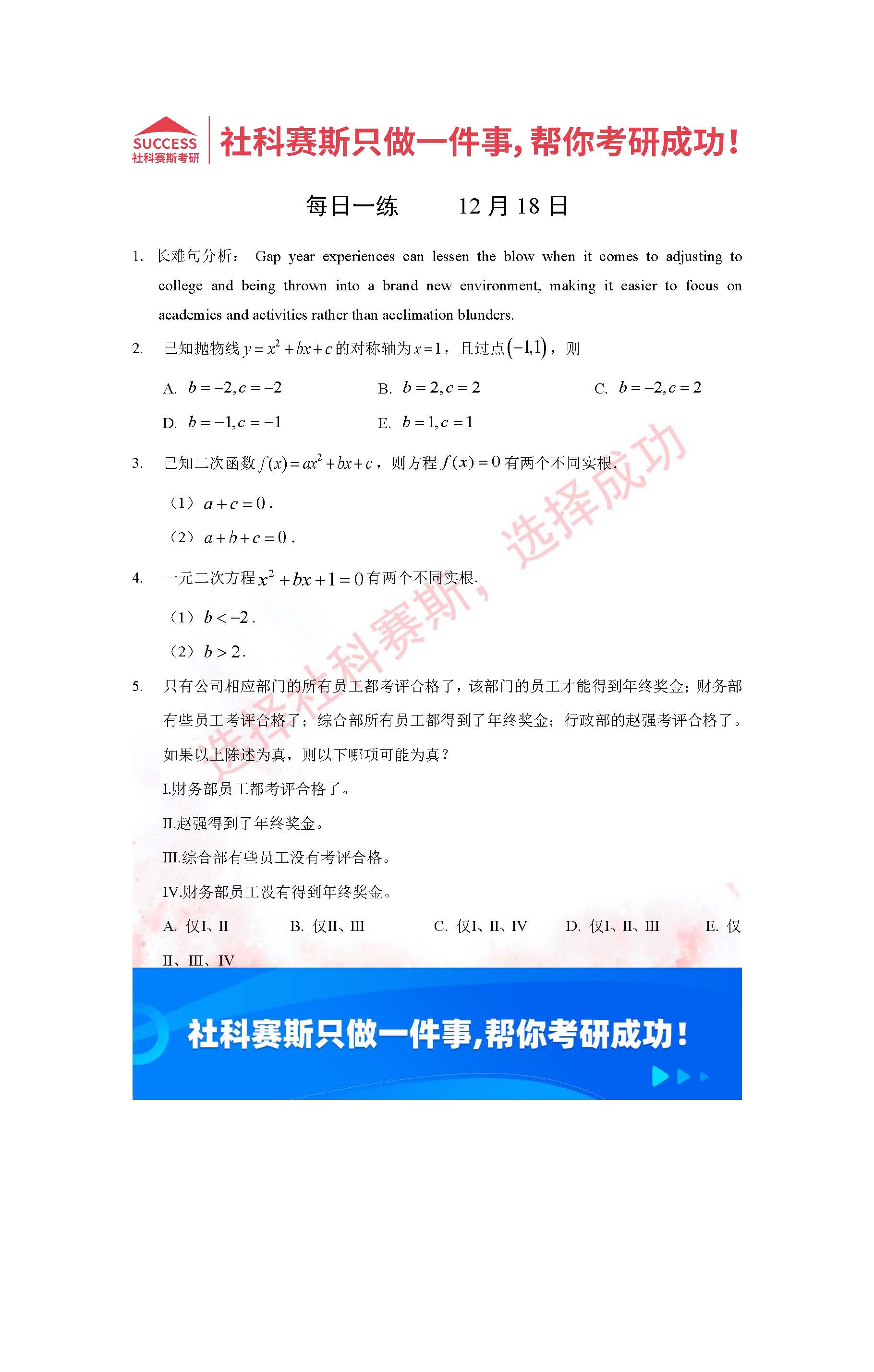 導讀:考研是一場持久戰,保持良好的學習習慣,是能確保復習高效的關鍵。今天社科賽斯MBA備考網小編整理了“2022管理類聯考12月18日每日一練及答案”的內容,希望能對廣大考生有所幫助。