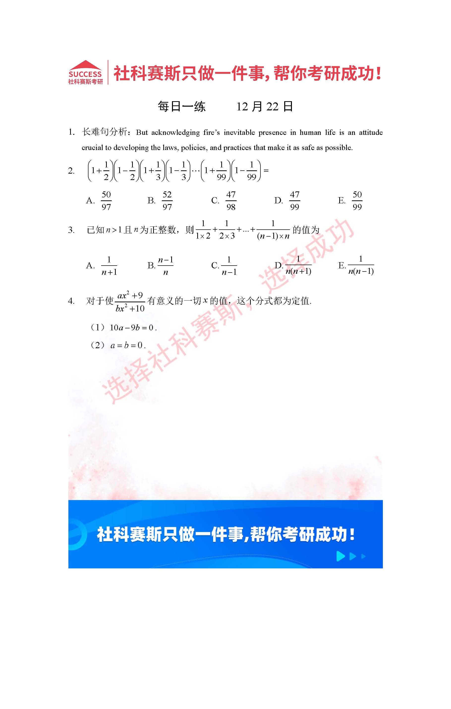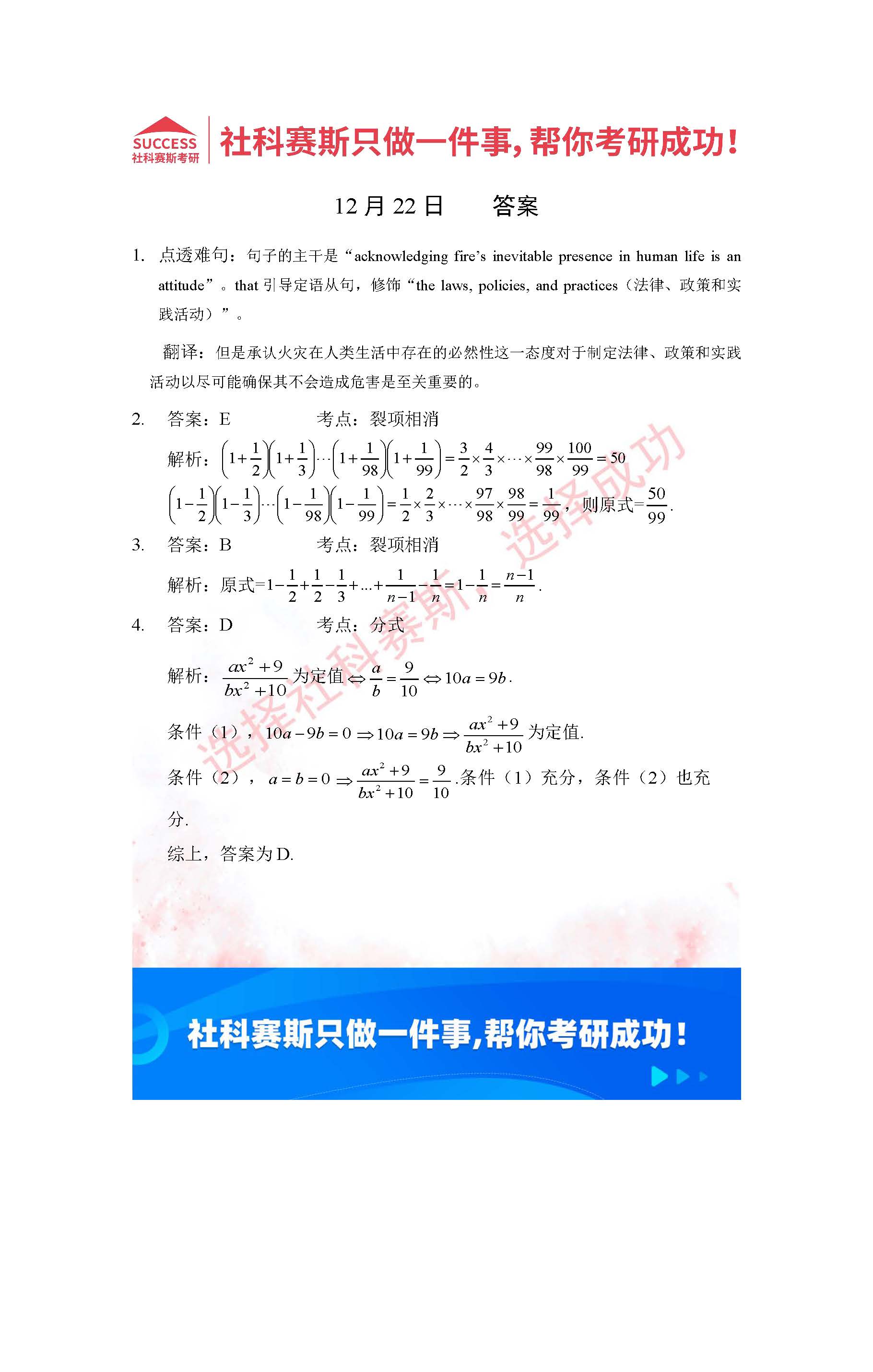 導讀:考研是一場持久戰,保持良好的學習習慣,是能確保復習高效的關鍵。今天社科賽斯MBA備考網小編整理了“2022管理類聯考12月22日每日一練及答案”的內容,希望能對廣大考生有所幫助。