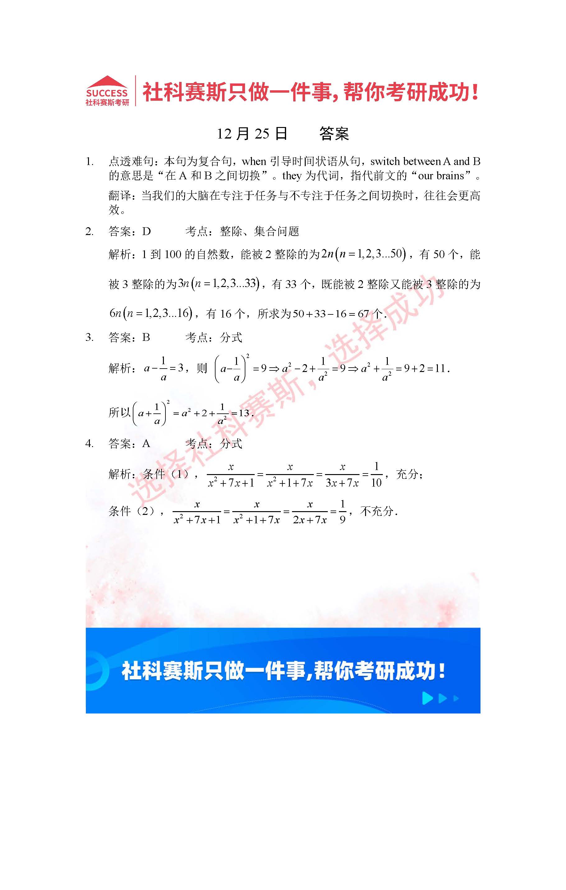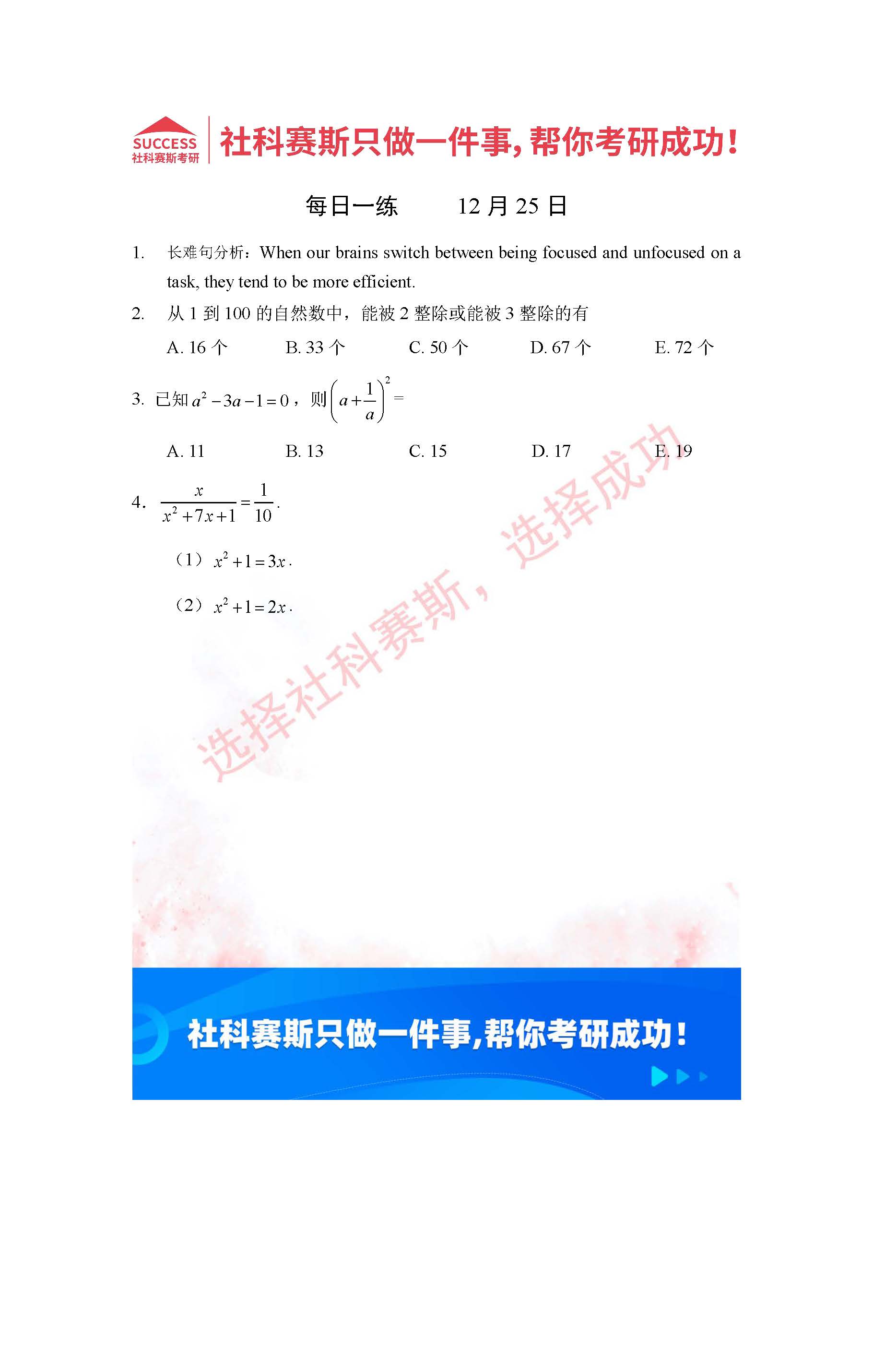 導讀:考研是一場持久戰,保持良好的學習習慣,是能確保復習高效的關鍵。今天社科賽斯MBA備考網小編整理了“2022管理類聯考12月25日每日一練及答案”的內容,希望能對廣大考生有所幫助。