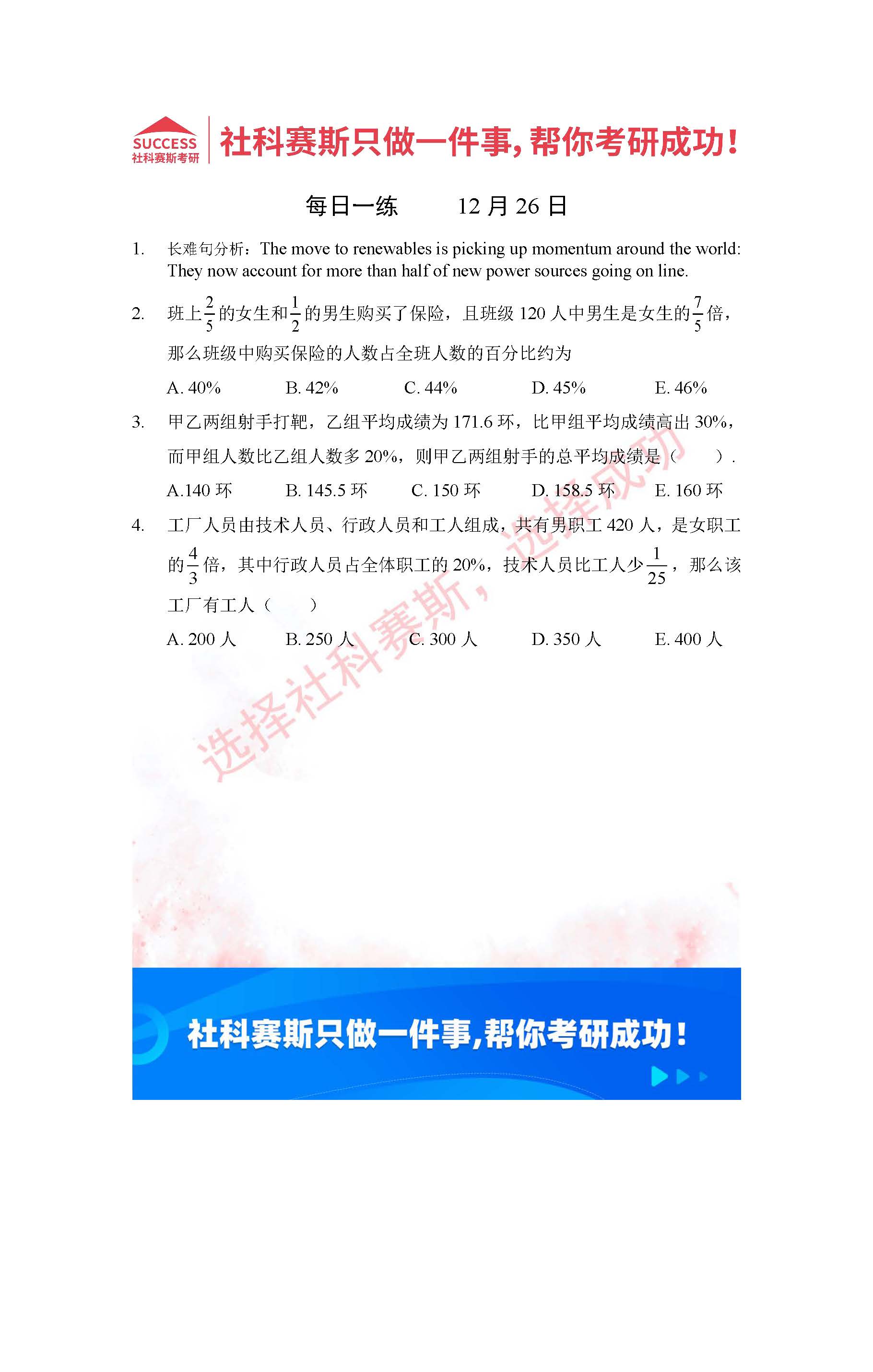 導(dǎo)讀:考研是一場持久戰(zhàn),保持良好的學(xué)習(xí)習(xí)慣,是能確保復(fù)習(xí)高效的關(guān)鍵。今天社科賽斯MBA備考網(wǎng)小編整理了“2022管理類聯(lián)考12月26日每日一練及答案”的內(nèi)容,希望能對(duì)廣大考生有所幫助。
