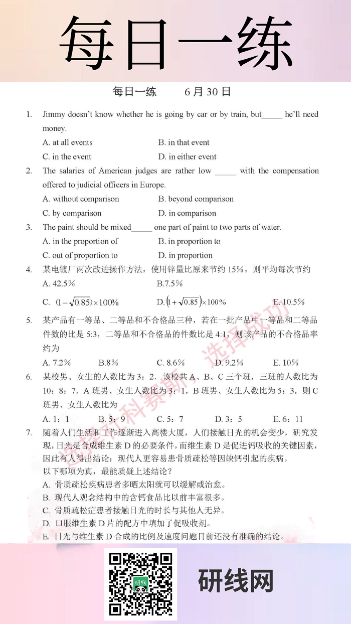 以上就是今日每日一練的全部內容,跟著每日一練,考研輕松復習!更多考試練習,盡在“每日一練”欄目。