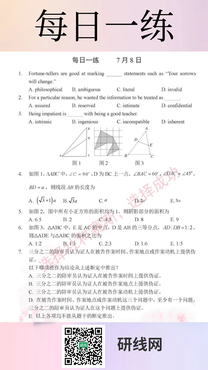 以上就是今日每日一練的全部內(nèi)容,跟著每日一練,考研輕松復(fù)習(xí)!更多考試練習(xí),盡在“每日一練”欄目。