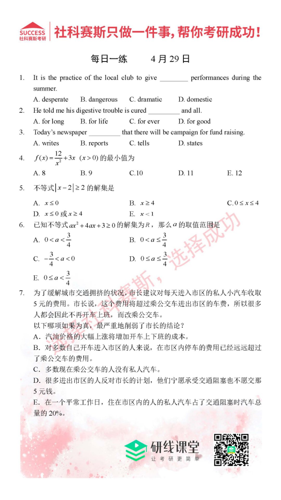考研是一場持久戰(zhàn),保持良好的學習習慣,是能確保復習高效的關鍵。MBA備考網(wǎng)小編整理了管綜的每日一練,希望能對廣大考生有所幫助。
