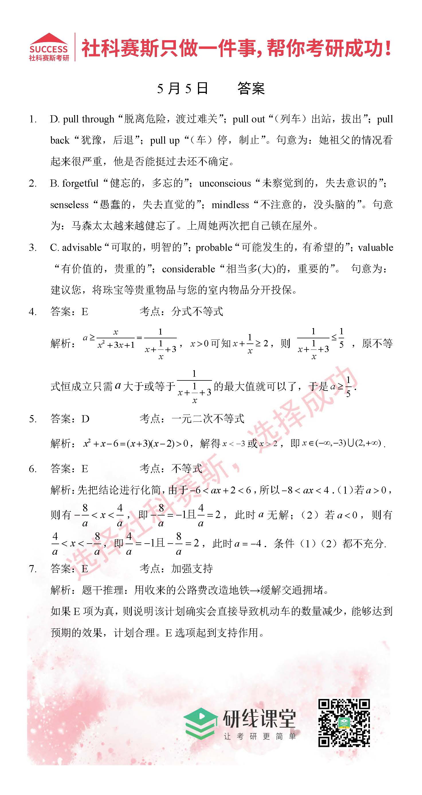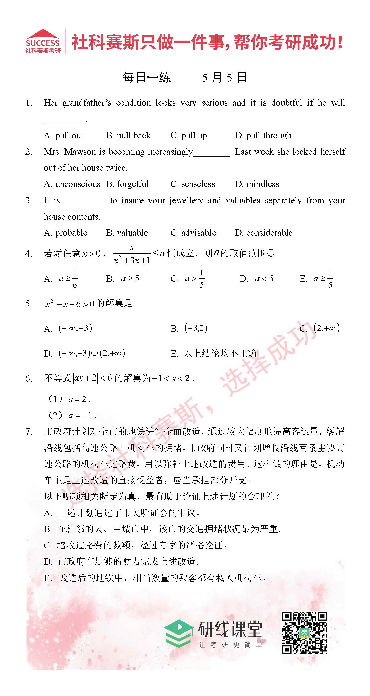 導(dǎo)讀:考研是一場持久戰(zhàn),保持良好的學(xué)習(xí)習(xí)慣,是能確保復(fù)習(xí)高效的關(guān)鍵。MBA備考網(wǎng)小編整理了管綜的每日一練,希望能對廣大考生有所幫助。