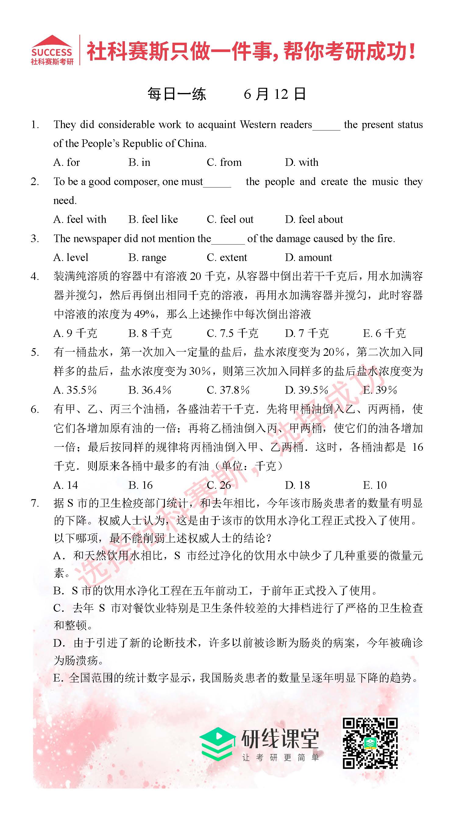 導(dǎo)讀:考研是一場(chǎng)持久戰(zhàn),保持良好的學(xué)習(xí)習(xí)慣,是能確保復(fù)習(xí)高效的關(guān)鍵。MBA備考網(wǎng)小編整理了管綜的每日一練,希望能對(duì)廣大考生有所幫助。