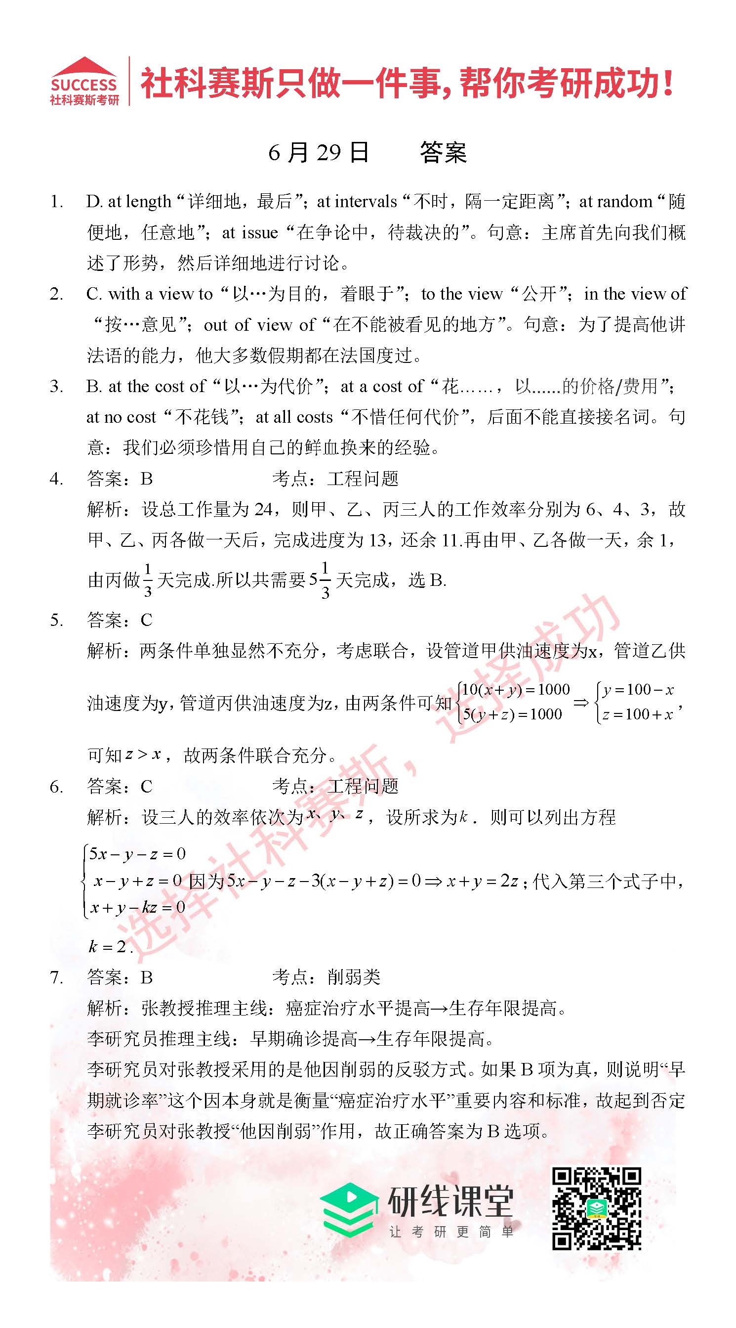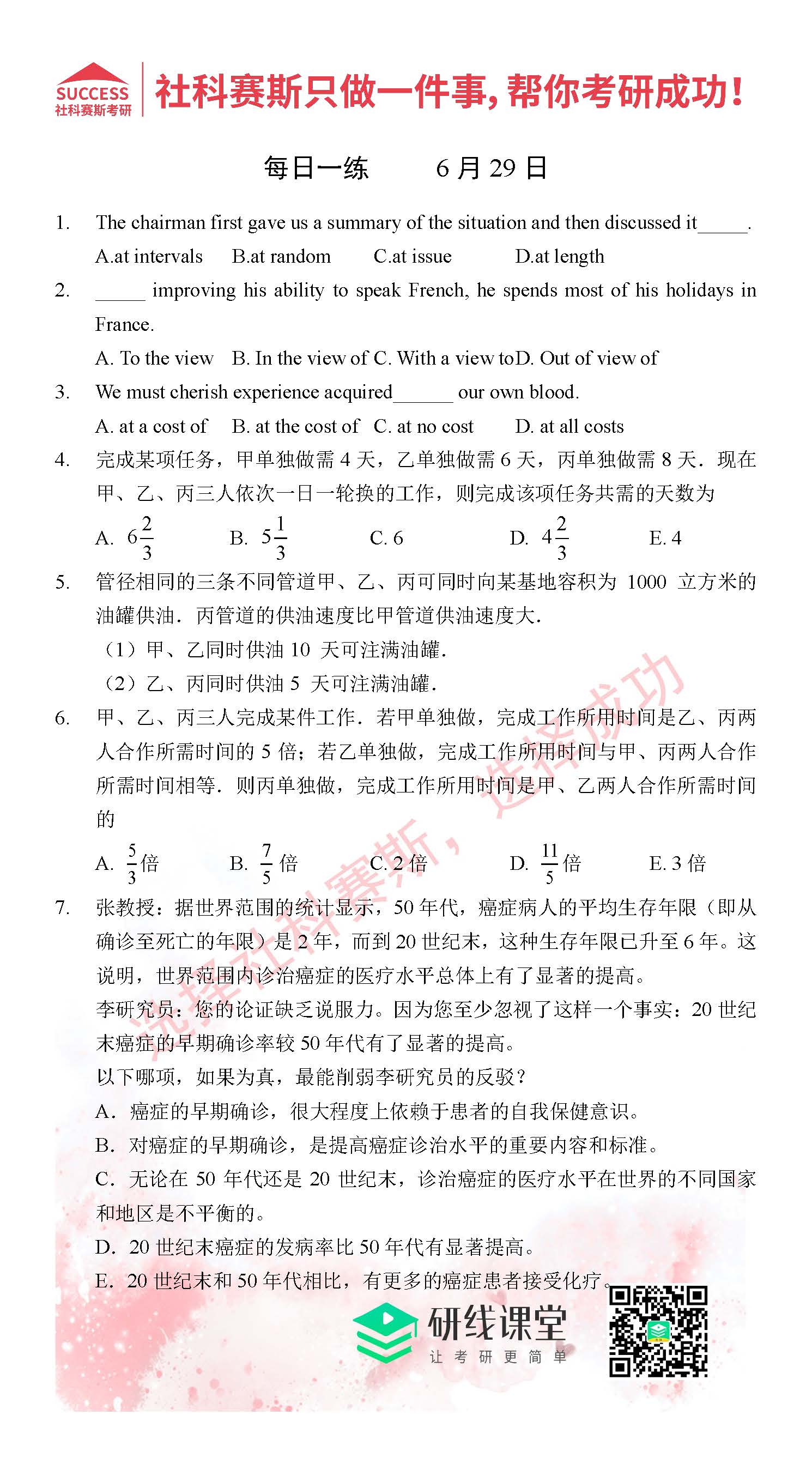 以上就是MBA備考網小編為大家提供的今日的每日一練“2021管理類聯考6月29日每日一練及答案”的全部內容,希望各位考生堅持利用起來,更多每日一練內容請持續關注MBA備考網管理類聯考每日一練。