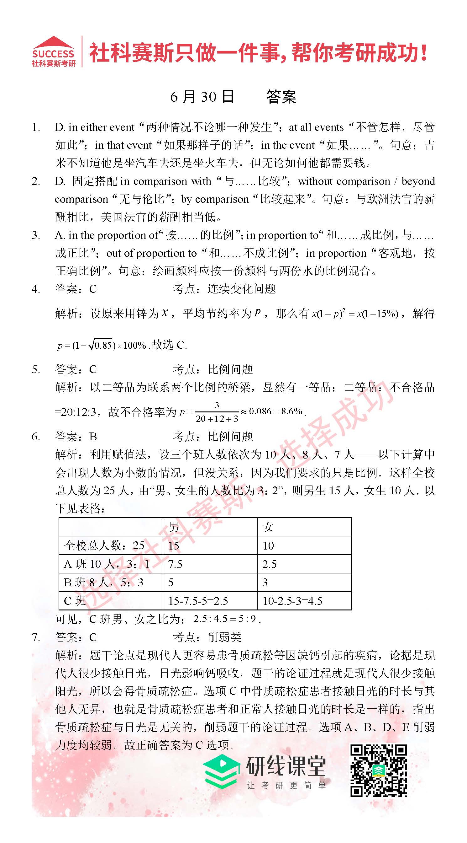 以上就是MBA備考網小編為大家提供的今日的每日一練“2021管理類聯考6月30日每日一練及答案”的全部內容,希望各位考生堅持利用起來,更多每日一練內容請持續關注MBA備考網管理類聯考每日一練。