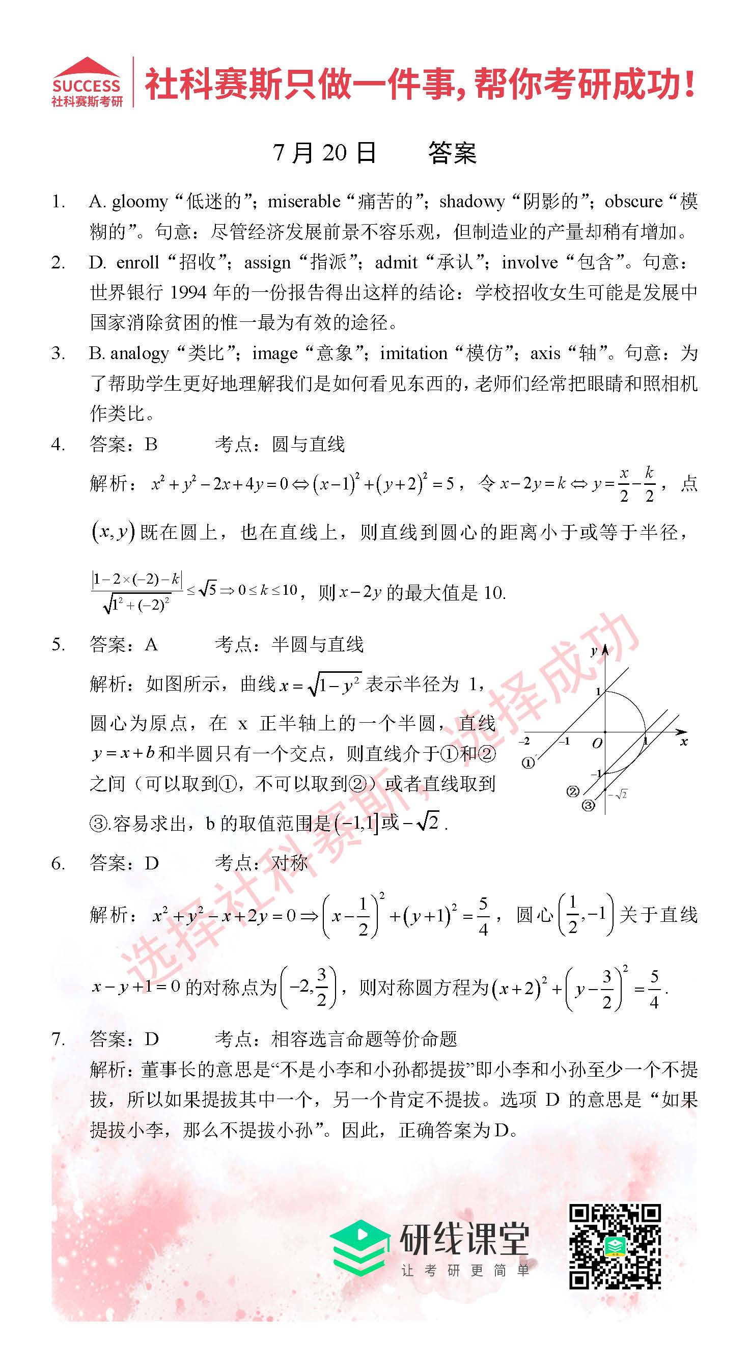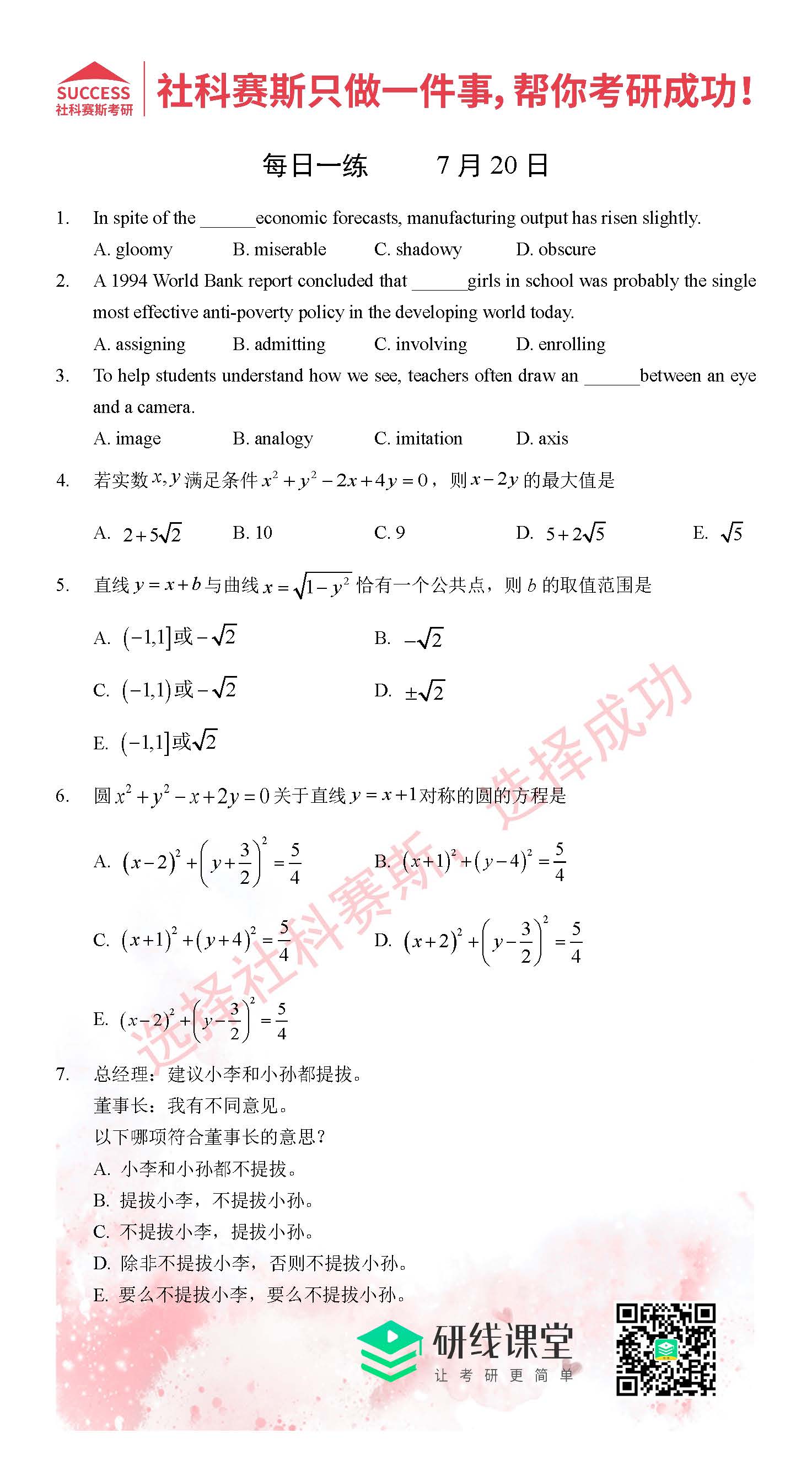 以上就是MBA備考網小編為大家提供的今日的每日一練“2021管理類聯考7月20日每日一練及答案”的全部內容,希望各位考生堅持利用起來,更多每日一練內容請持續關注MBA備考網管理類聯考每日一練。