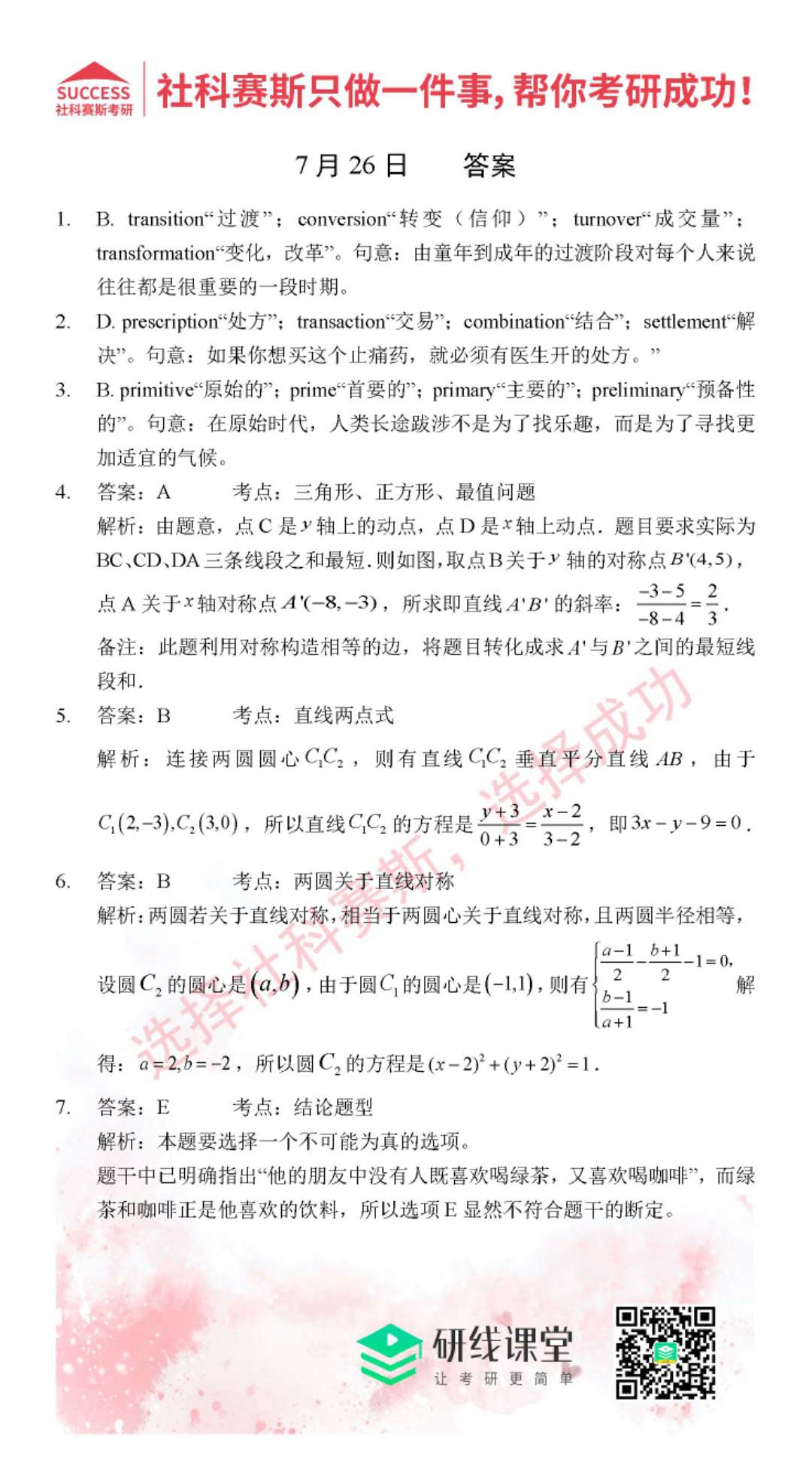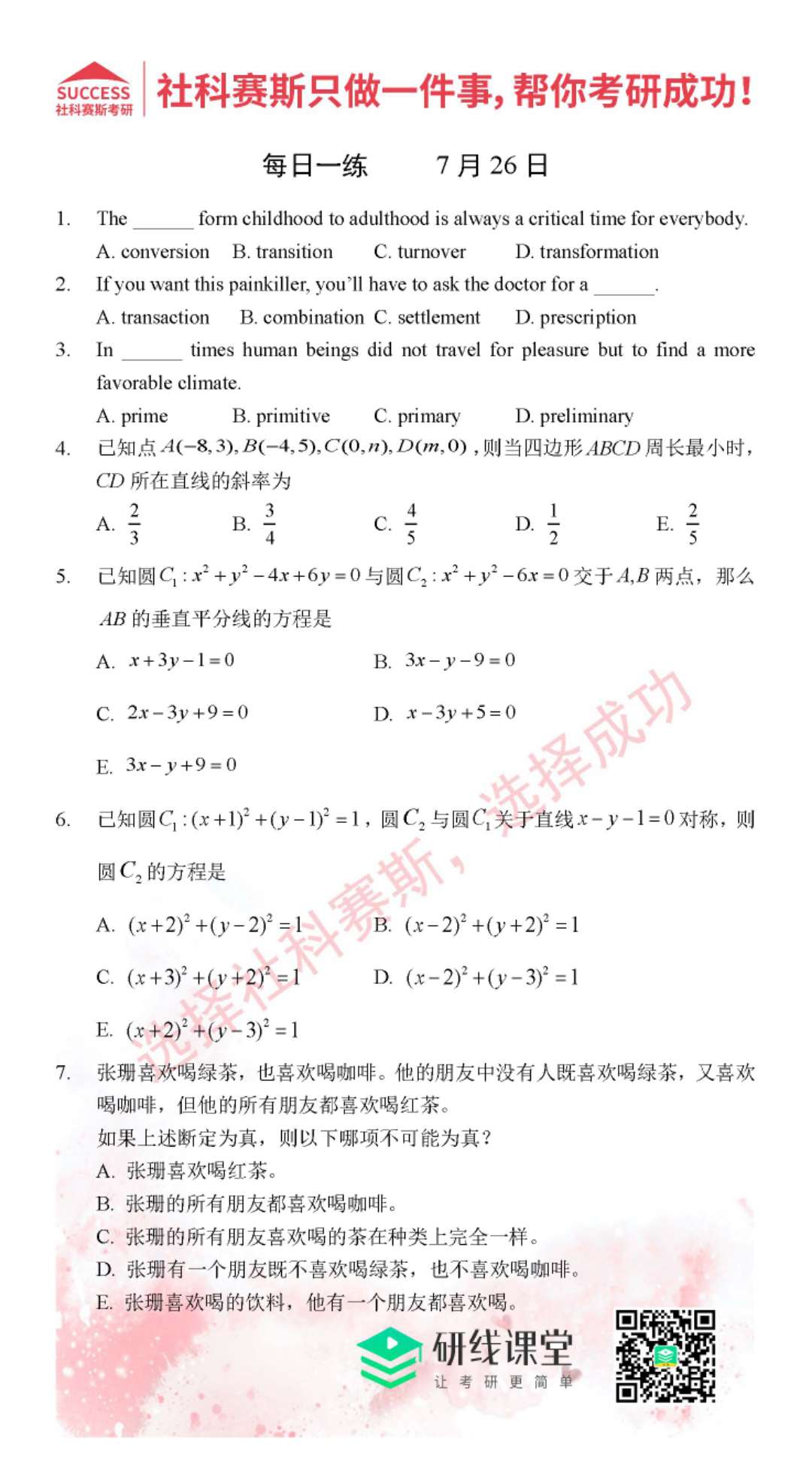以上就是MBA備考網(wǎng)小編為大家提供的今日每日一練“2021管理類聯(lián)考7月26日每日一練及答案”的全部?jī)?nèi)容,希望各位考生堅(jiān)持利用起來(lái),更多每日一練內(nèi)容請(qǐng)持續(xù)關(guān)注MBA備考網(wǎng)管理類聯(lián)考每日一練