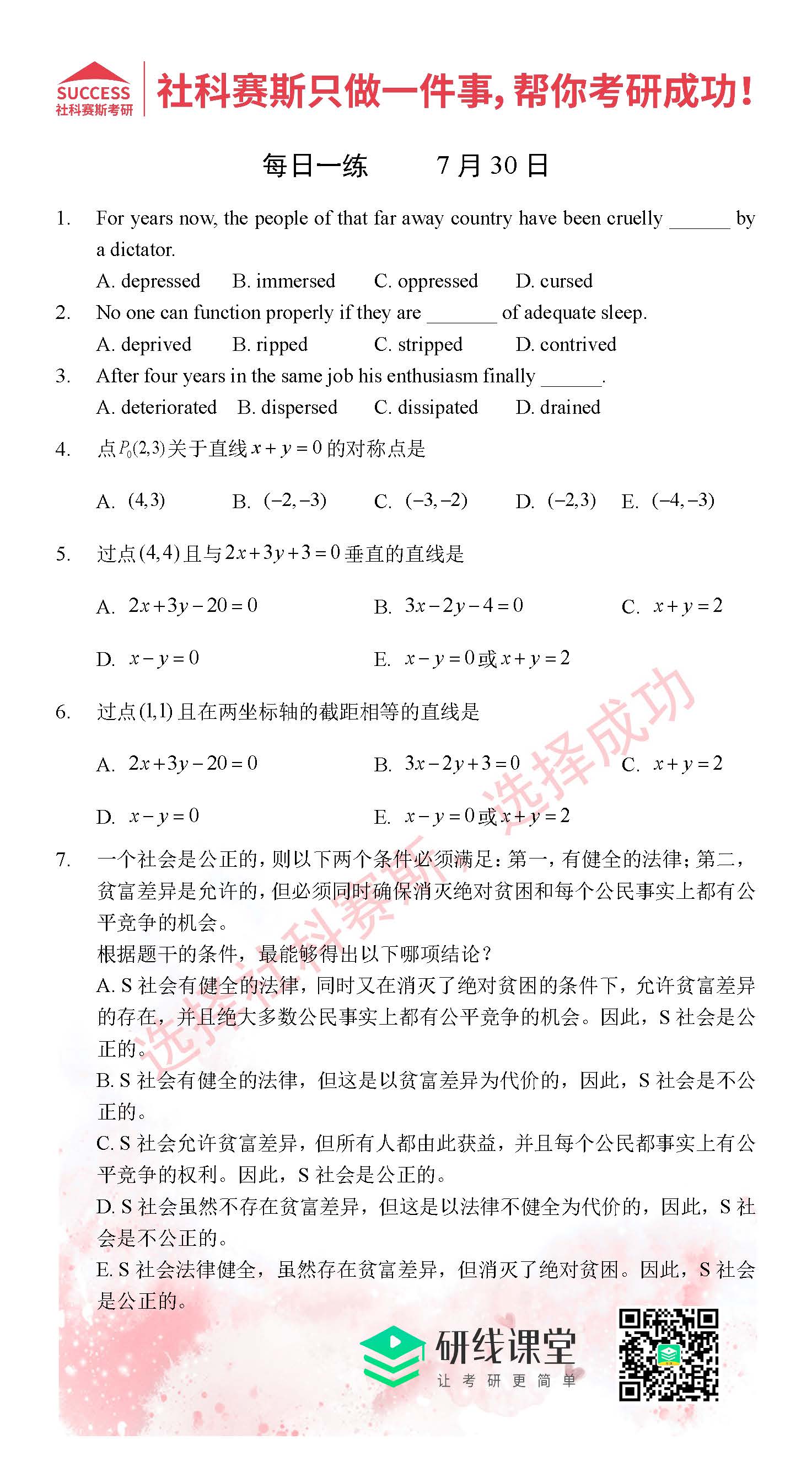 以上就是MBA備考網小編為大家提供的今日每日一練“2021管理類聯考7月30日每日一練及答案”的全部內容,希望各位考生堅持利用起來,更多每日一練內容請持續關注MBA備考網管理類聯考每日一練。