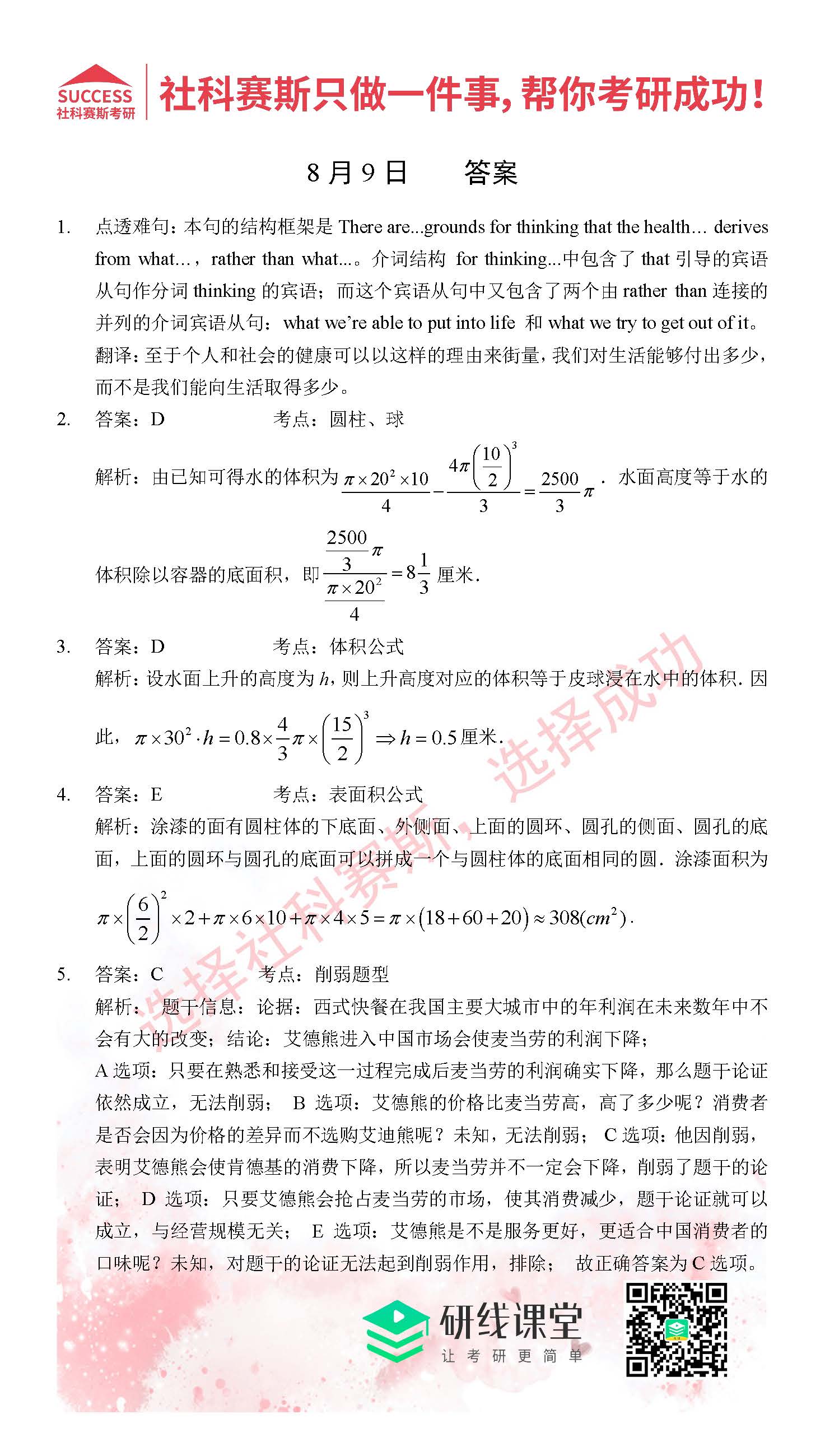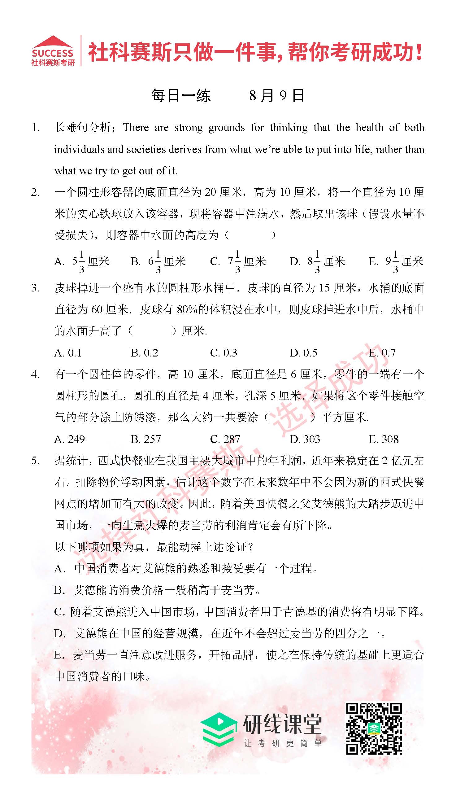 好文速遞:管理類聯(lián)考8月份精選習題匯總