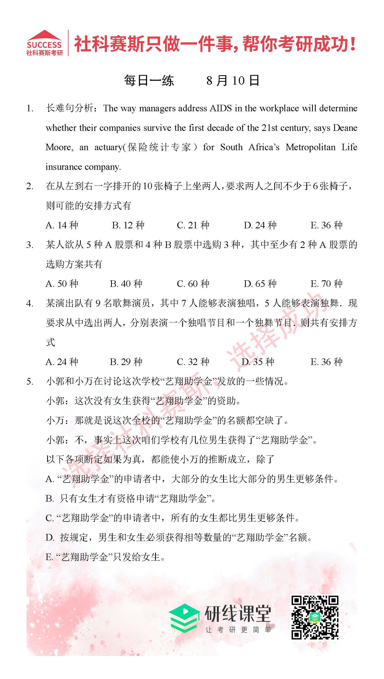 好文速遞:管理類聯考7月份精選習題匯總