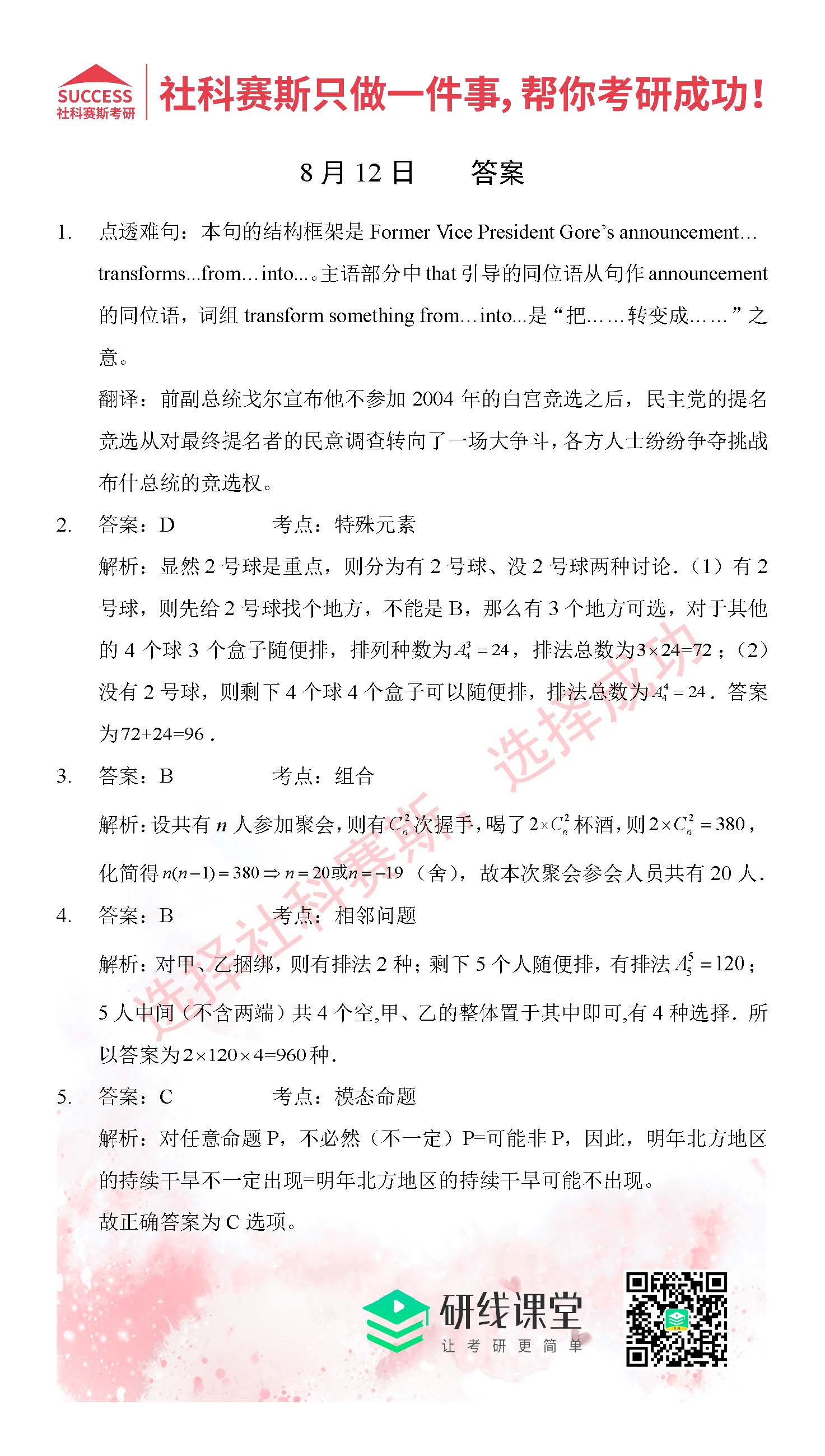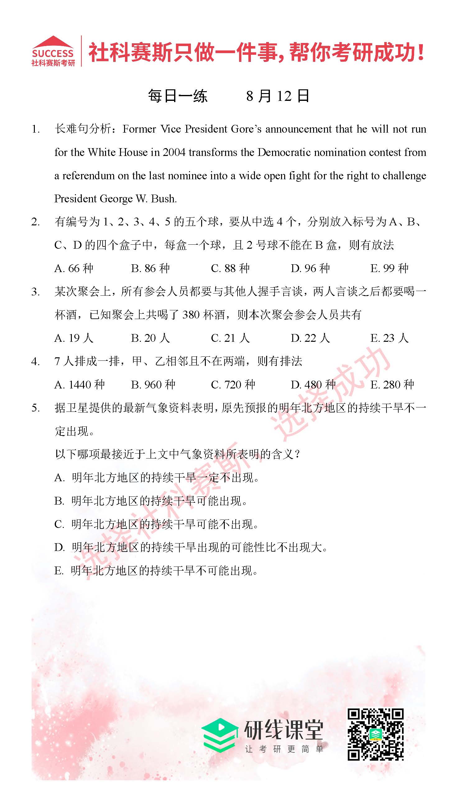 好文速遞:管理類聯考7月份精選習題匯總