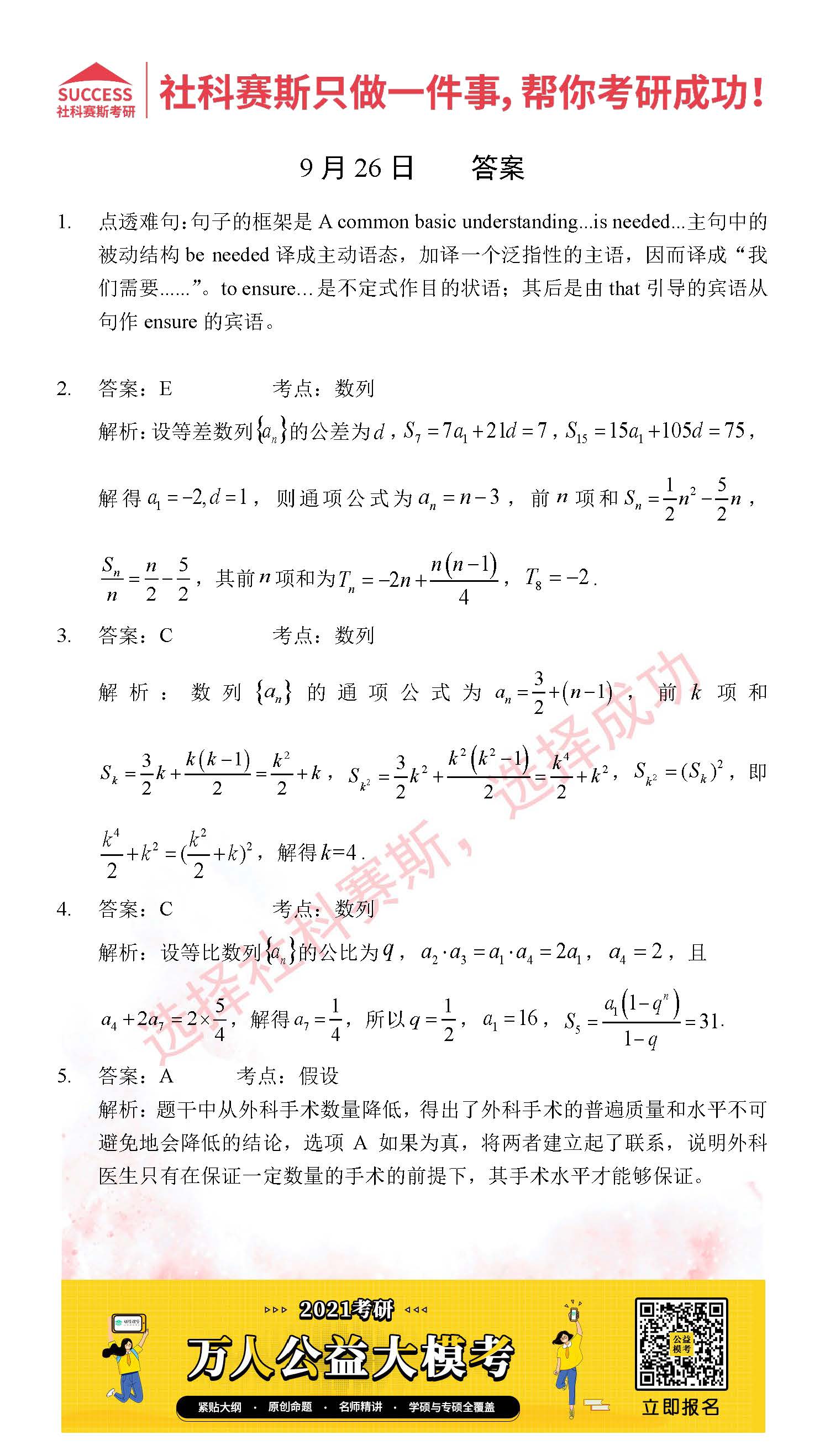 考研是一場持久戰,保持良好的學習習慣,是能確保復習高效的關鍵。今天社科賽斯MBA備考網小編整理了“2021管理類聯考9月26日每日一練及答案”的內容,希望能對廣大考生有所幫助。