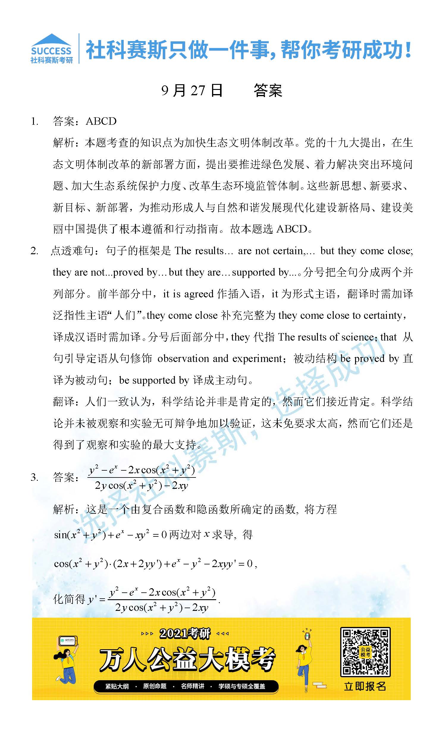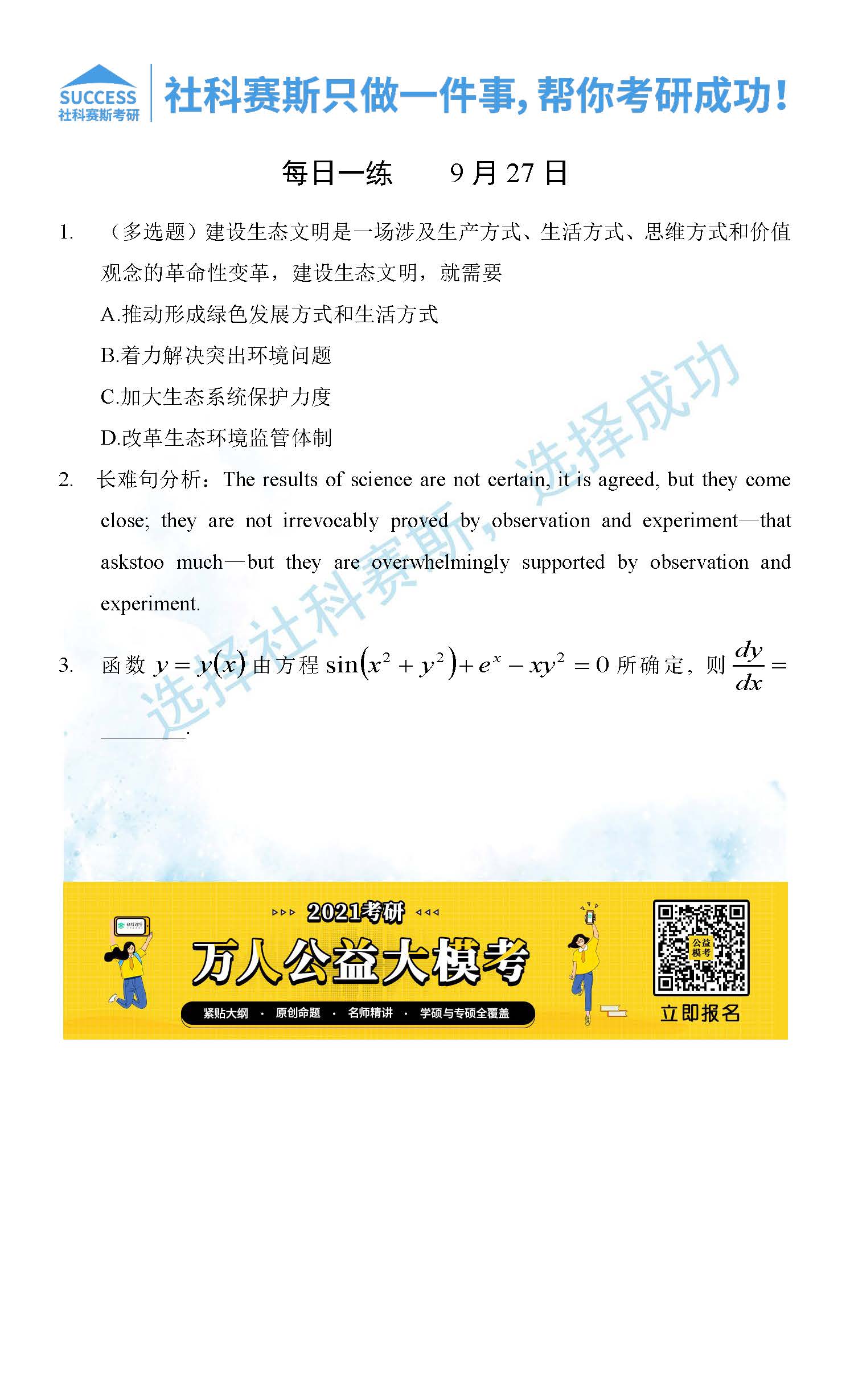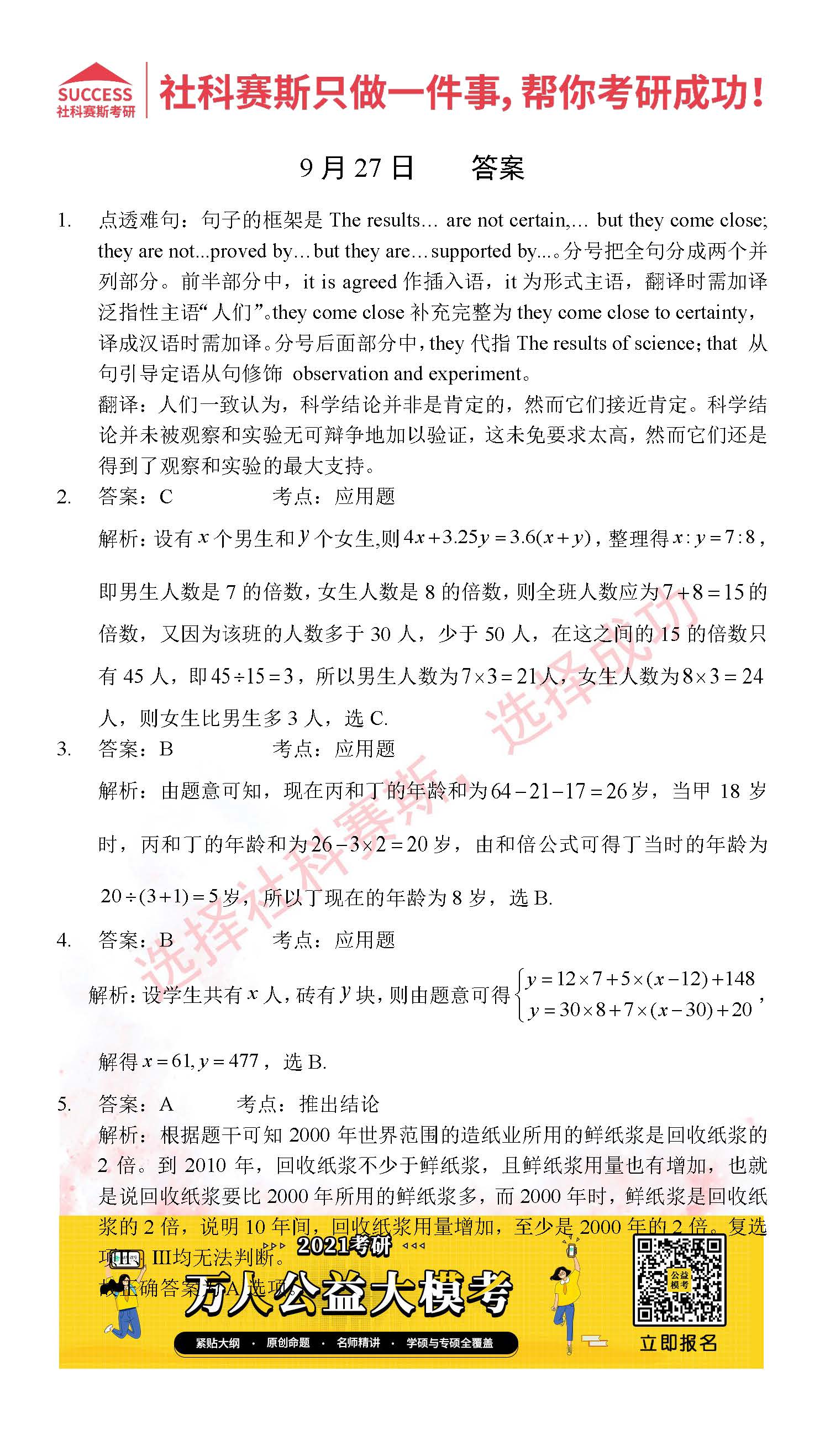 考研是一場持久戰,保持良好的學習習慣,是能確保復習高效的關鍵。今天社科賽斯MBA備考網小編整理了“2021管理類聯考9月27日每日一練及答案”的內容,希望能對廣大考生有所幫助。