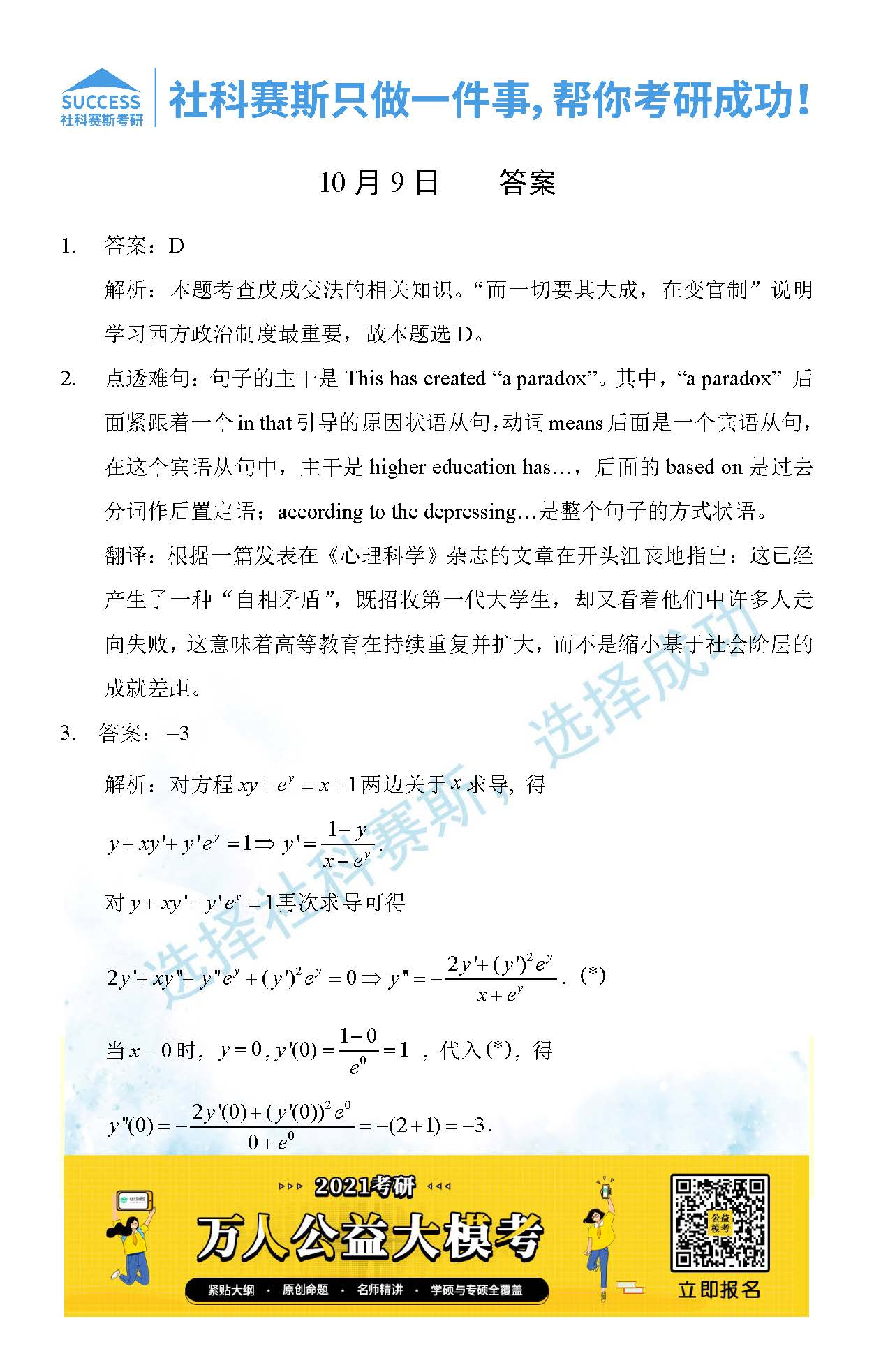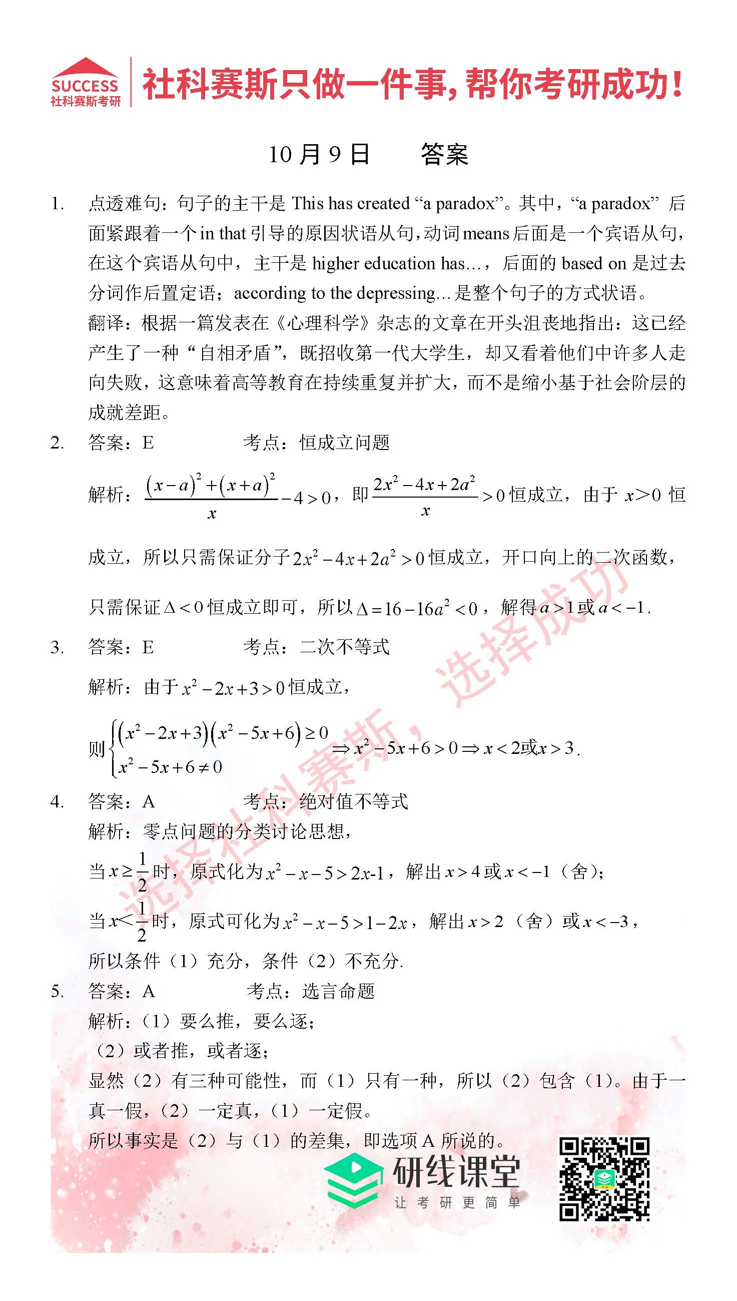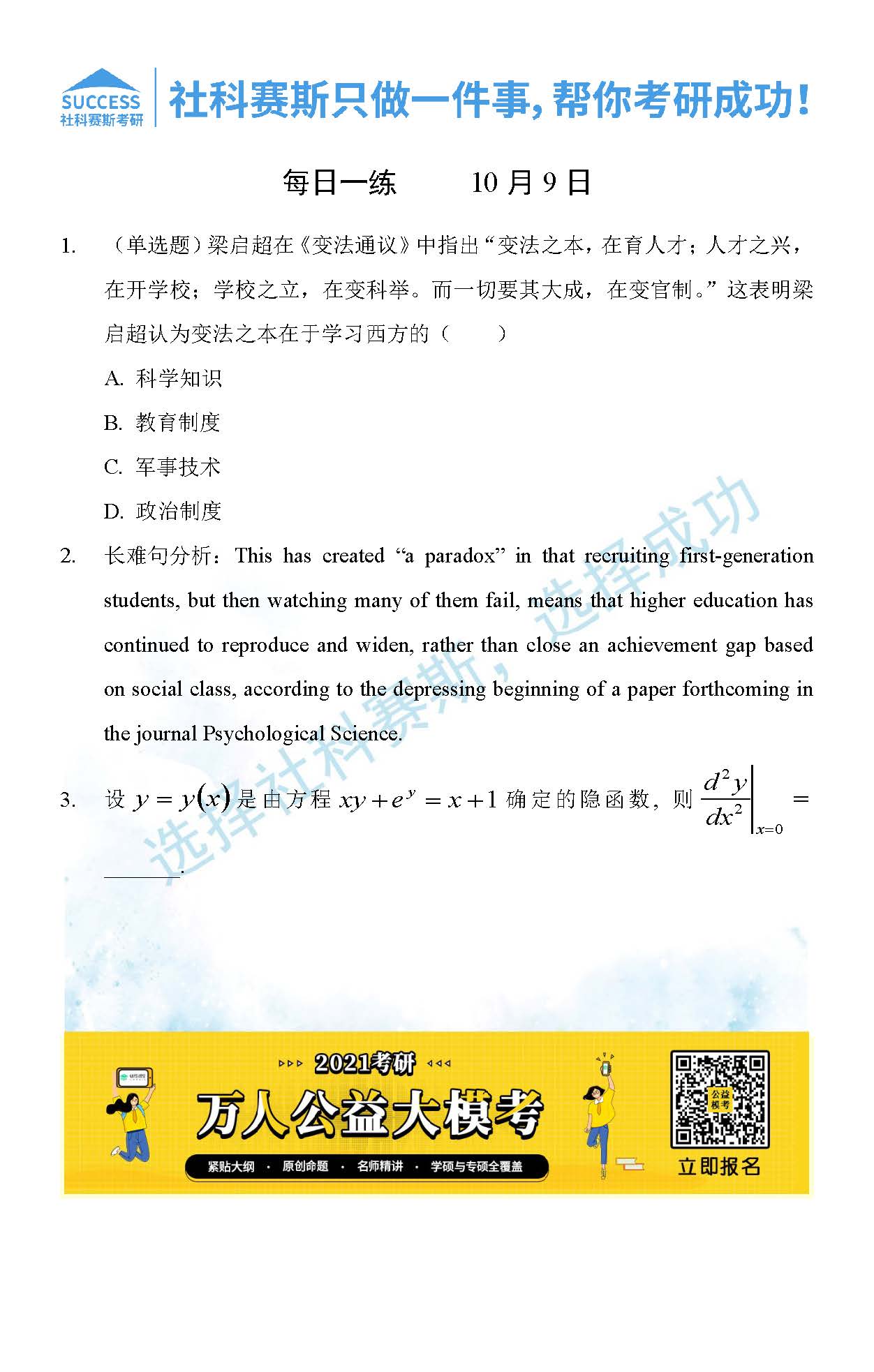 考研是一場持久戰,保持良好的學習習慣,是能確保復習高效的關鍵。今天社科賽斯MBA備考網小編整理了“2021管理類聯考10月9日每日一練及答案”的內容,希望能對廣大考生有所幫助。