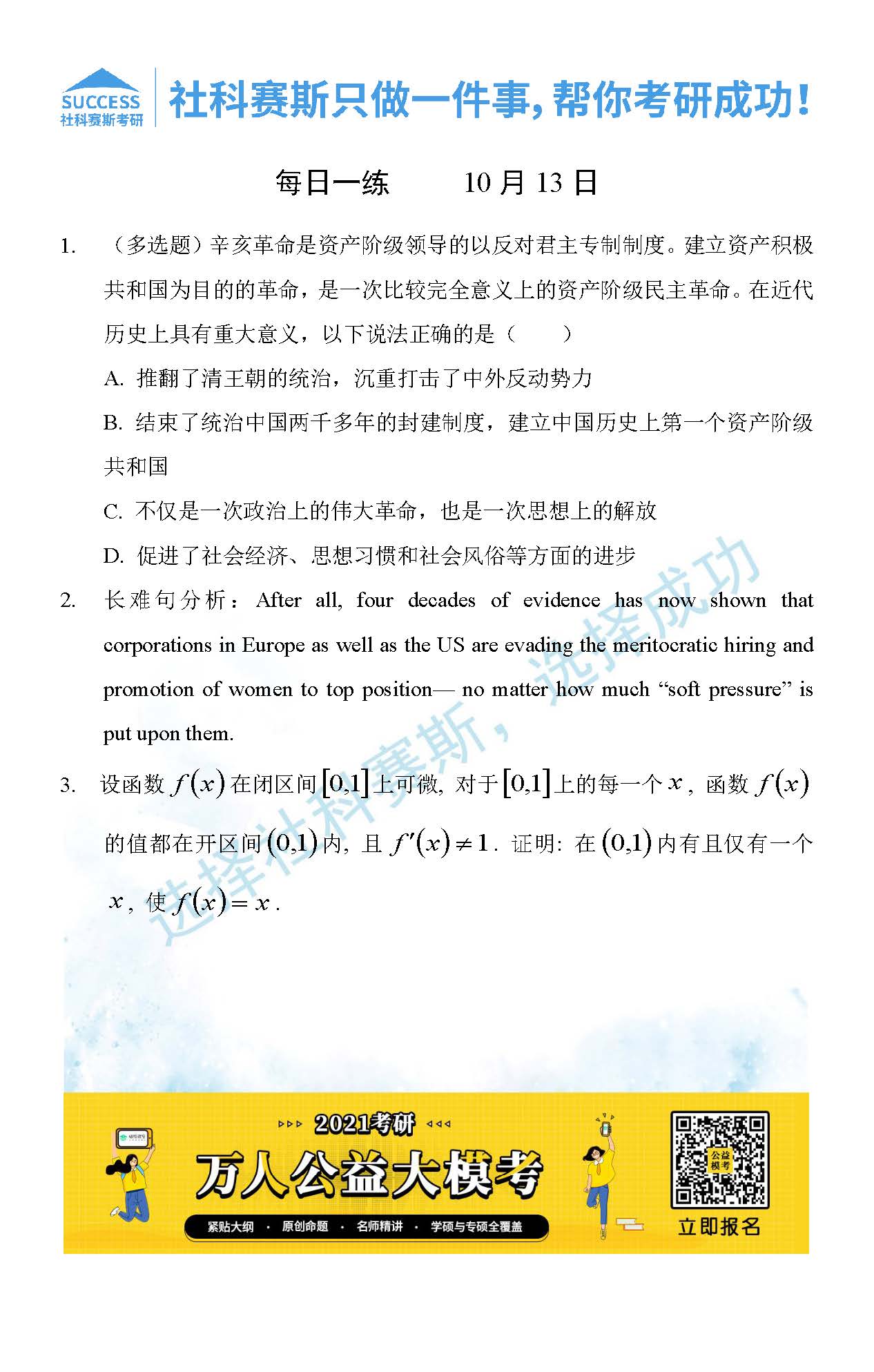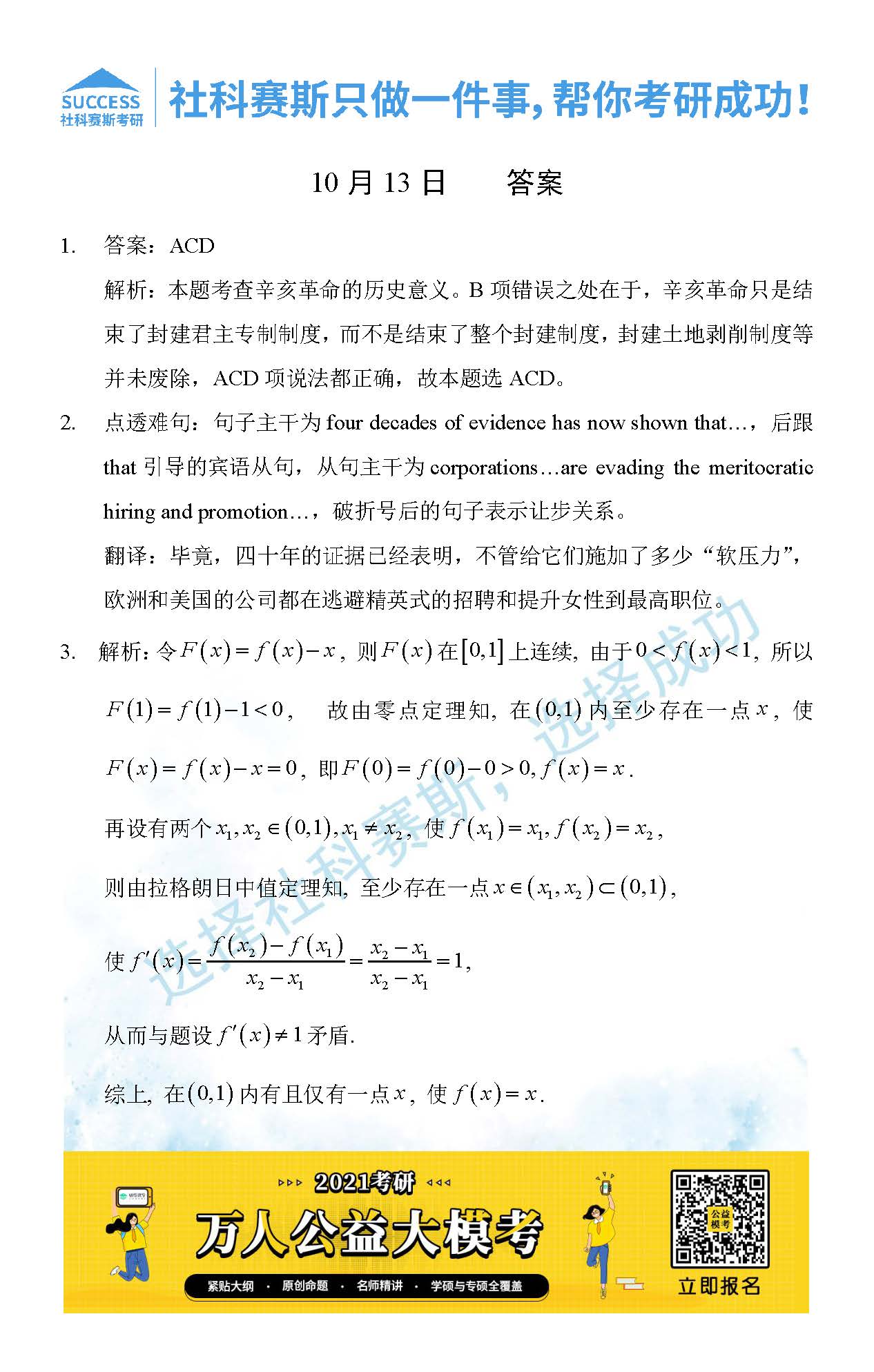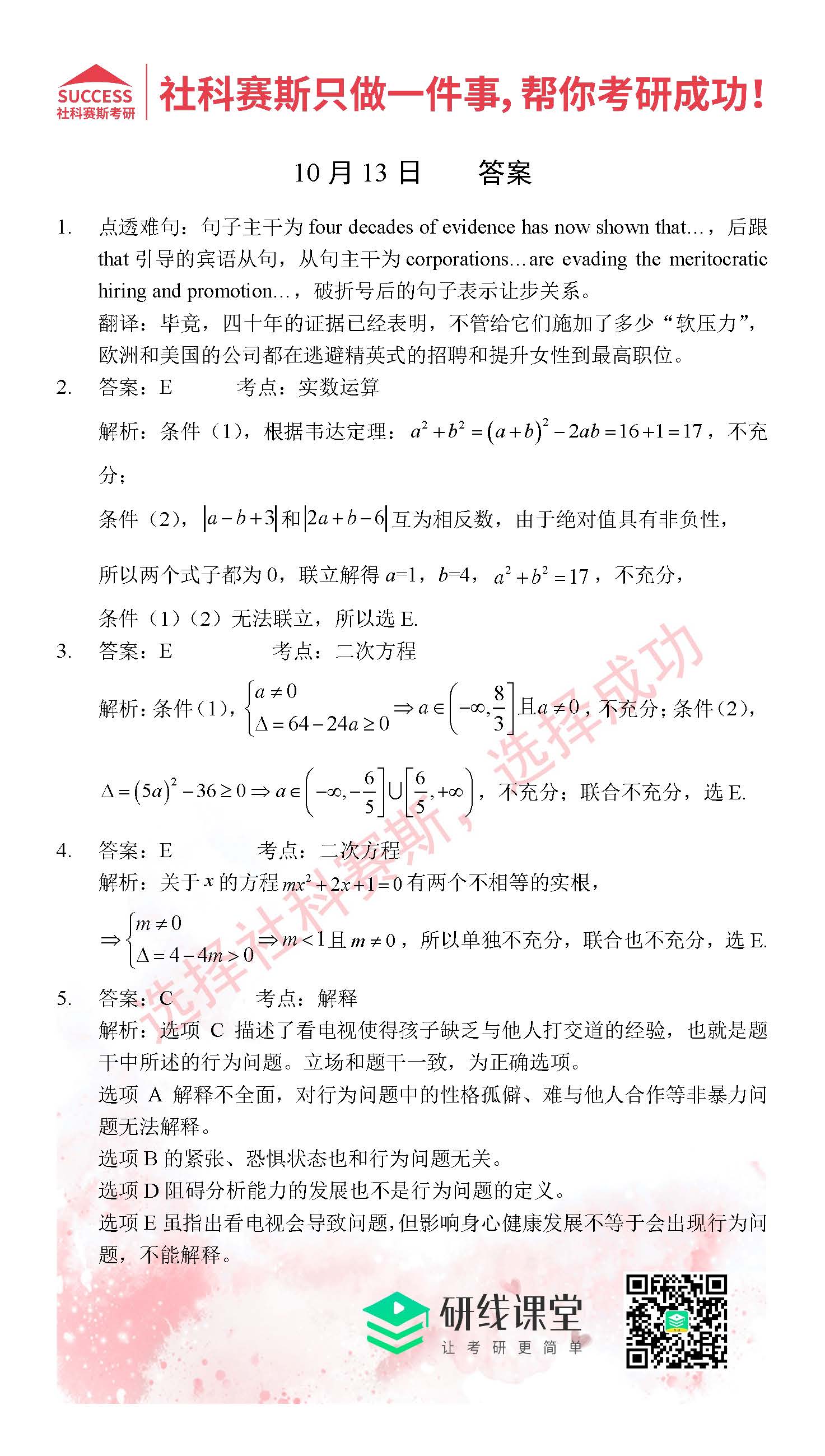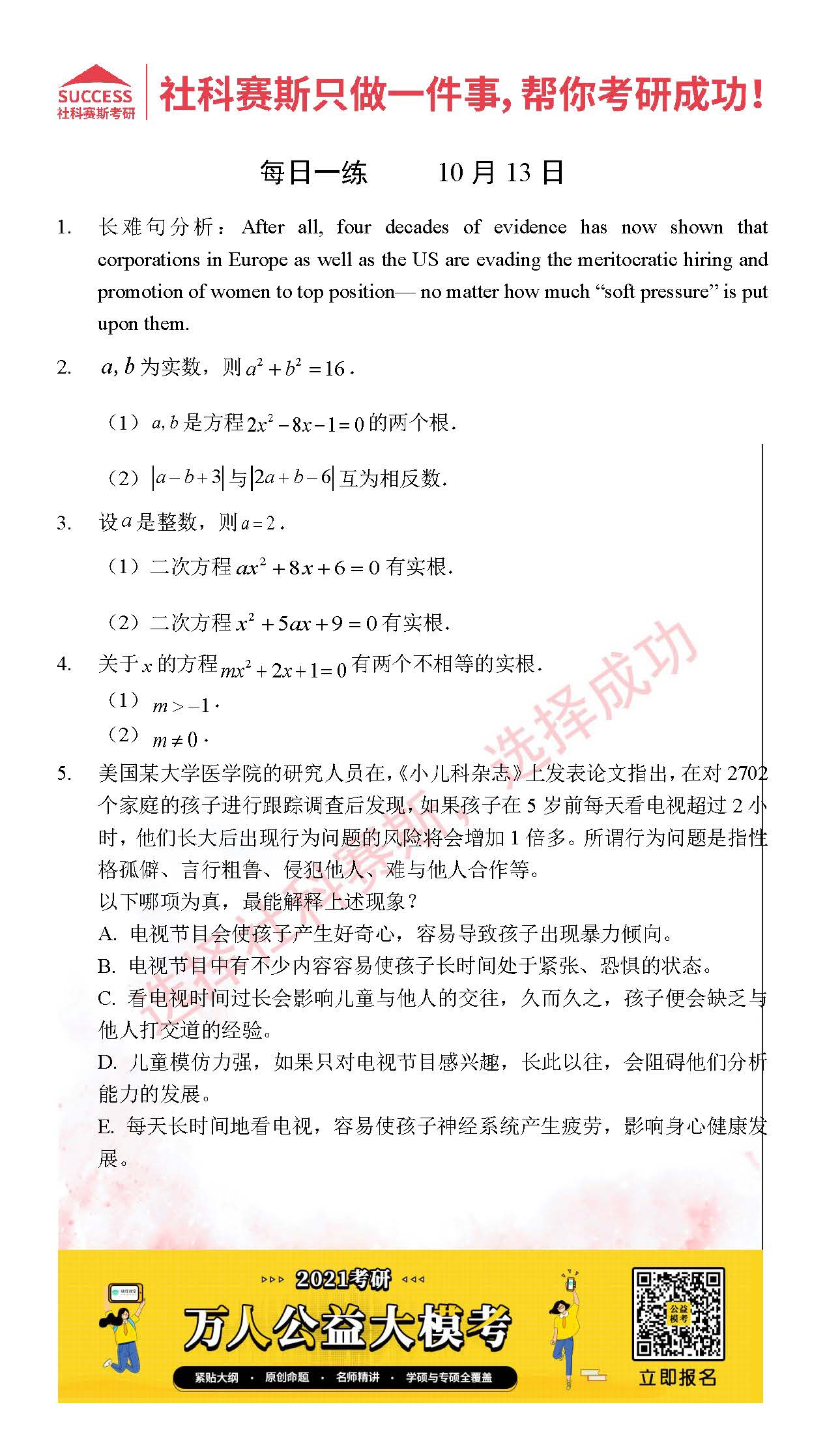 考研是一場持久戰,保持良好的學習習慣,是能確保復習高效的關鍵。今天社科賽斯MBA備考網小編整理了“2021管理類聯考10月13日每日一練及答案”的內容,希望能對廣大考生有所幫助。