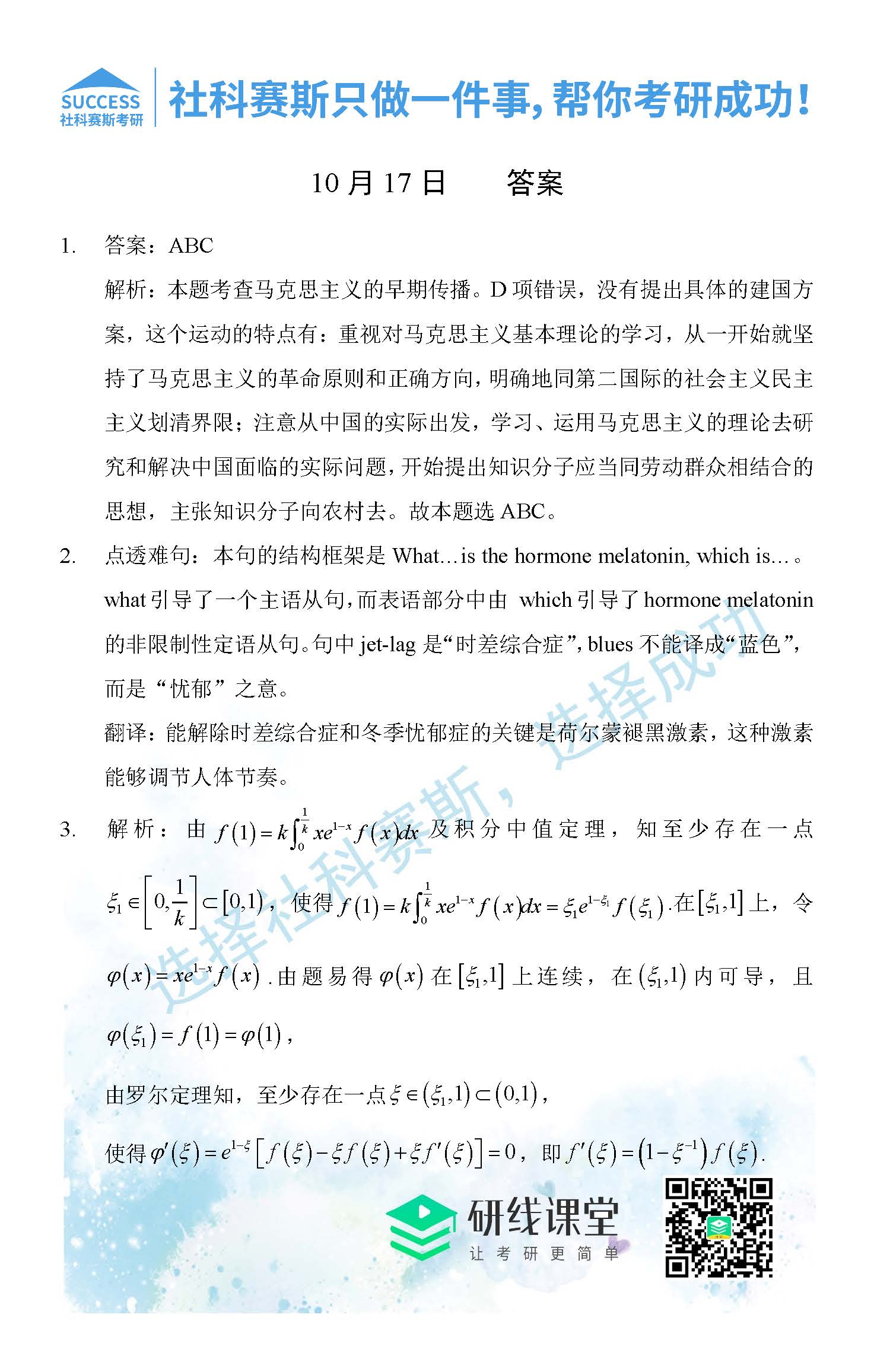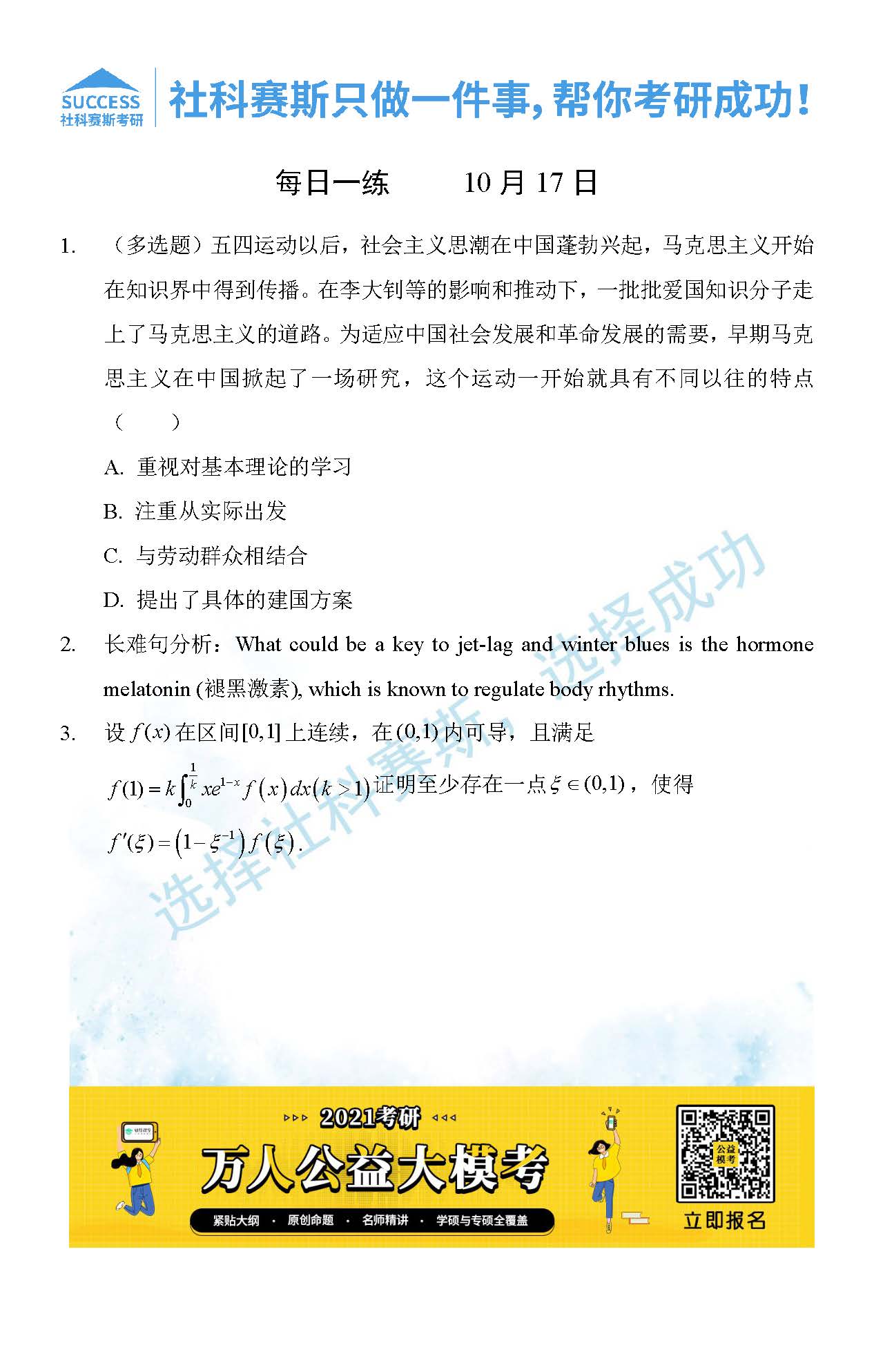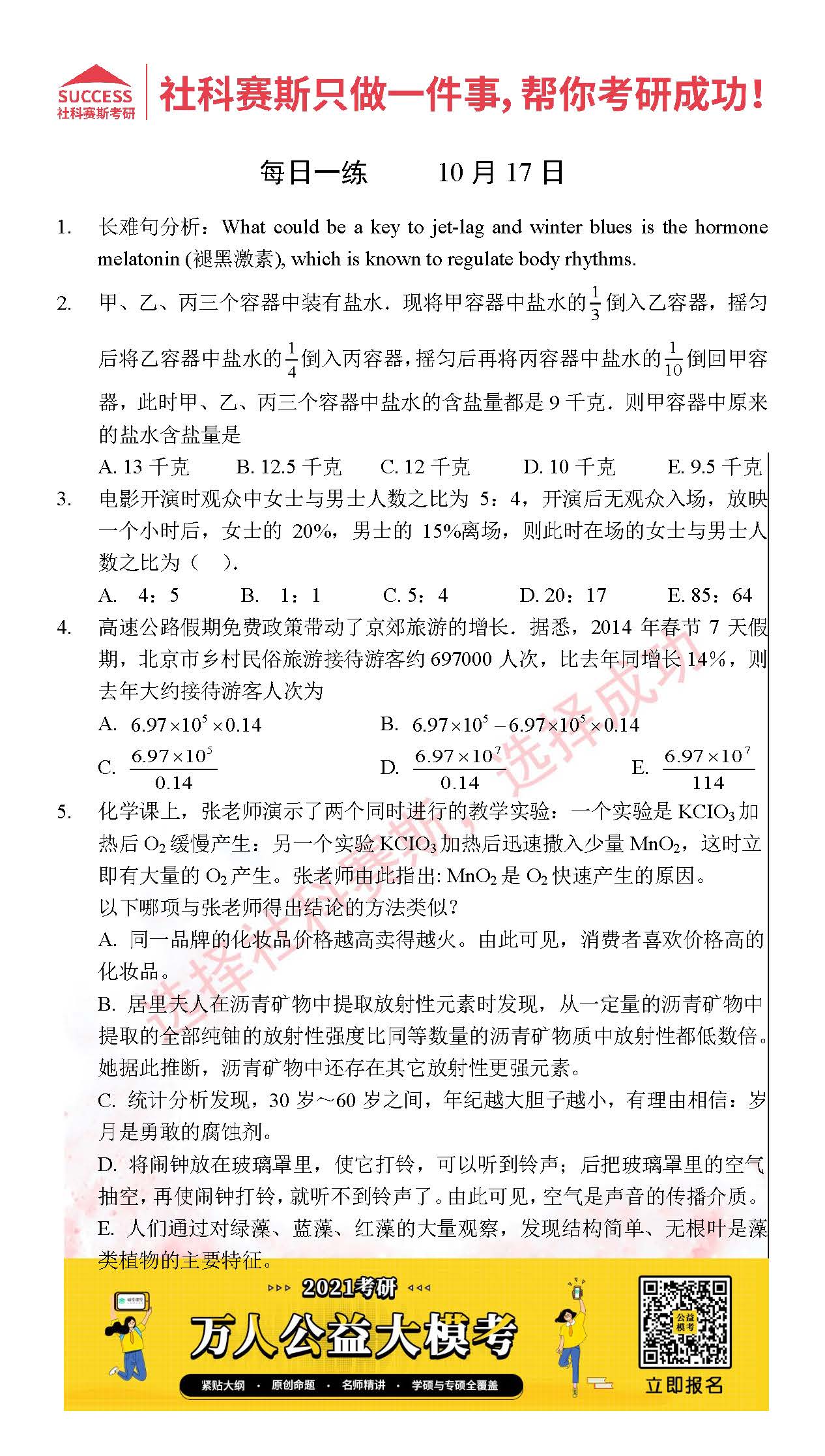 考研是一場持久戰,保持良好的學習習慣,是能確保復習高效的關鍵。今天社科賽斯MBA備考網小編整理了“2021管理類聯考10月17日每日一練及答案”的內容,希望能對廣大考生有所幫助。