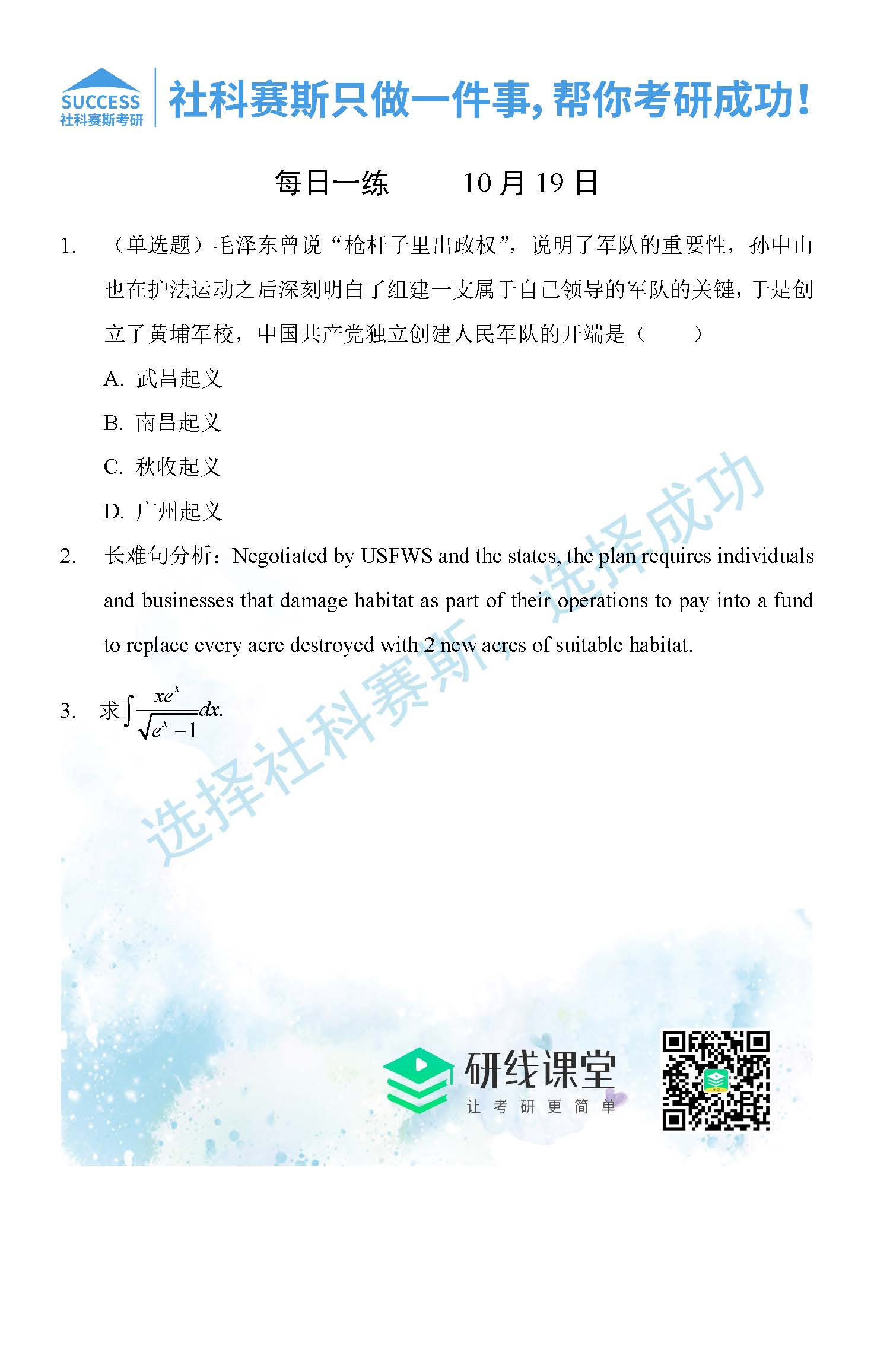 導讀:考研是一場持久戰,保持良好的學習習慣,是能確保復習高效的關鍵。今天社科賽斯MBA備考網小編整理了“2021管理類聯10月19日每日一練及答案”的內容,希望能對廣大考生有所幫助。