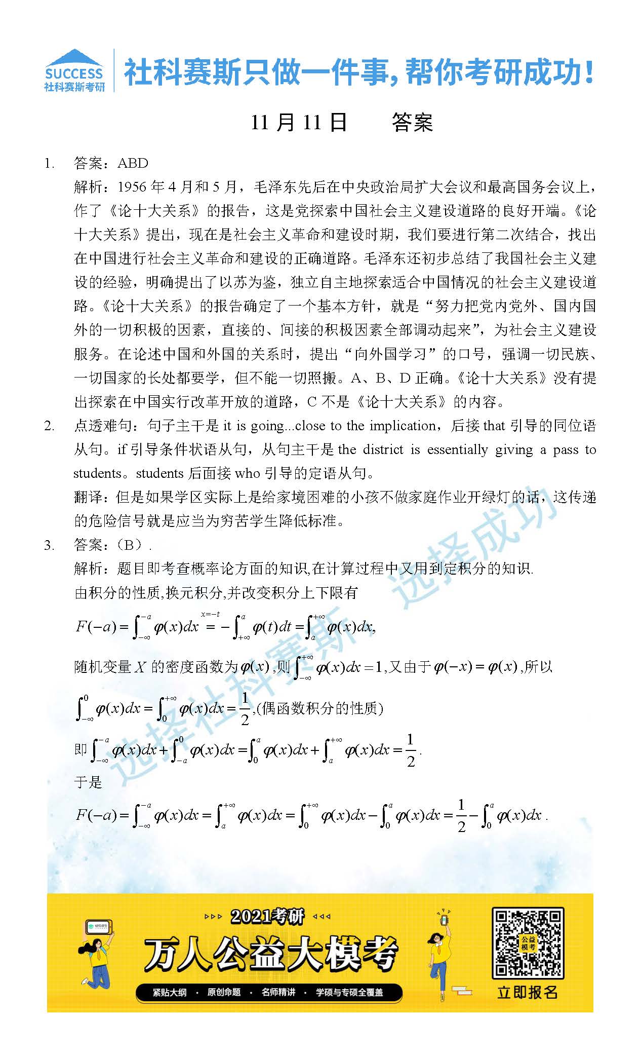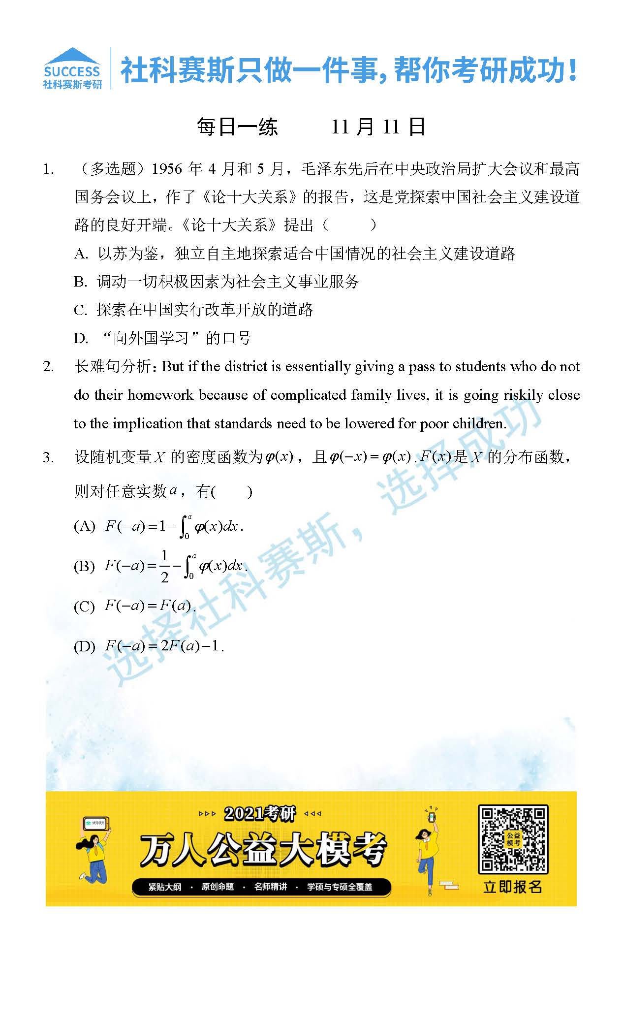 考研是一場持久戰,保持良好的學習習慣,是能確保復習高效的關鍵。今天社科賽斯MBA備考網小編整理了“2021管理類聯11月11日每日一練及答案”的內容,希望能對廣大考生有所幫助。