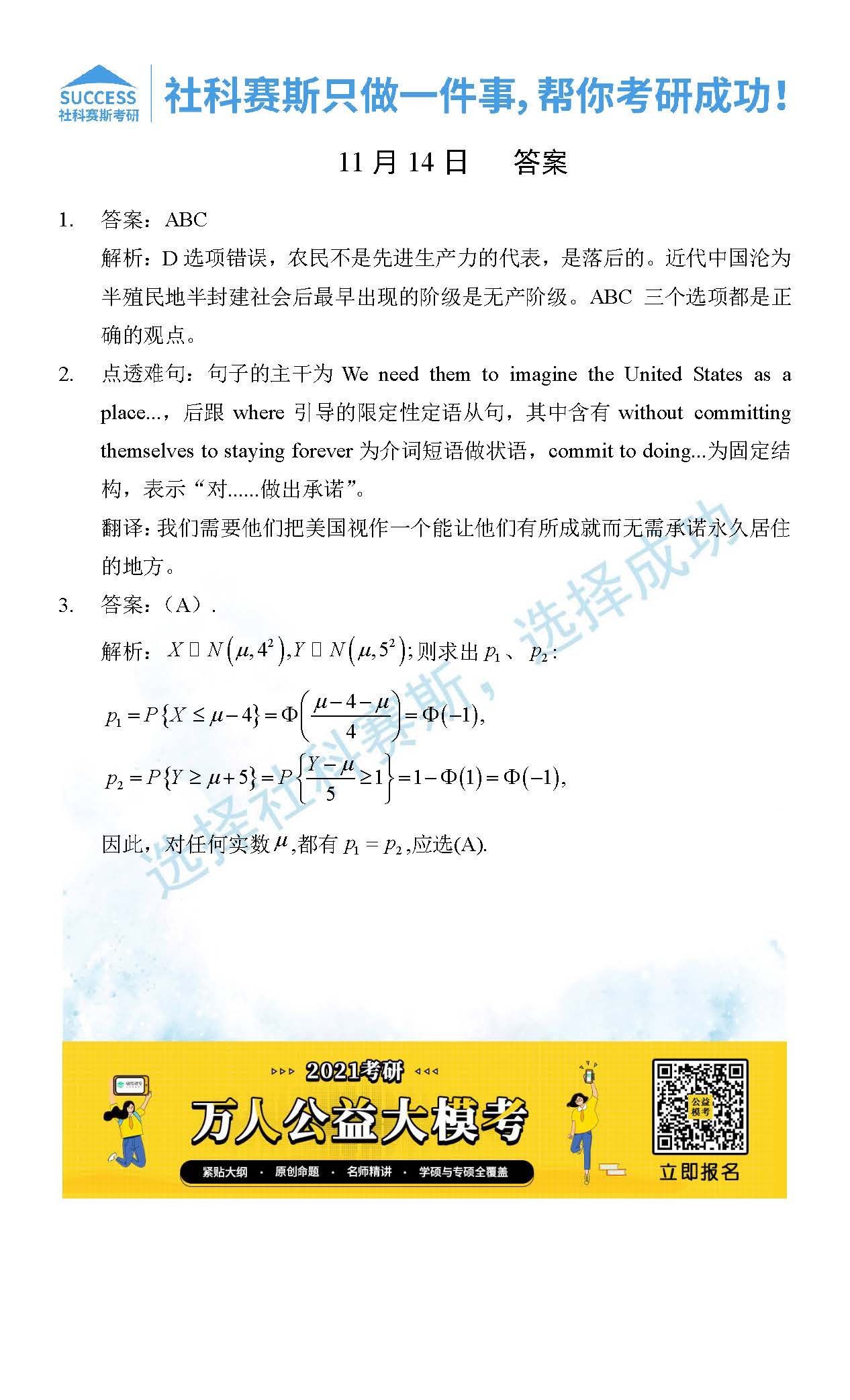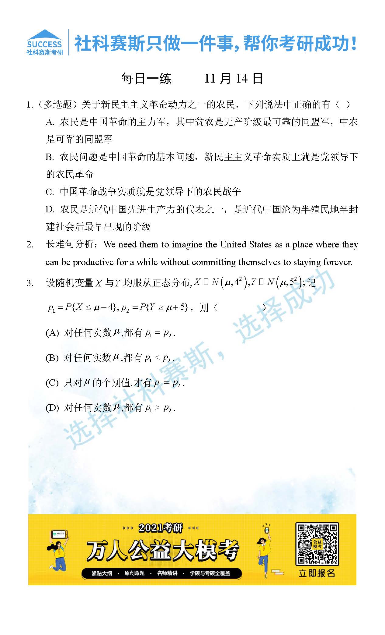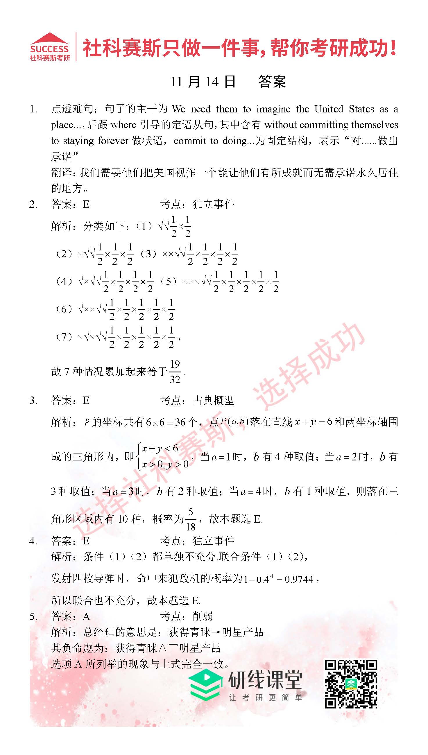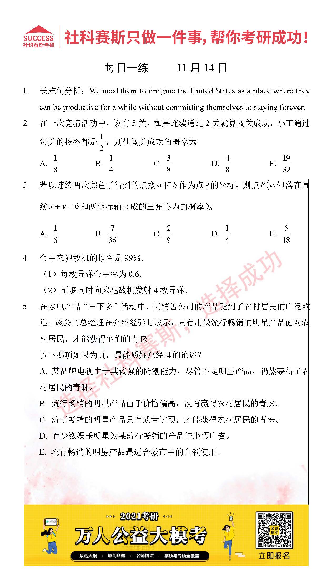 考研是一場持久戰,保持良好的學習習慣,是能確保復習高效的關鍵。今天社科賽斯MBA備考網小編整理了“2021管理類聯11月14日每日一練及答案”的內容,希望能對廣大考生有所幫助。