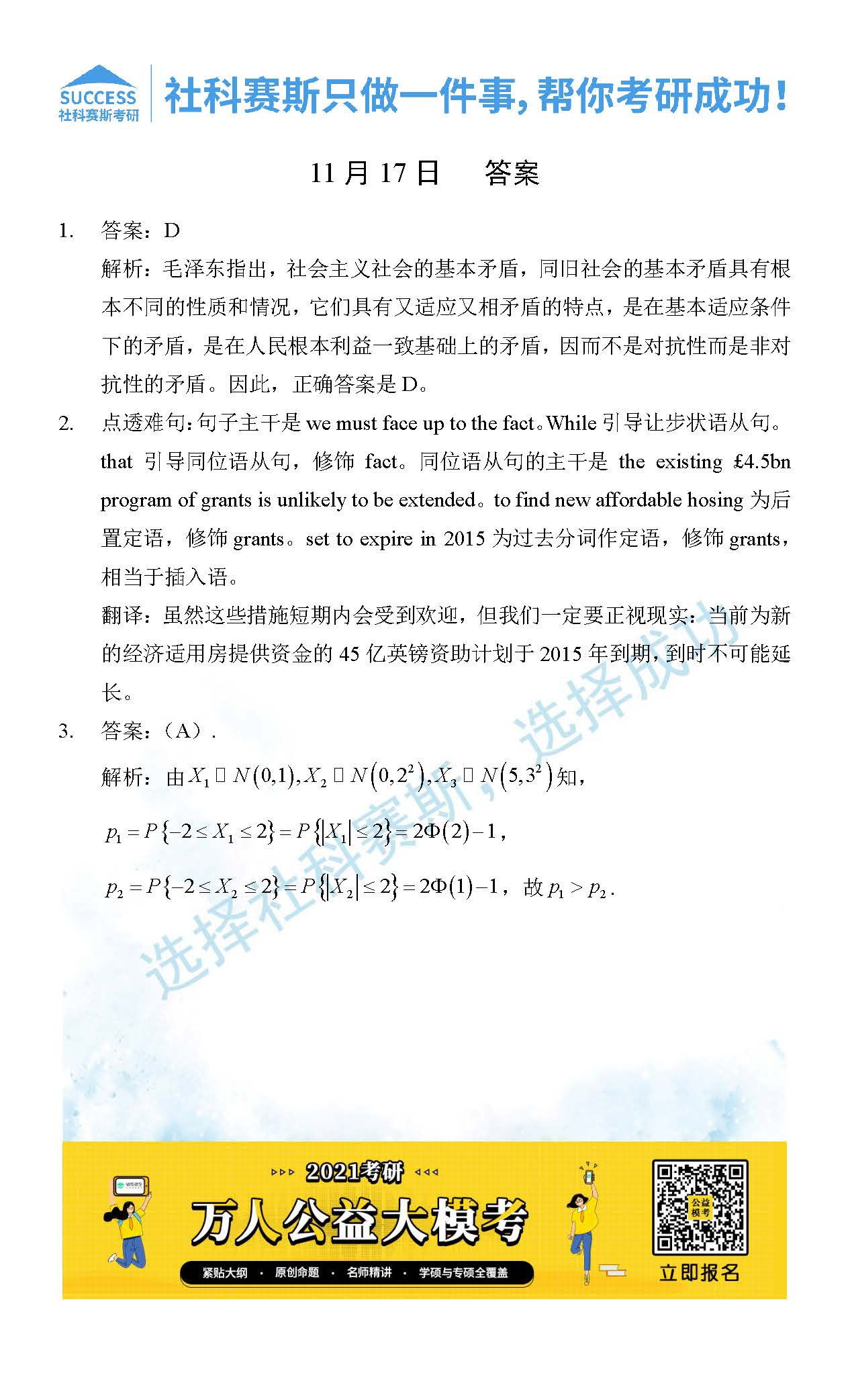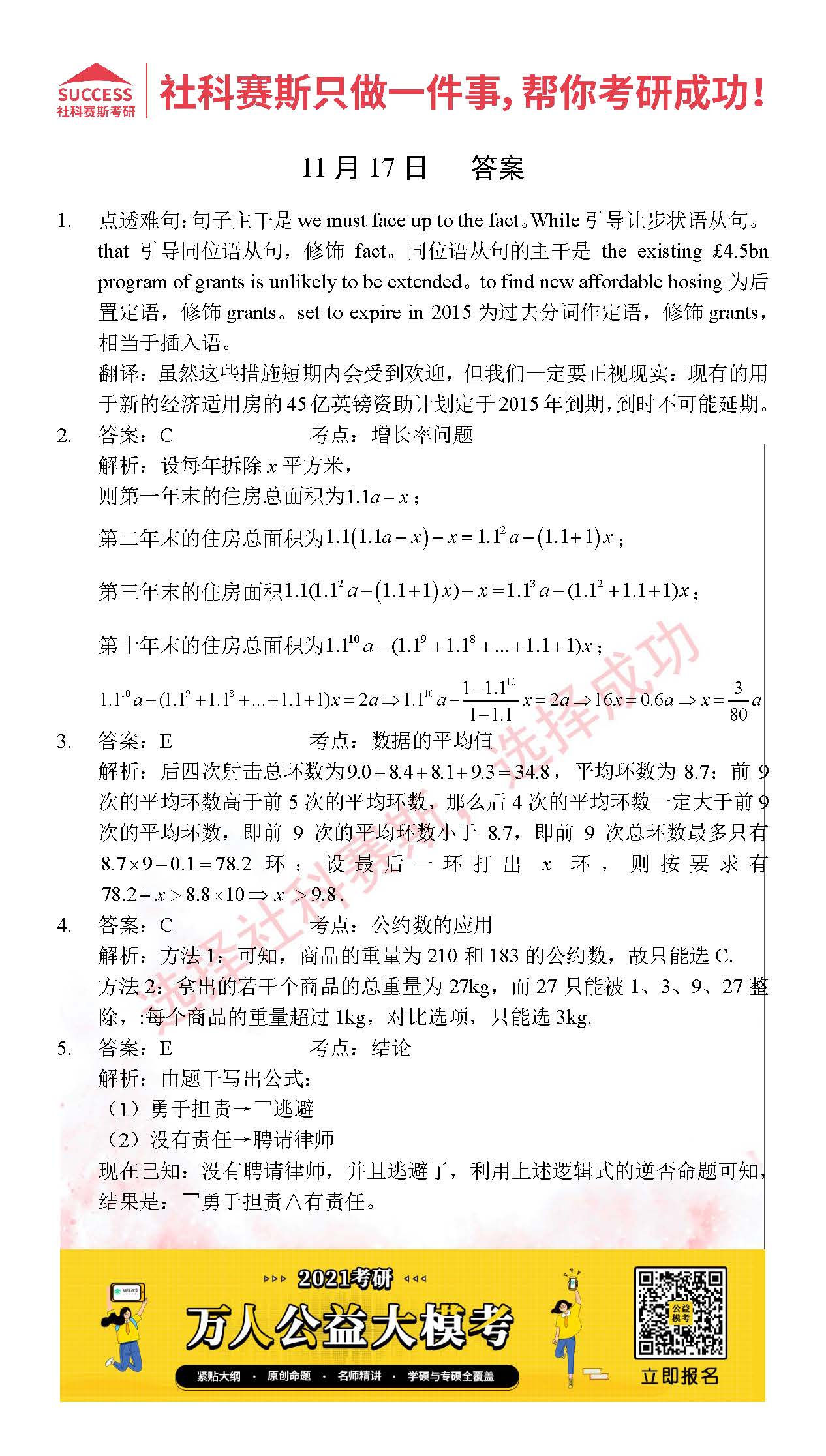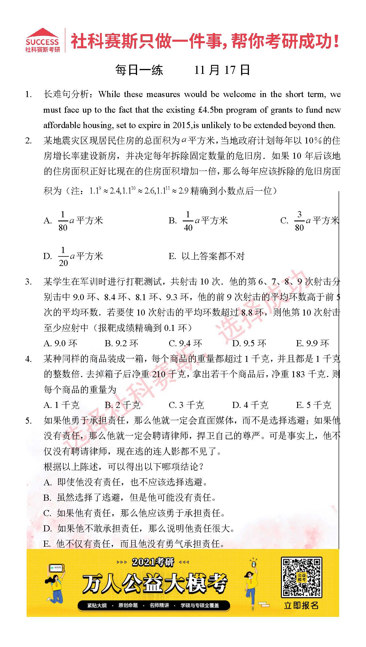 考研是一場持久戰,保持良好的學習習慣,是能確保復習高效的關鍵。今天社科賽斯MBA備考網小編整理了“2021管理類聯11月17日每日一練及答案”的內容,希望能對廣大考生有所幫助。