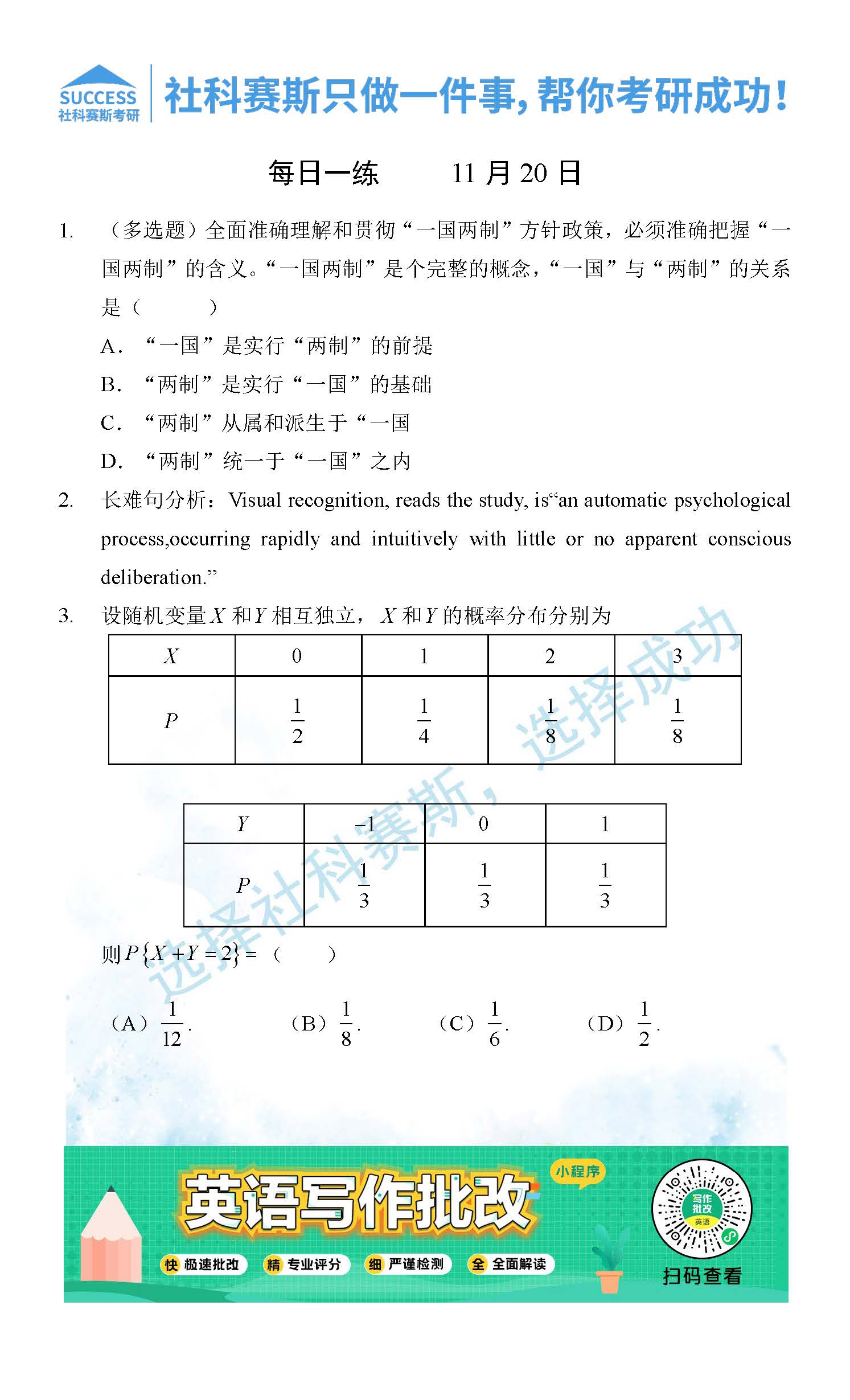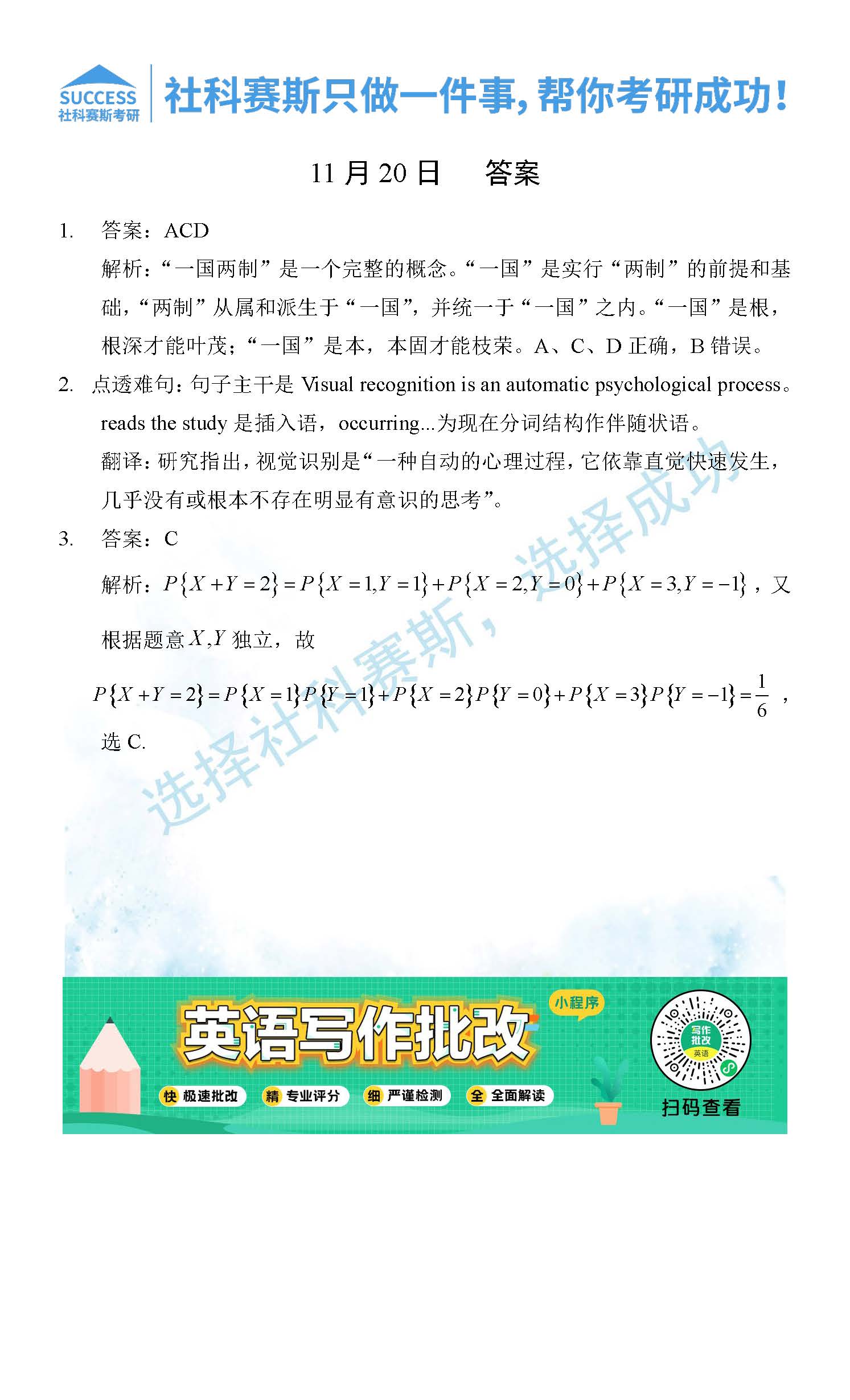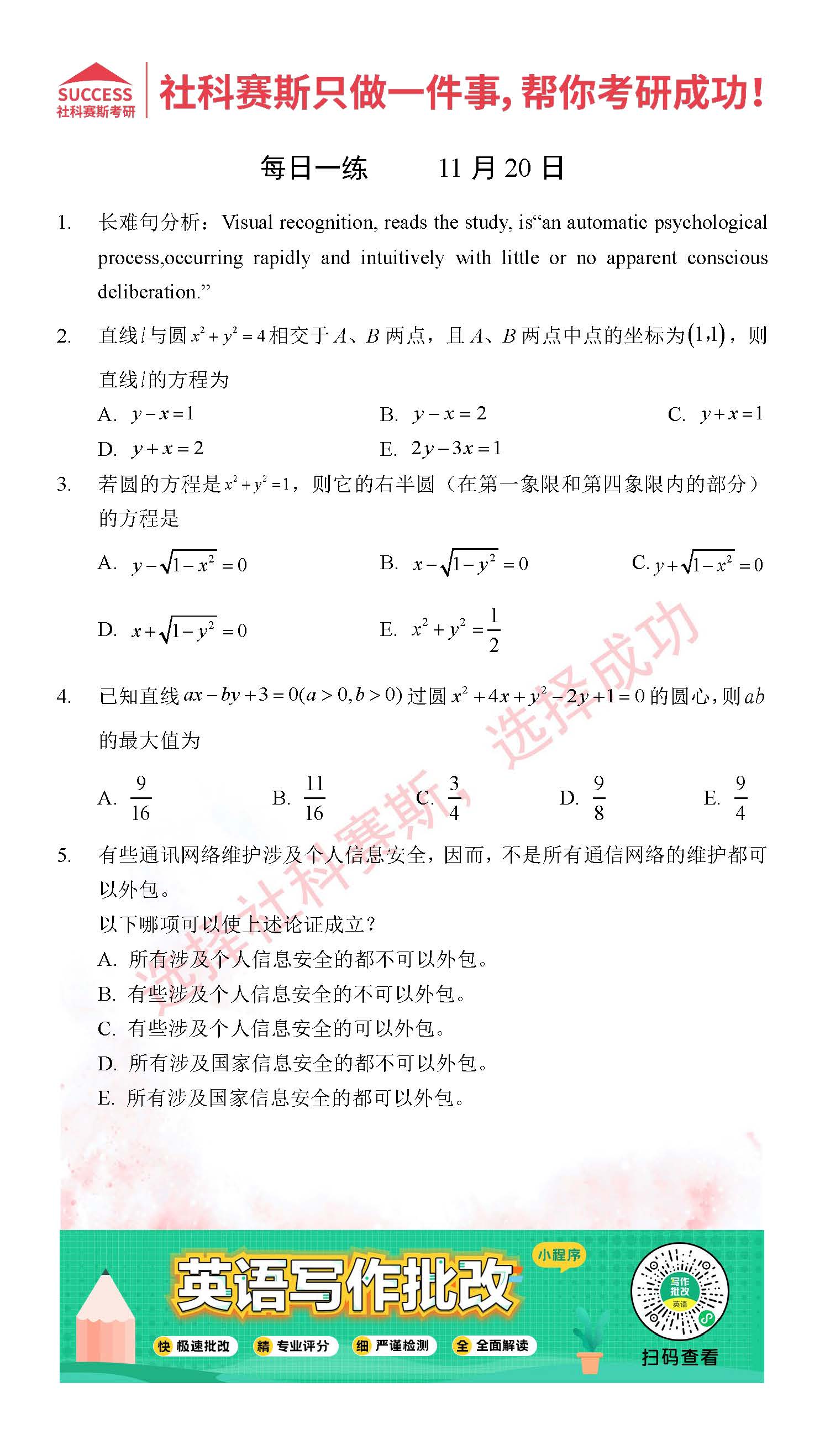 考研是一場持久戰(zhàn),保持良好的學習習慣,是能確保復習高效的關鍵。今天社科賽斯MBA備考網小編整理了“2021管理類聯11月20日每日一練及答案”的內容,希望能對廣大考生有所幫助。
