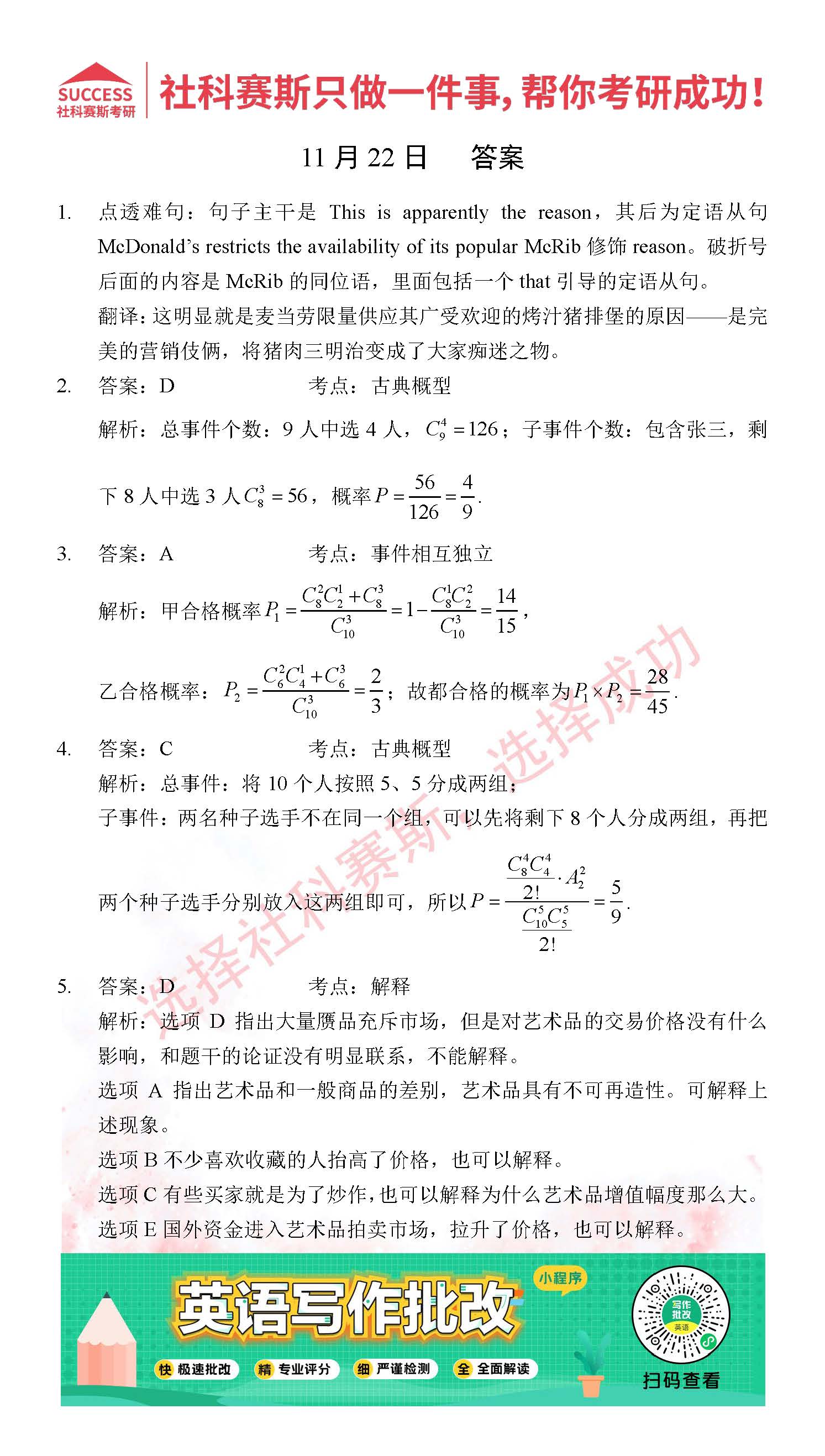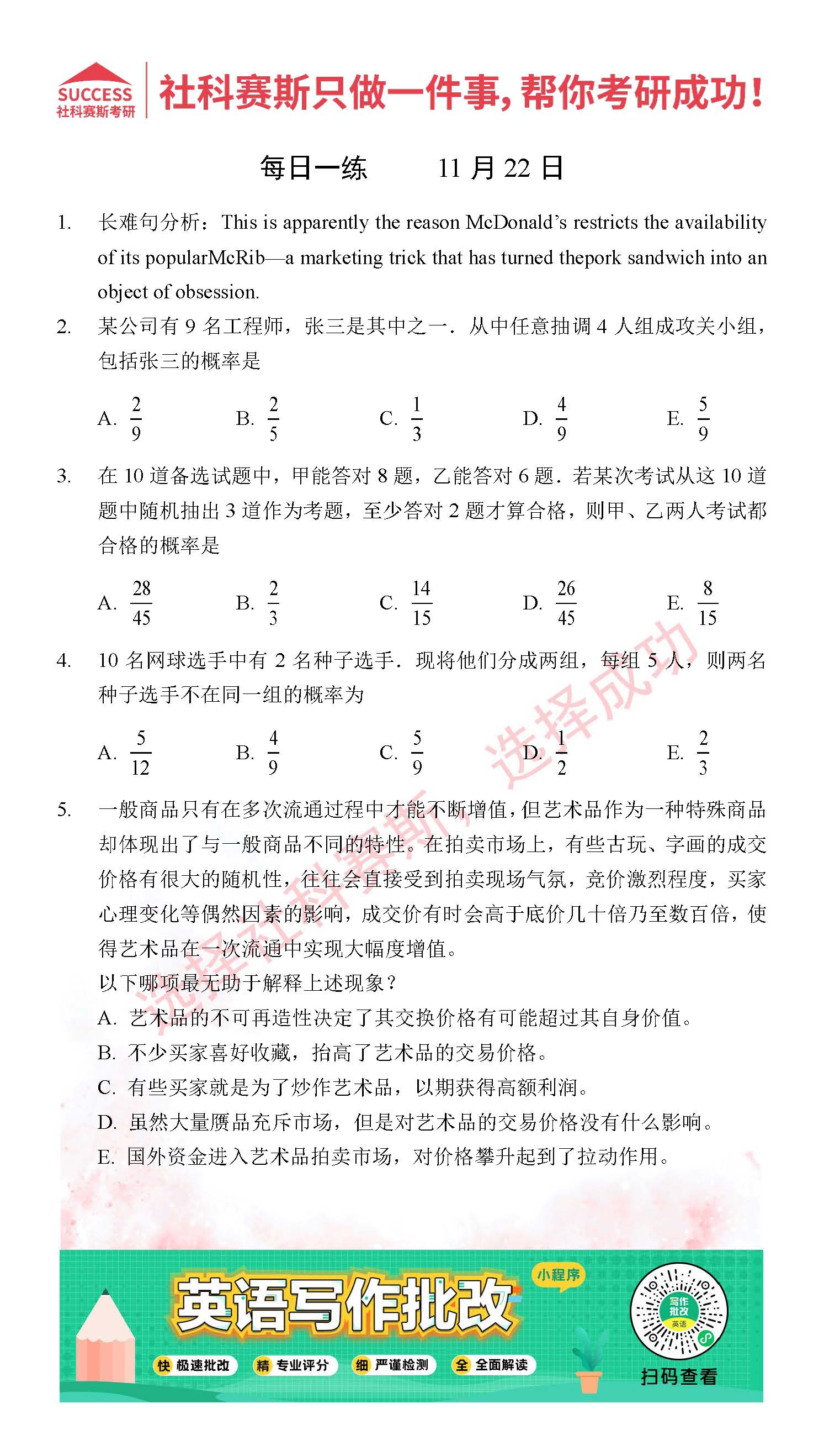 考研是一場持久戰(zhàn),保持良好的學習習慣,是能確保復習高效的關鍵。今天社科賽斯MBA備考網小編整理了“2021管理類聯(lián)11月22日每日一練及答案”的內容,希望能對廣大考生有所幫助。