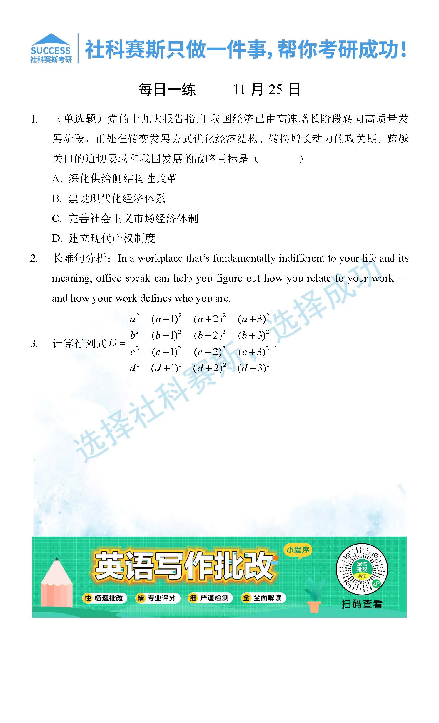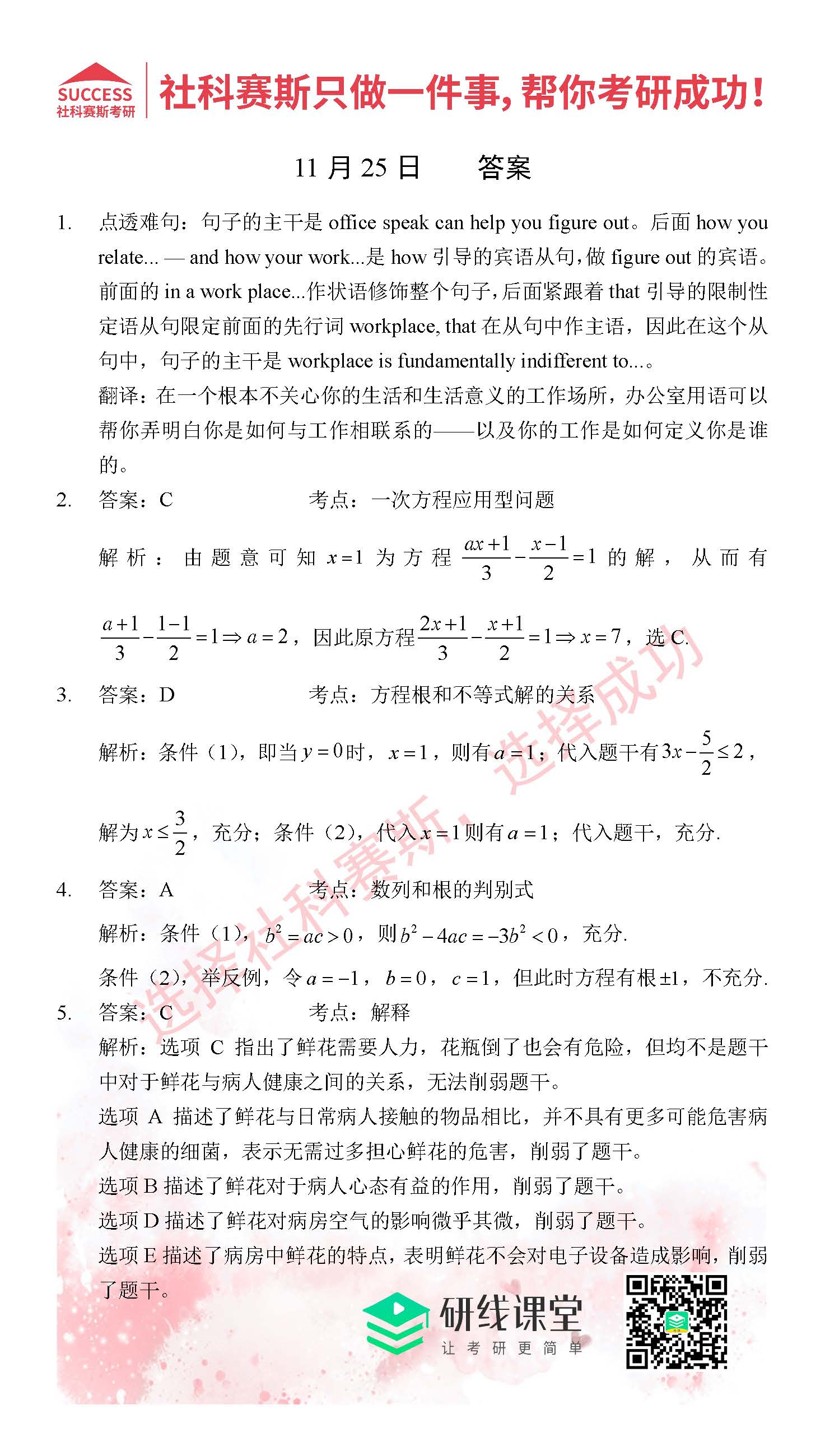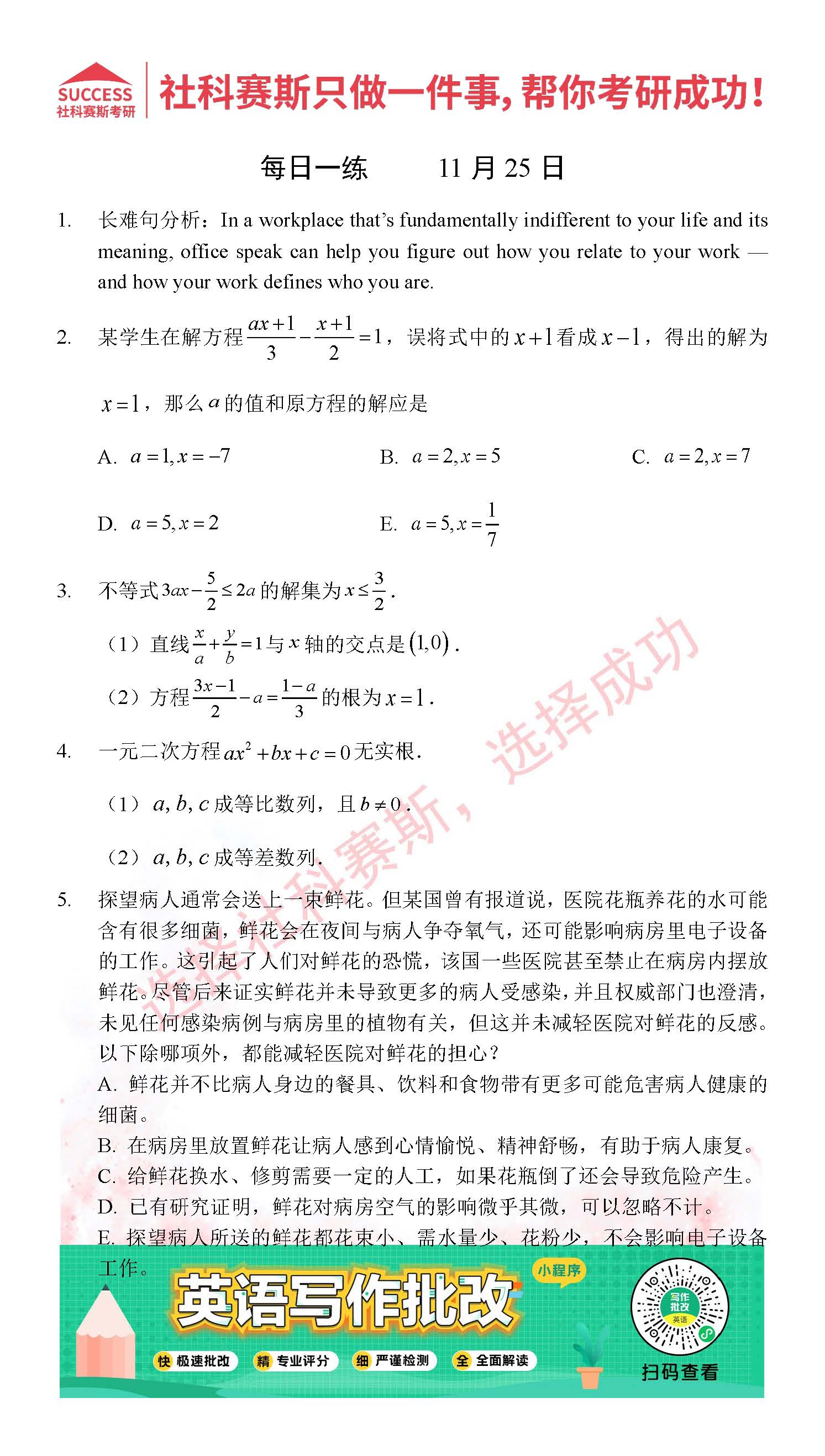 考研是一場持久戰,保持良好的學習習慣,是能確保復習高效的關鍵。今天社科賽斯MBA備考網小編整理了“2021管理類聯11月25日每日一練及答案”的內容,希望能對廣大考生有所幫助。