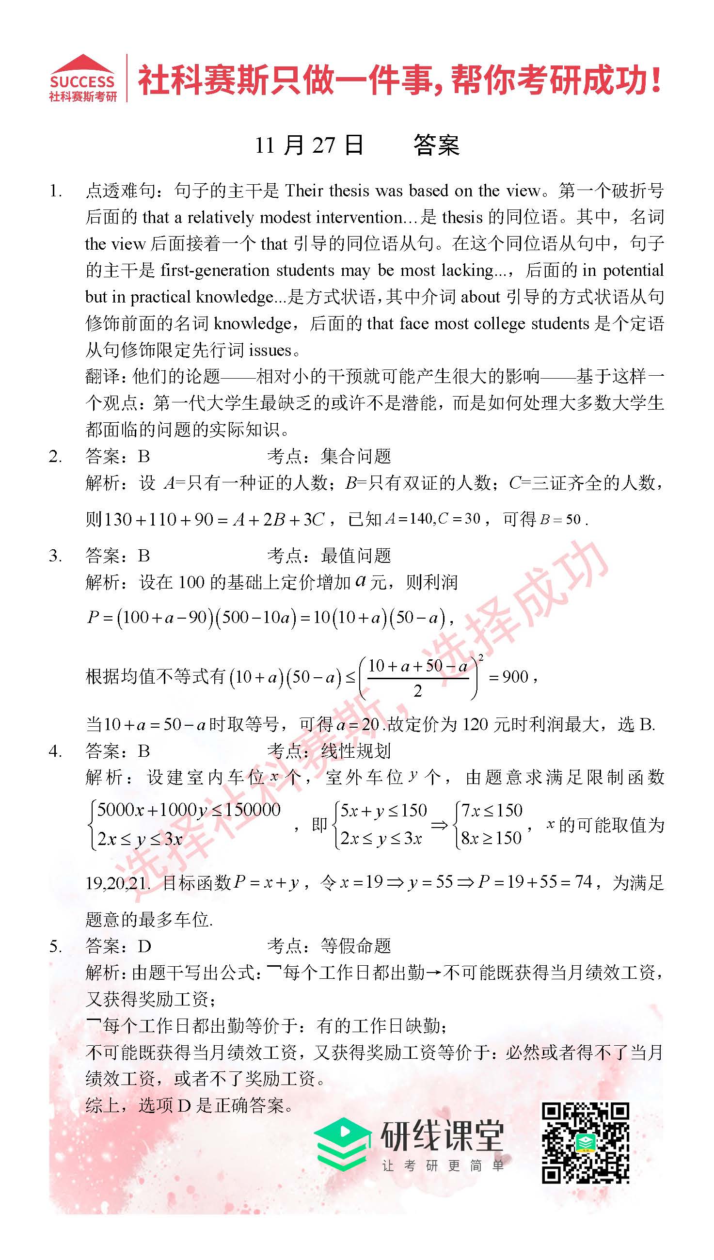 考研是一場持久戰(zhàn),保持良好的學(xué)習(xí)習(xí)慣,是能確保復(fù)習(xí)高效的關(guān)鍵。今天社科賽斯MBA備考網(wǎng)小編整理了“2021管理類聯(lián)11月27日每日一練及答案”的內(nèi)容,希望能對廣大考生有所幫助。