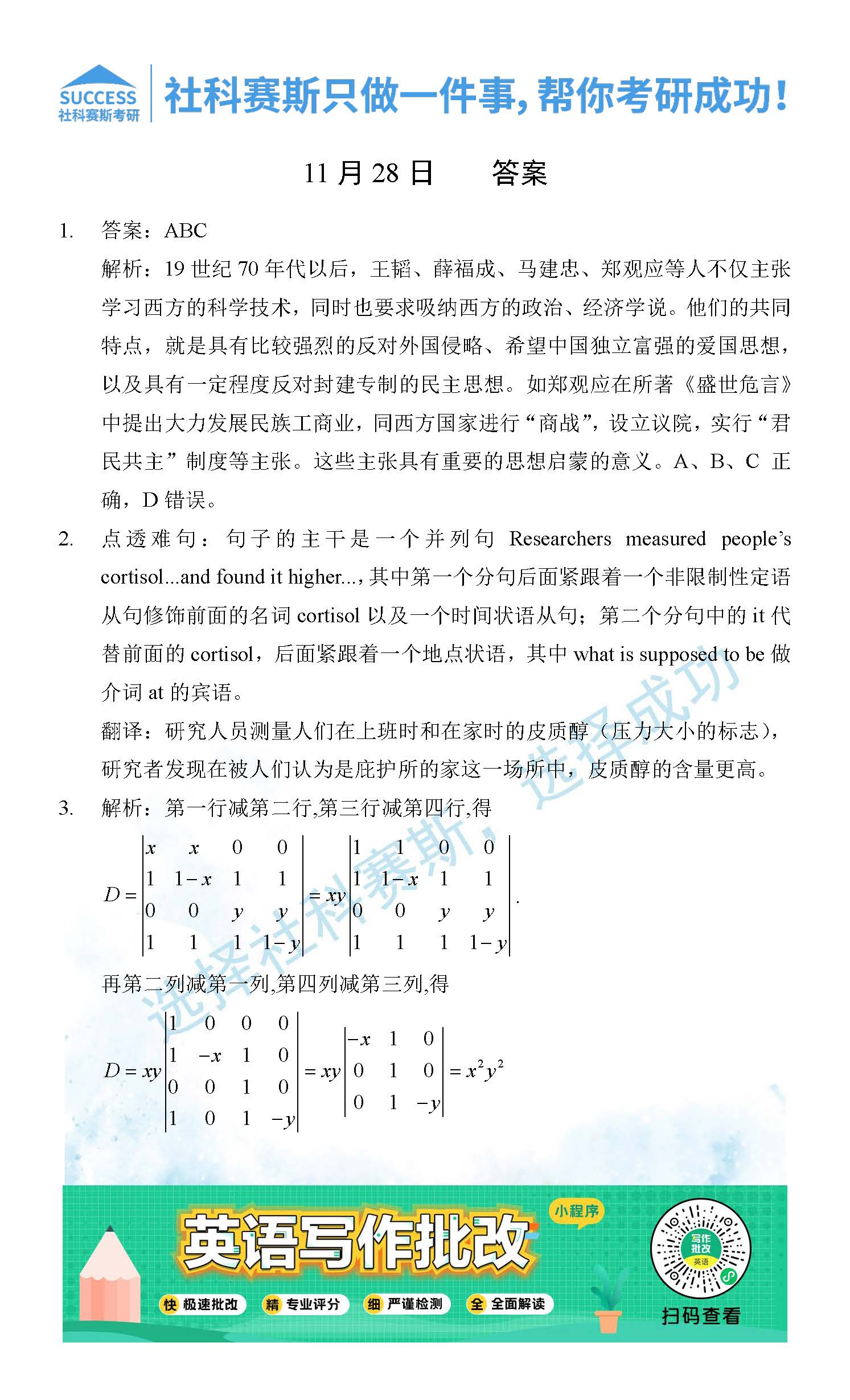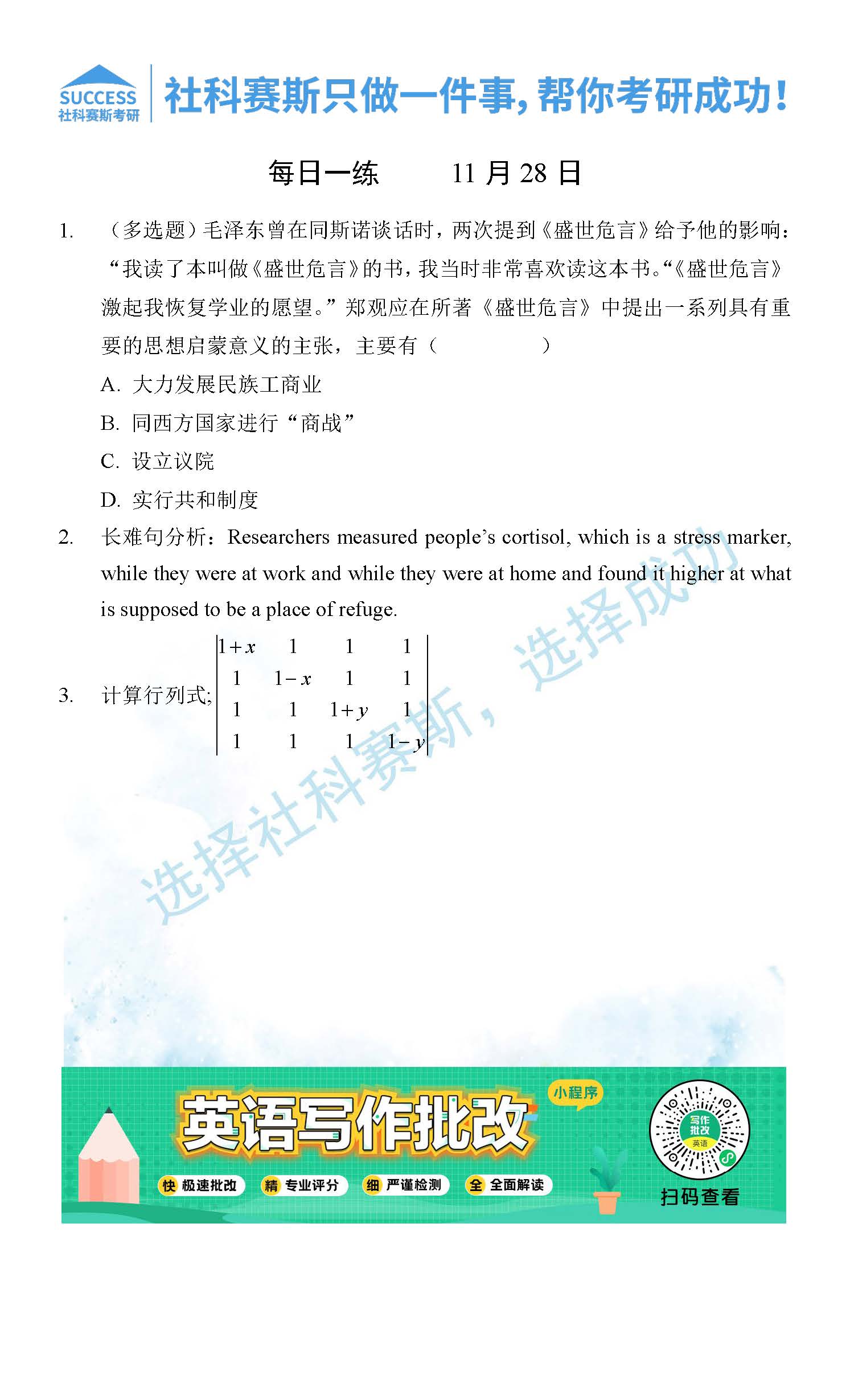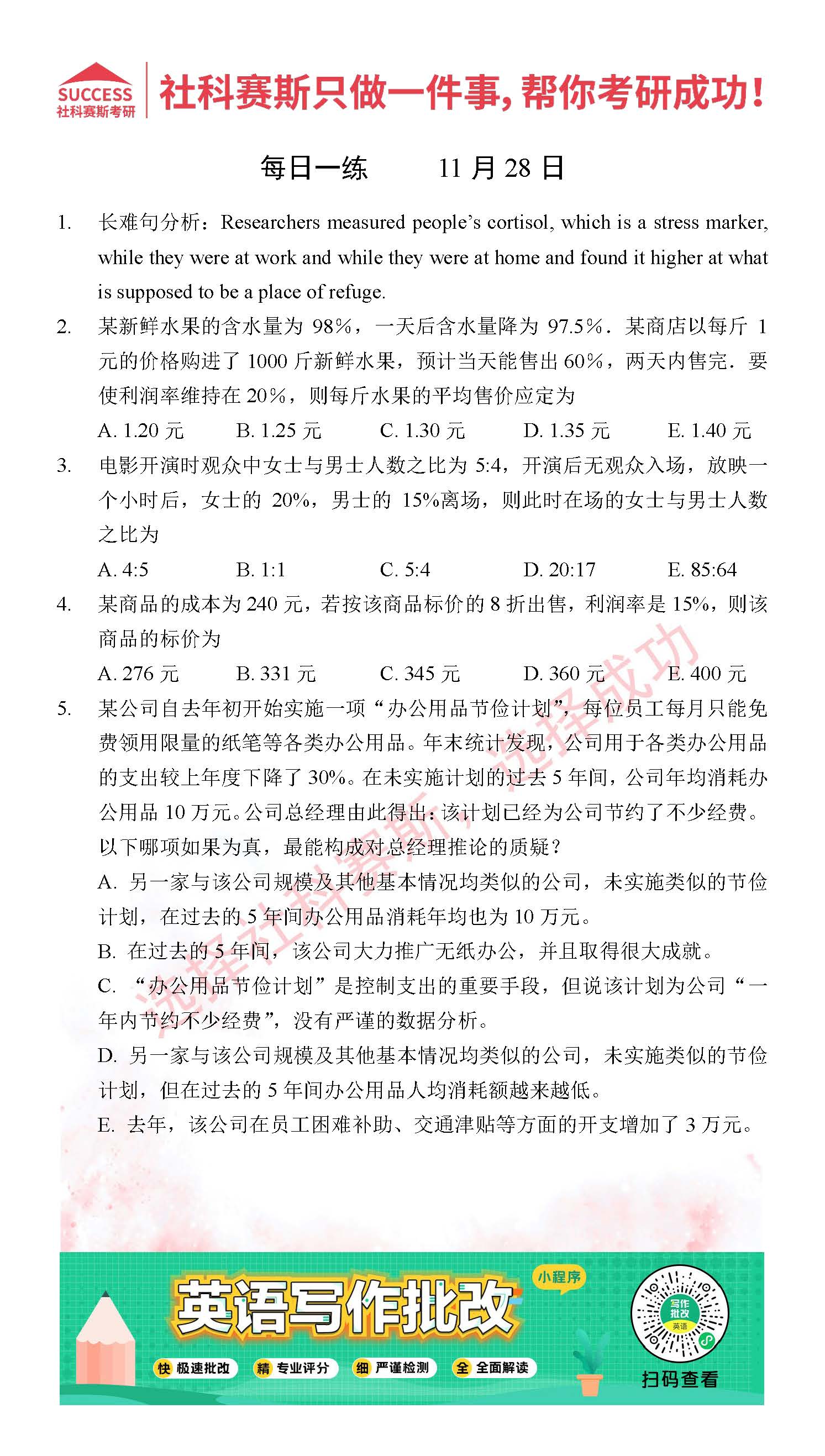 考研是一場持久戰(zhàn),保持良好的學習習慣,是能確保復習高效的關鍵。今天社科賽斯MBA備考網小編整理了“2021管理類聯(lián)11月28日每日一練及答案”的內容,希望能對廣大考生有所幫助。