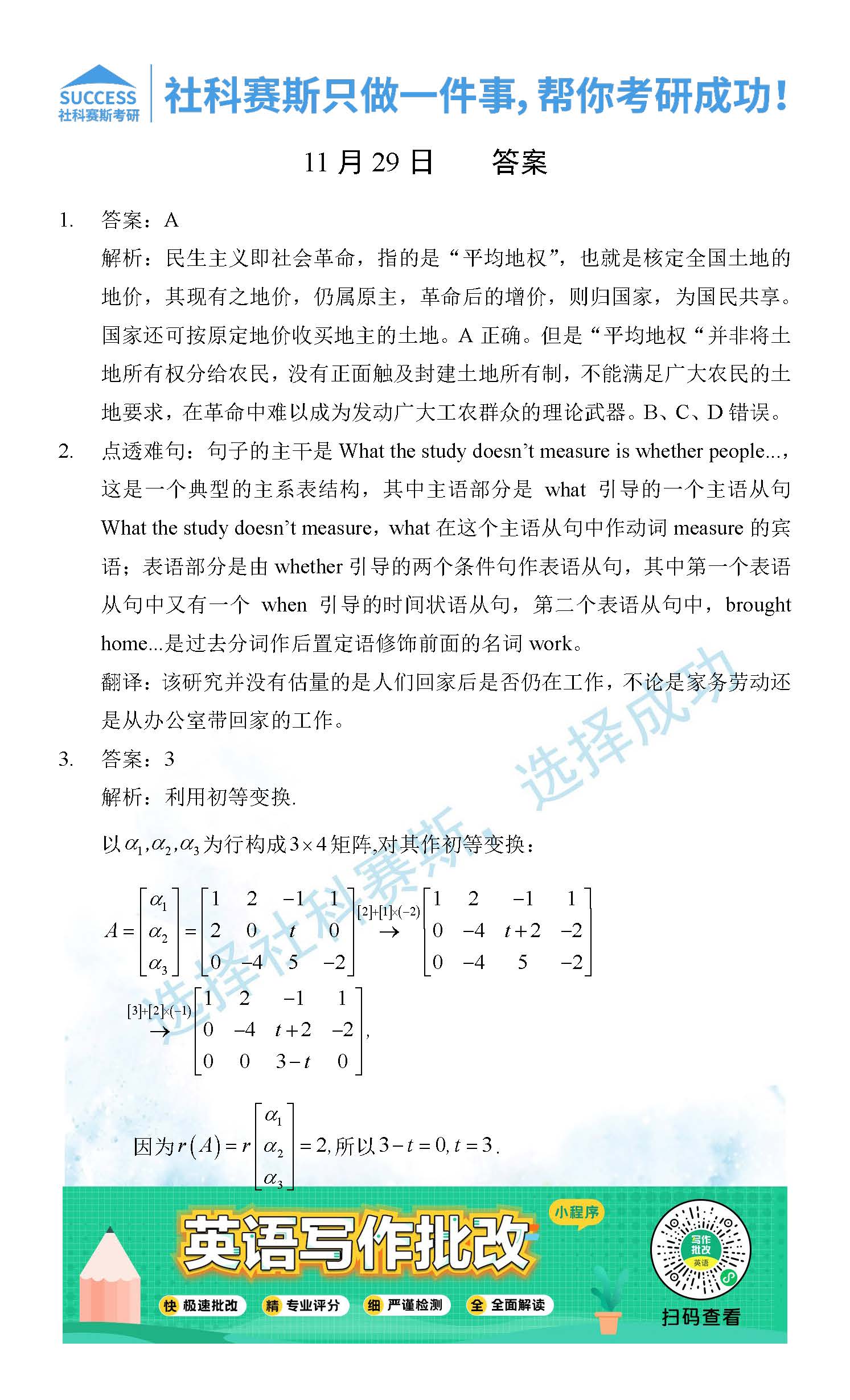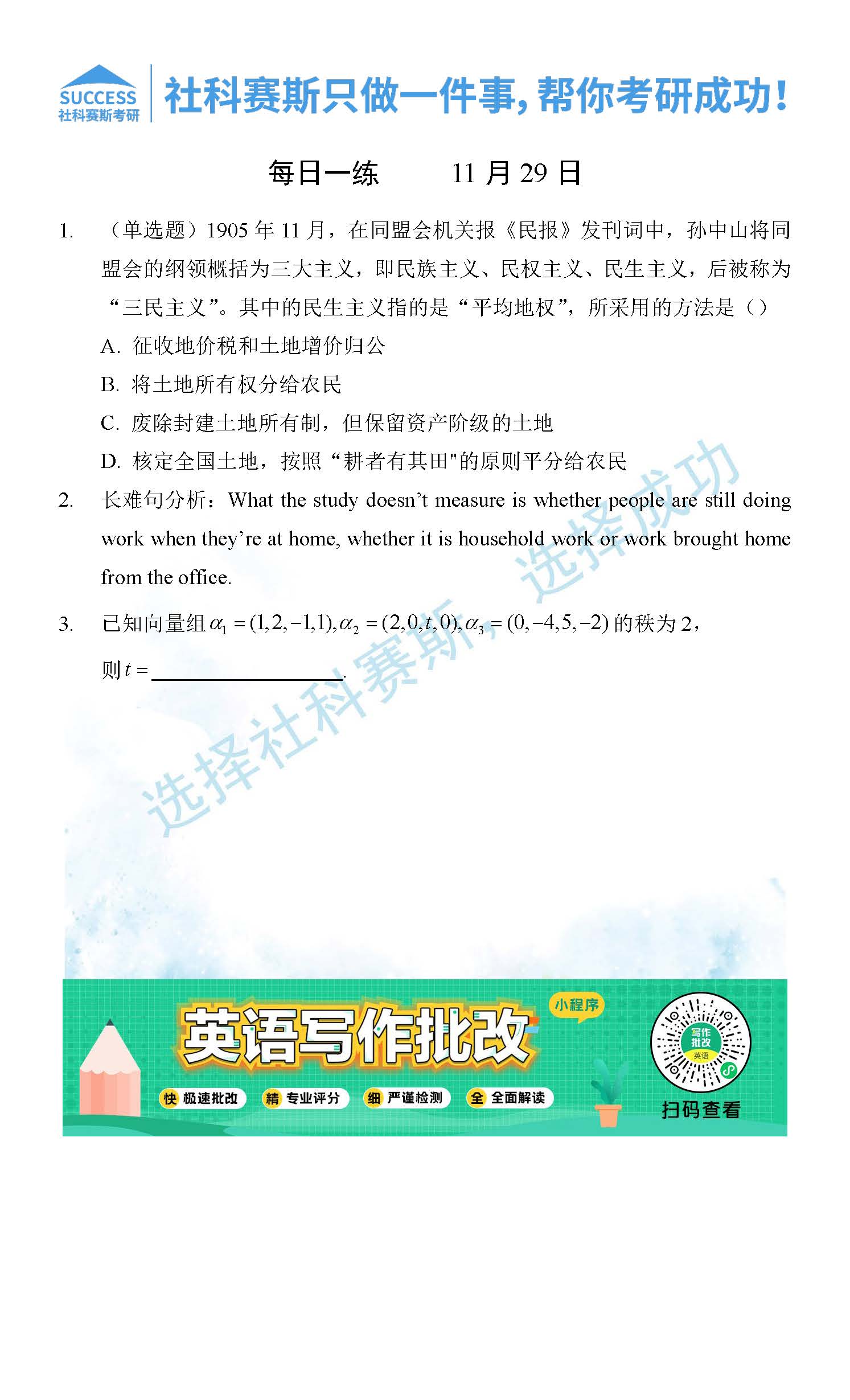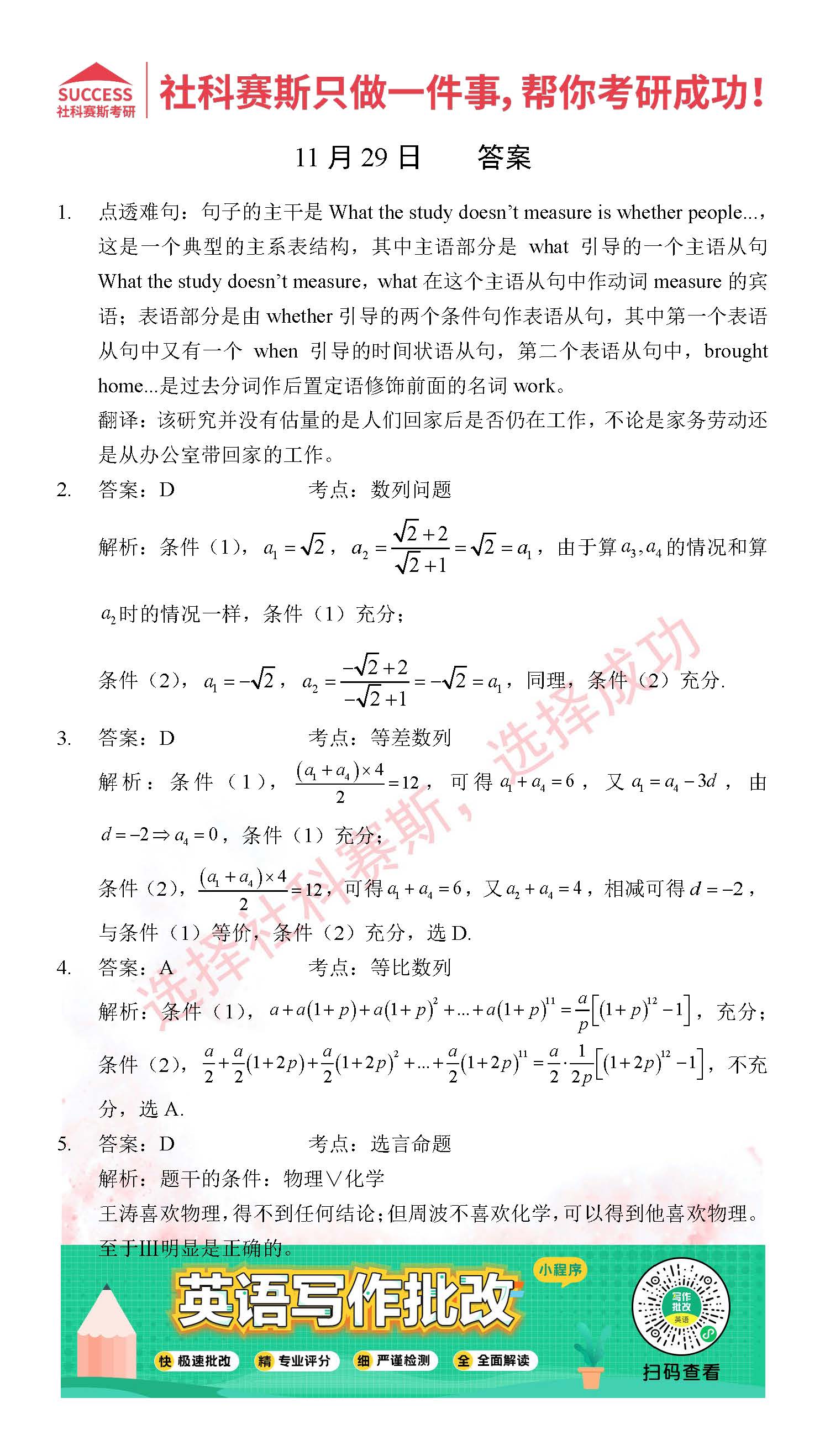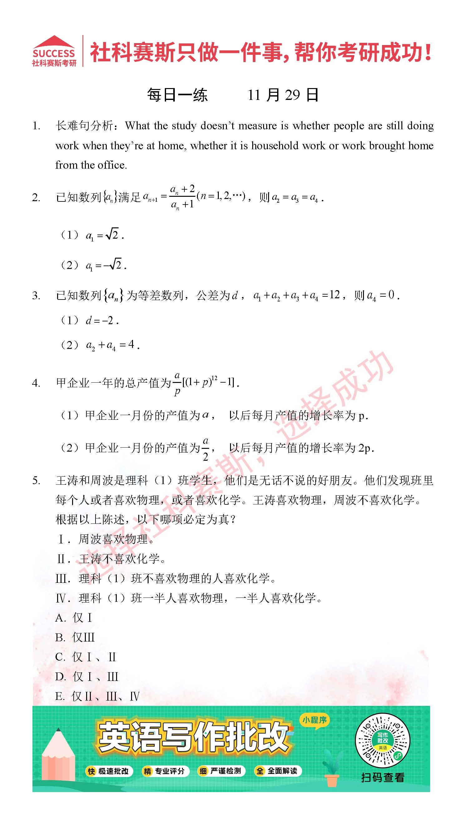 考研是一場持久戰,保持良好的學習習慣,是能確保復習高效的關鍵。今天社科賽斯MBA備考網小編整理了“2021管理類聯11月29日每日一練及答案”的內容,希望能對廣大考生有所幫助。