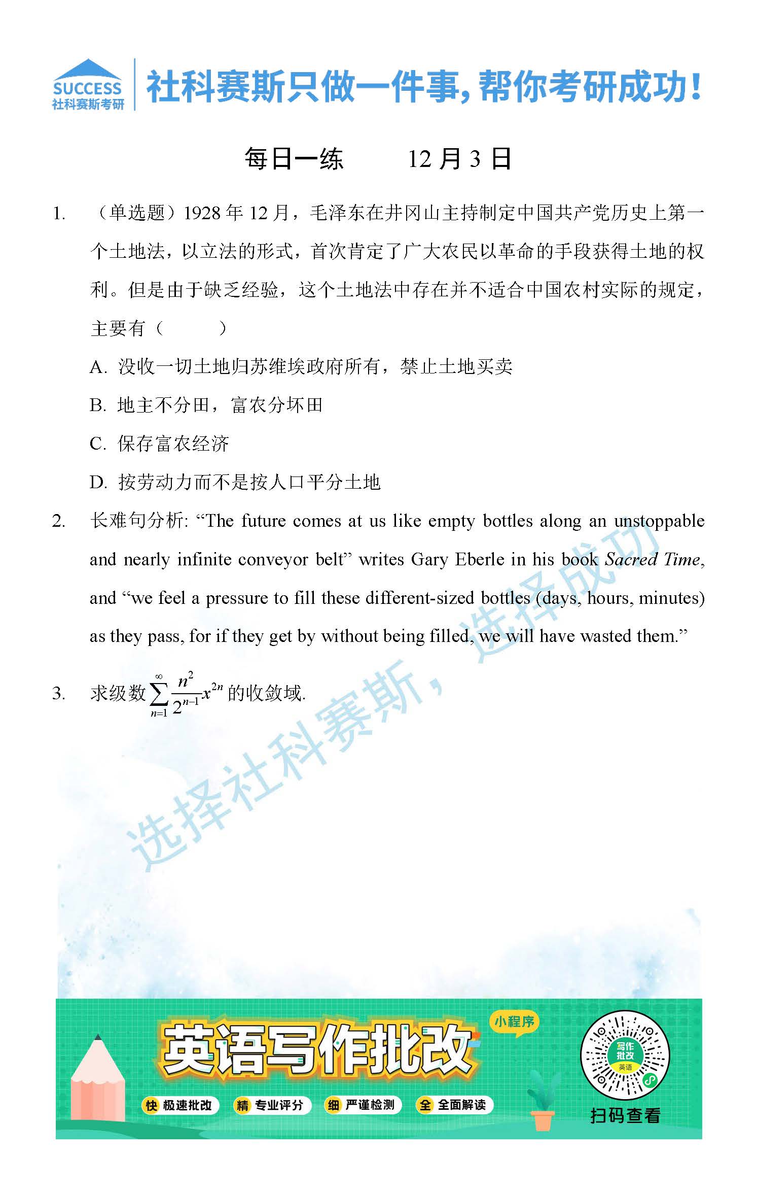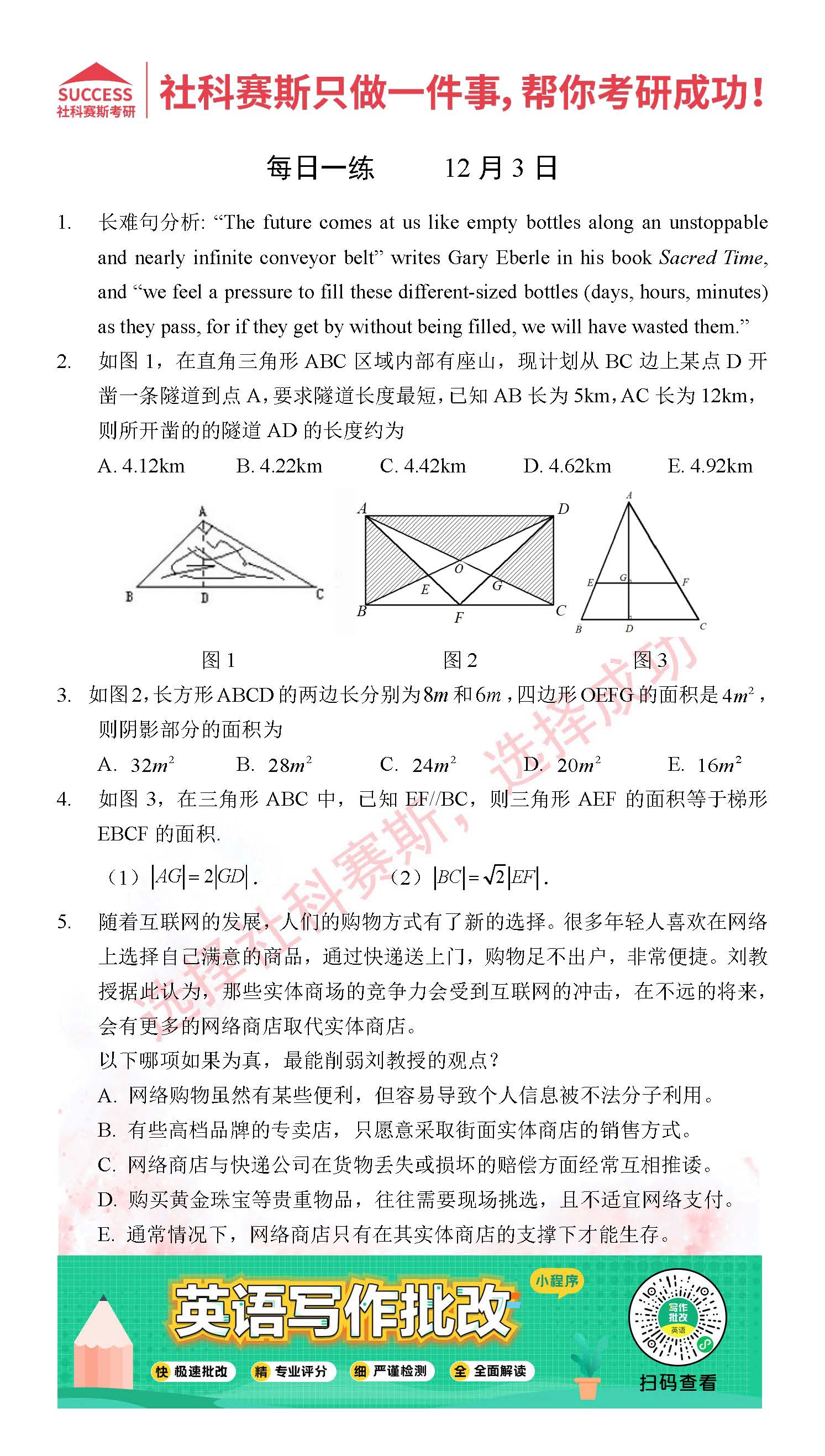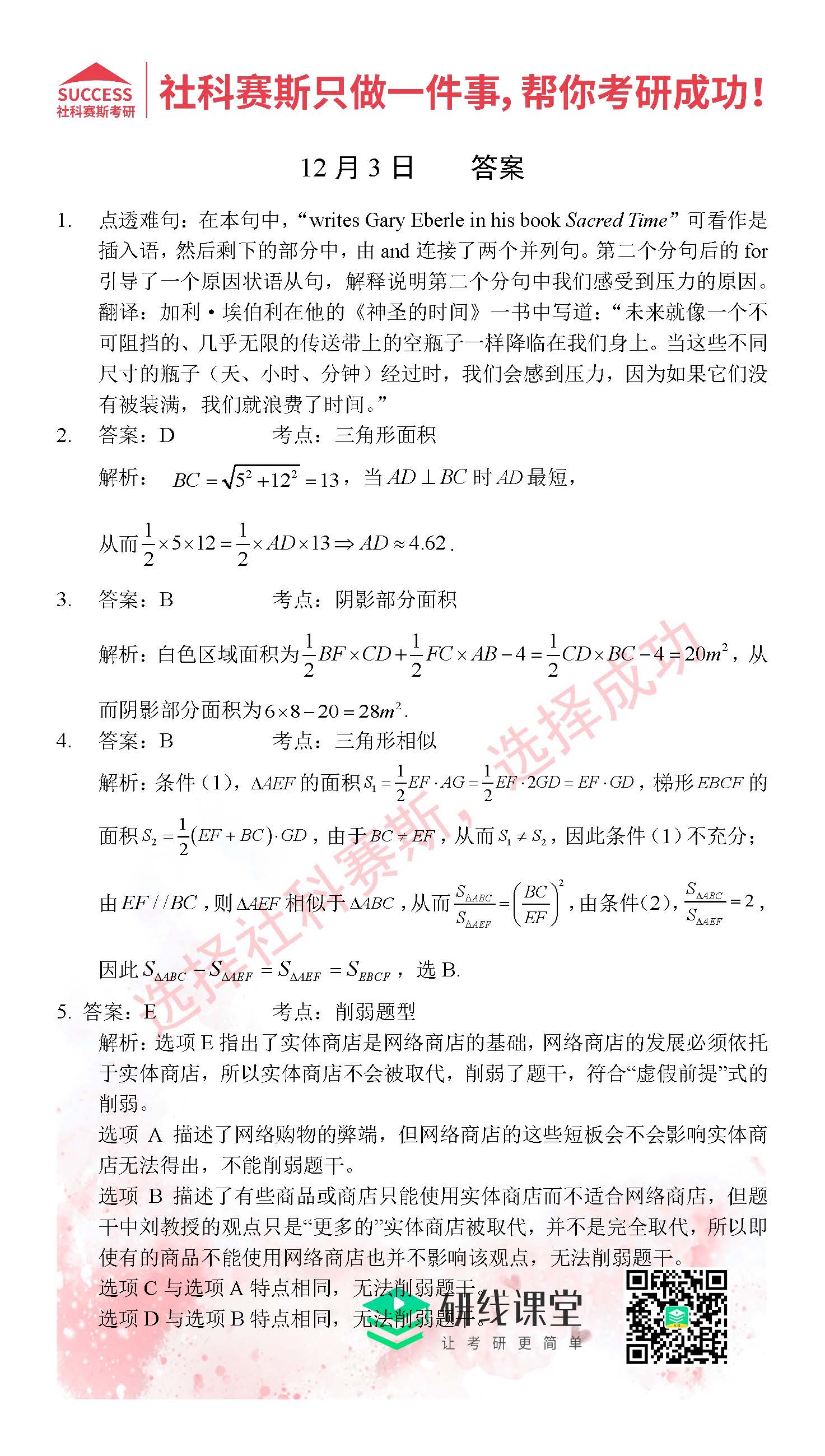 考研是一場持久戰,保持良好的學習習慣,是能確保復習高效的關鍵。今天社科賽斯MBA備考網小編整理了“2021管理類聯12月3日每日一練及答案”的內容,希望能對廣大考生有所幫助。
