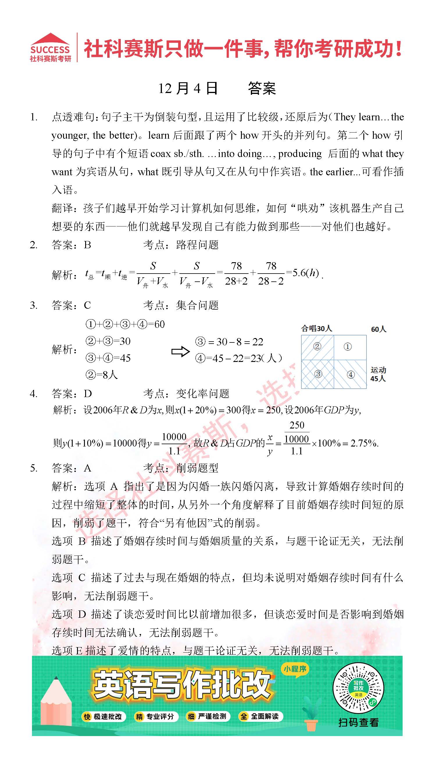 導讀:考研是一場持久戰,保持良好的學習習慣,是能確保復習高效的關鍵。今天社科賽斯MBA備考網小編整理了“2021管理類聯12月4日每日一練及答案”的內容,希望能對廣大考生有所幫助。