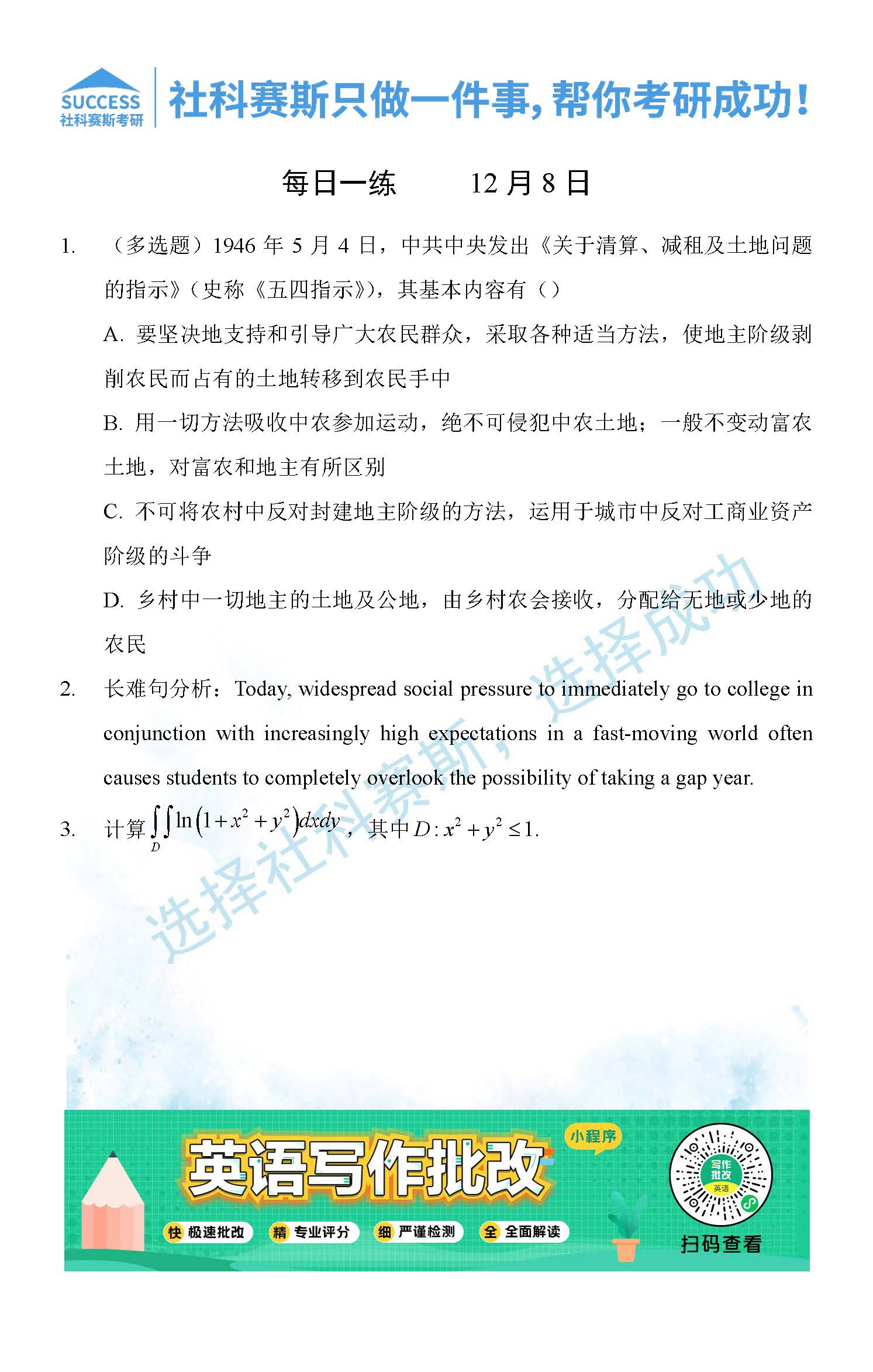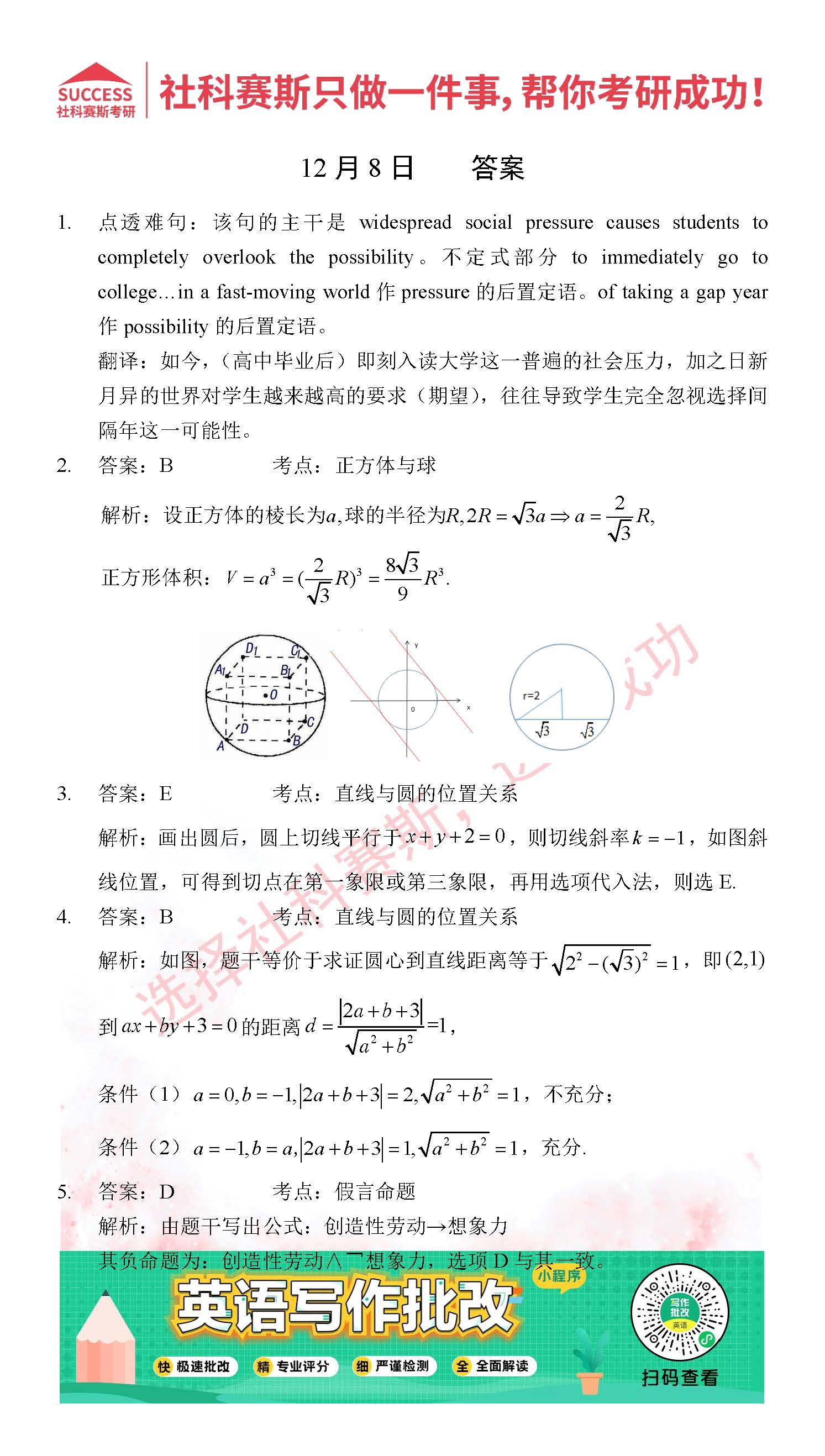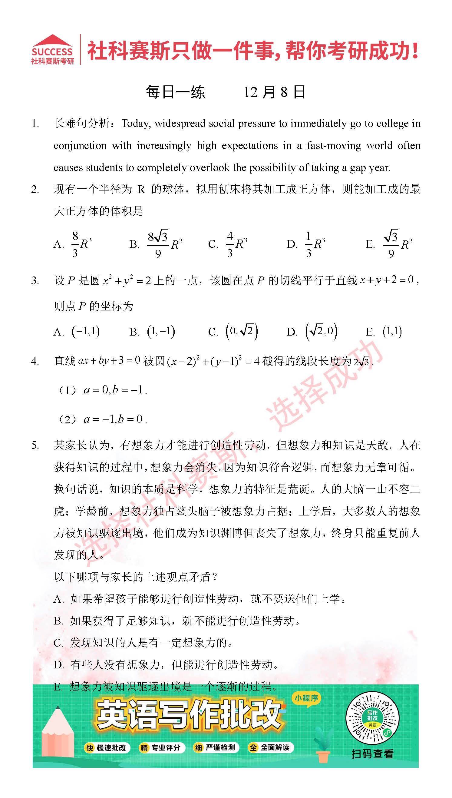 導讀:考研是一場持久戰,保持良好的學習習慣,是能確保復習高效的關鍵。今天社科賽斯MBA備考網小編整理了“2021管理類聯12月8日每日一練及答案”的內容,希望能對廣大考生有所幫助。