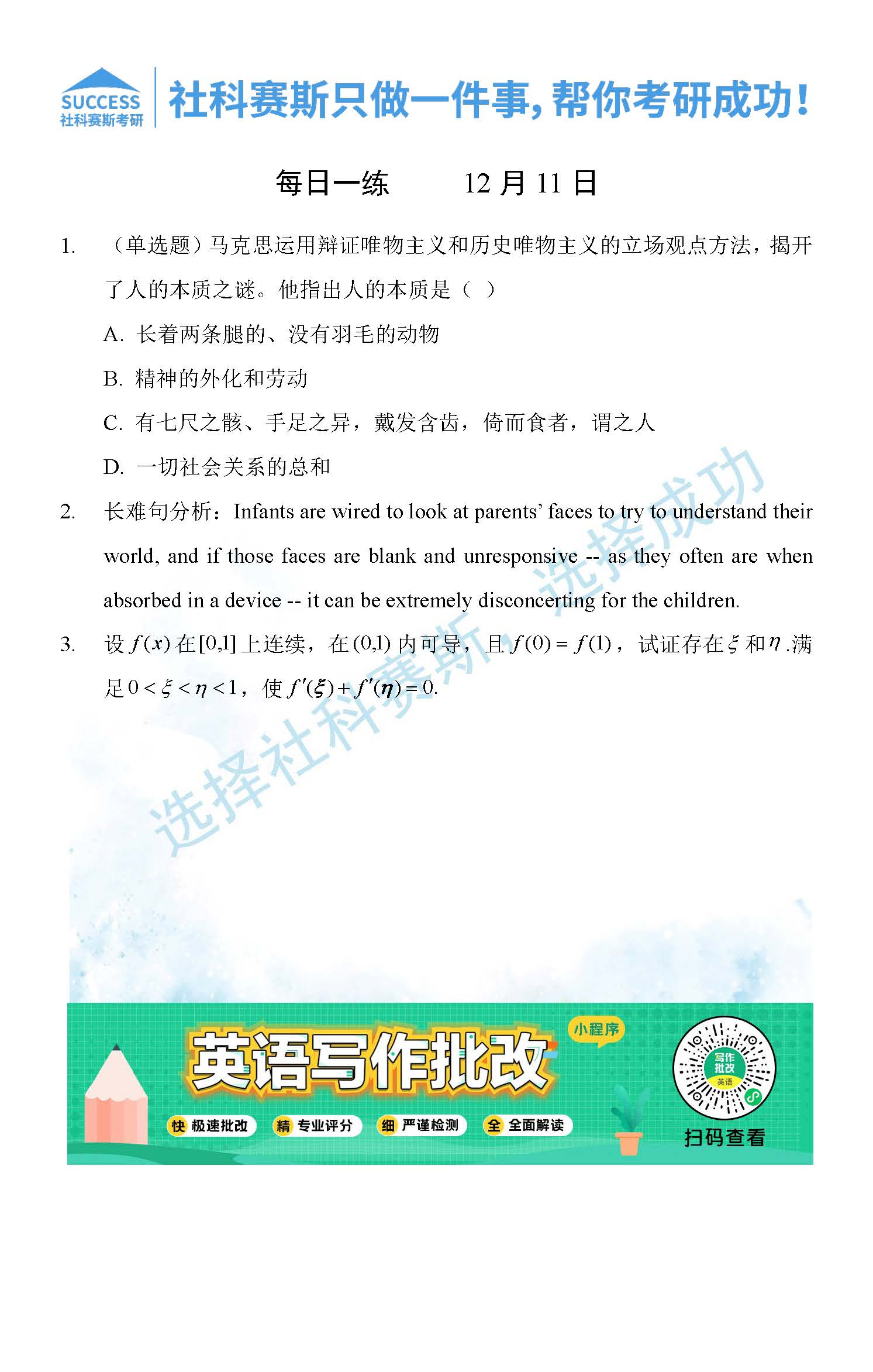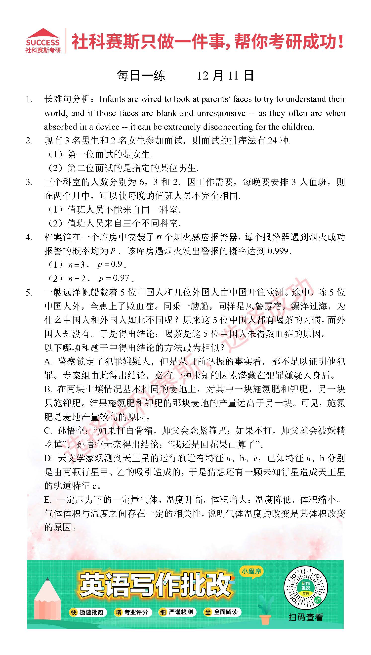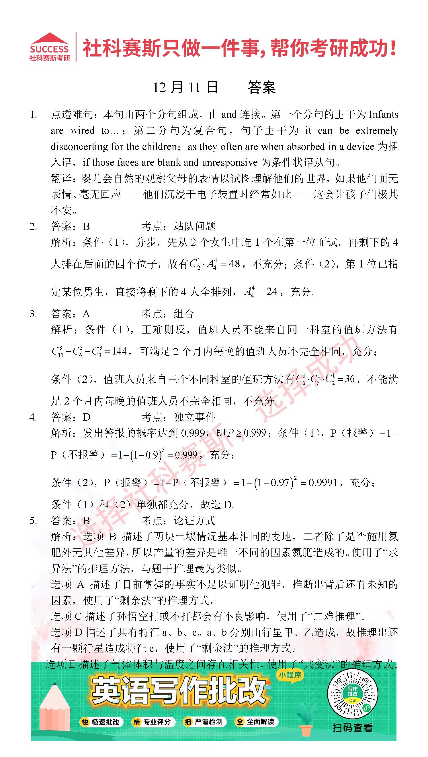 導讀:考研是一場持久戰,保持良好的學習習慣,是能確保復習高效的關鍵。今天社科賽斯MBA備考網小編整理了“2021管理類聯12月11日每日一練及答案”的內容,希望能對廣大考生有所幫助。