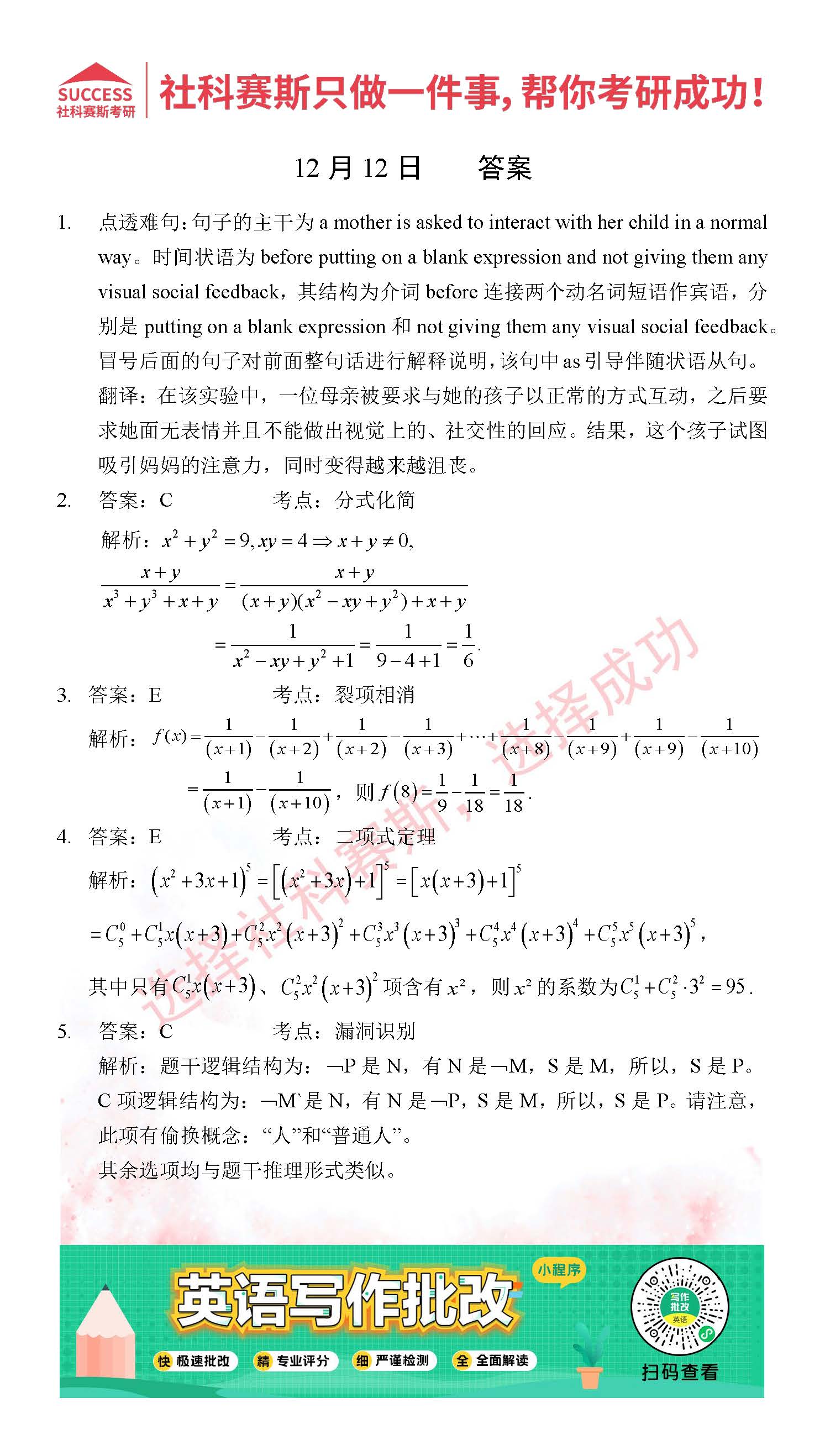 導讀:考研是一場持久戰,保持良好的學習習慣,是能確保復習高效的關鍵。今天社科賽斯MBA備考網小編整理了“2021管理類聯12月12日每日一練及答案”的內容,希望能對廣大考生有所幫助。
