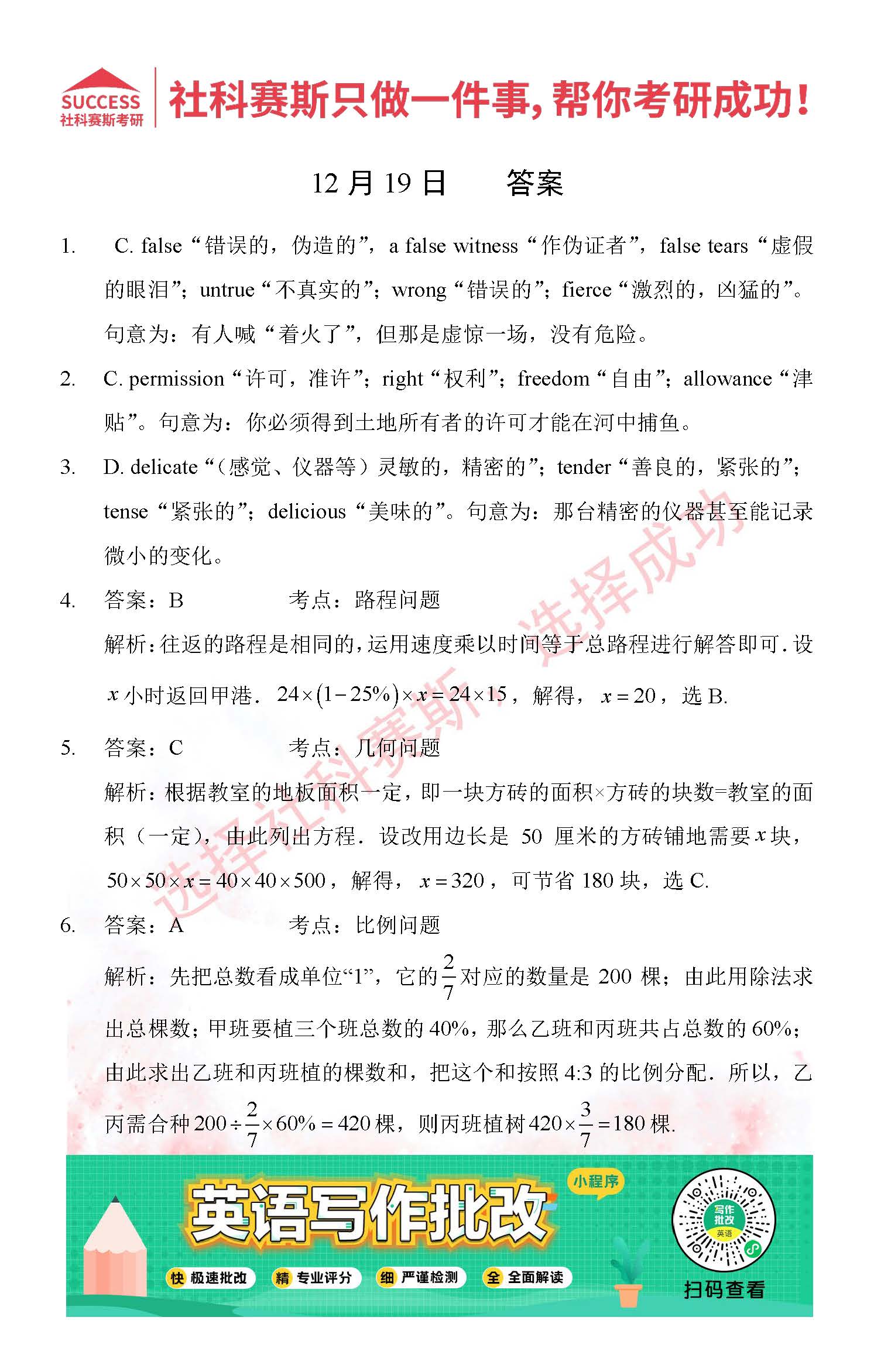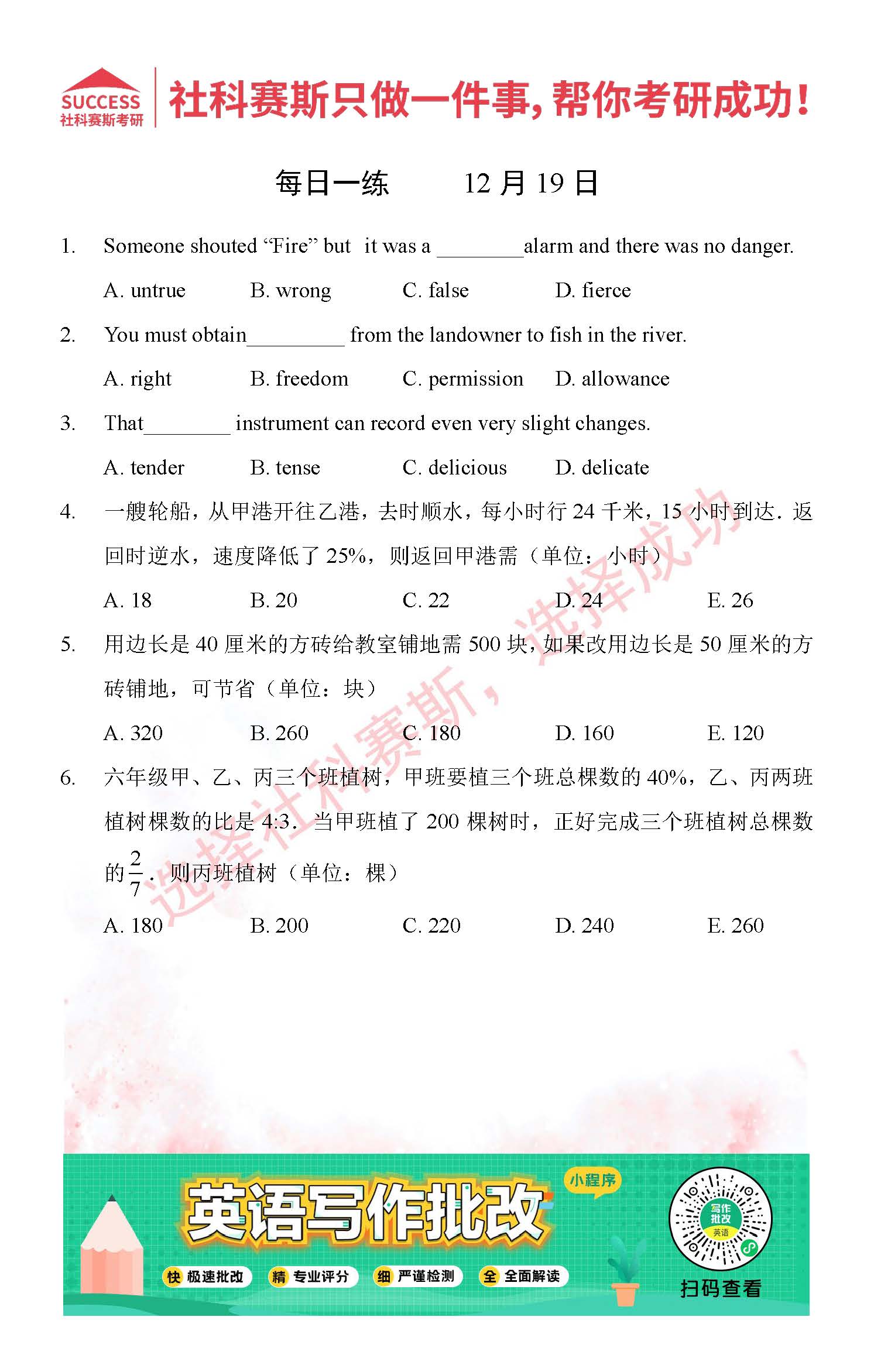 導讀:考研是一場持久戰,保持良好的學習習慣,是能確保復習高效的關鍵。今天社科賽斯MBA備考網小編整理了“2021管理類聯12月19日每日一練及答案”的內容,希望能對廣大考生有所幫助。