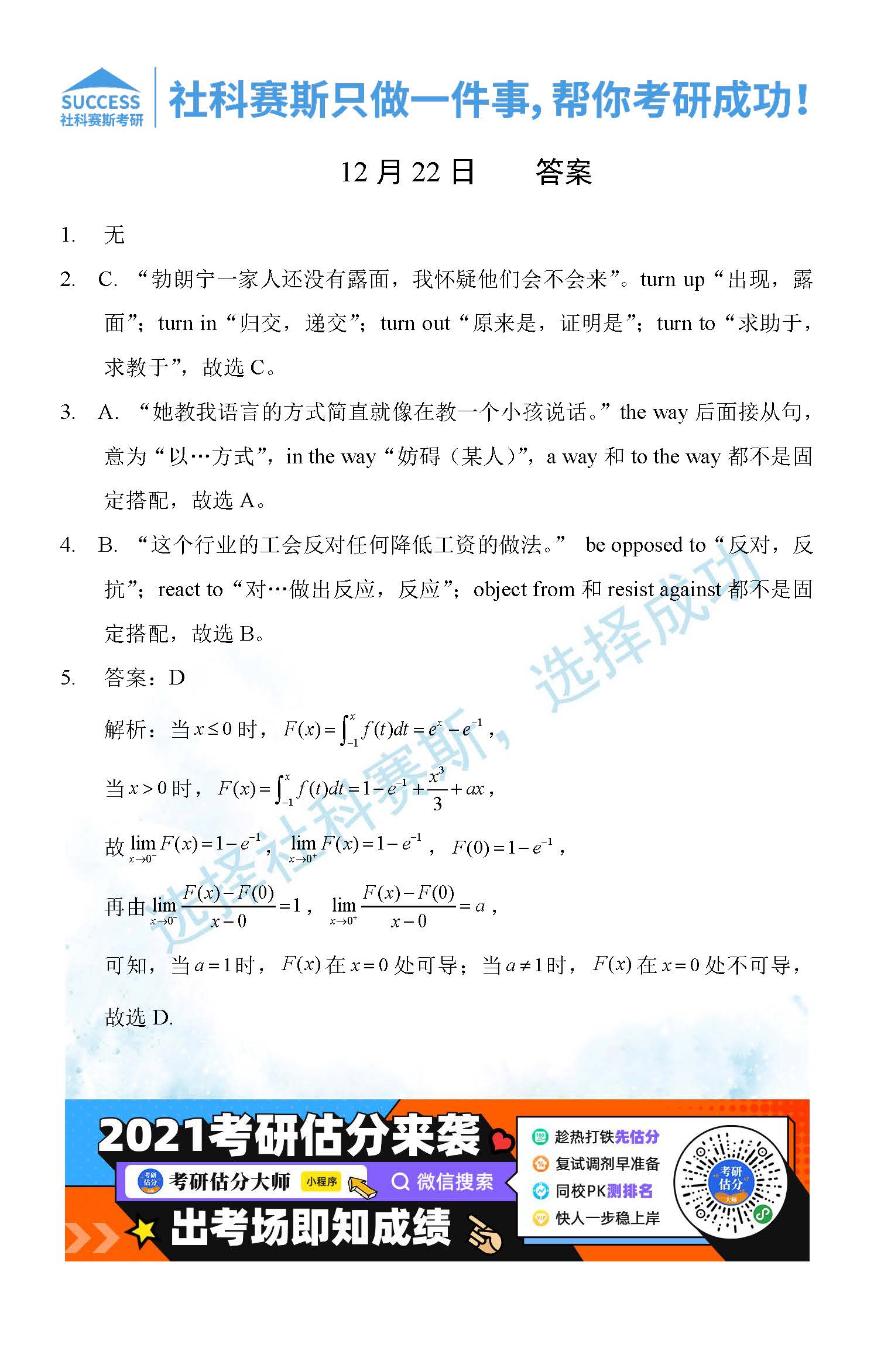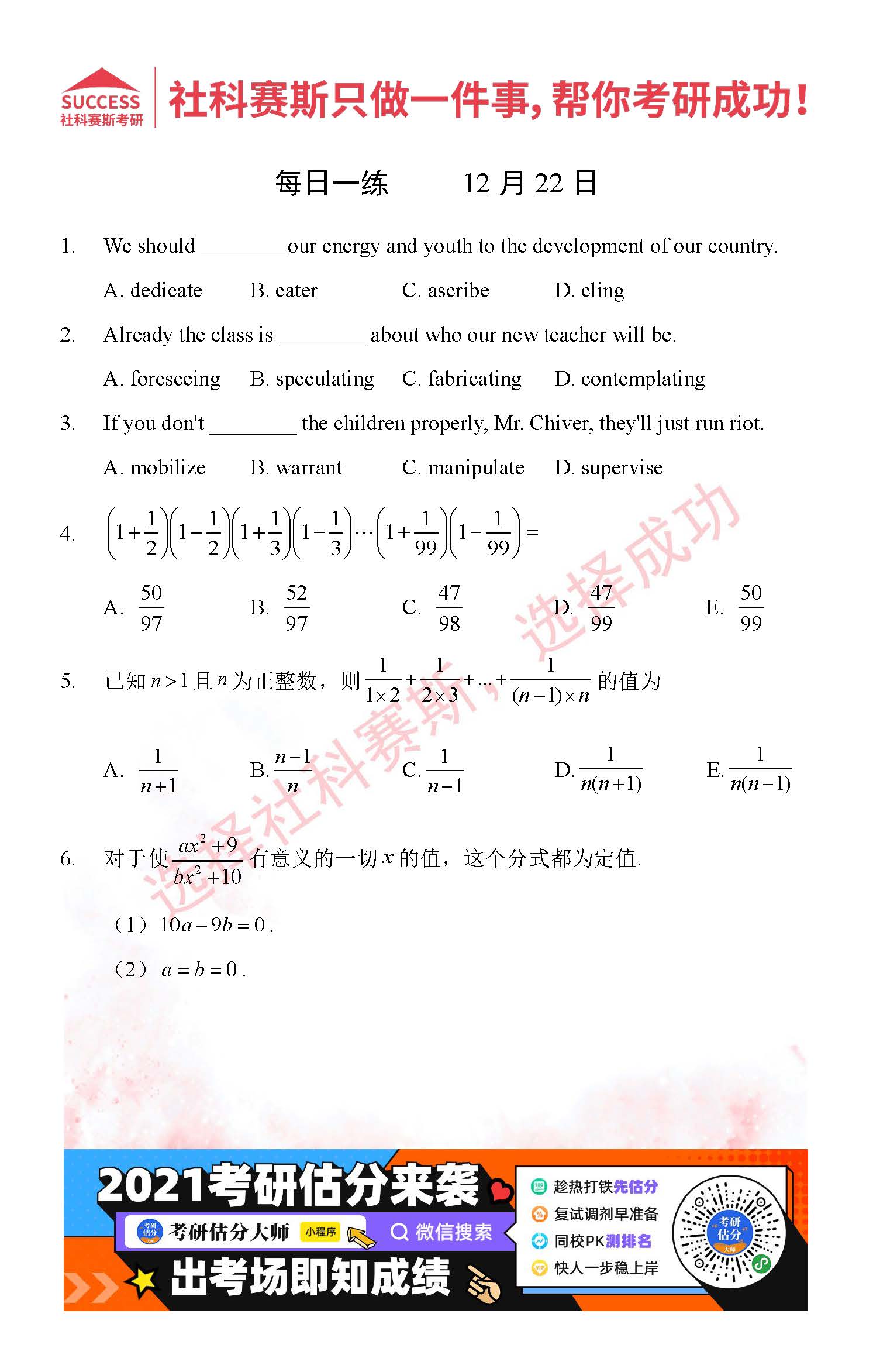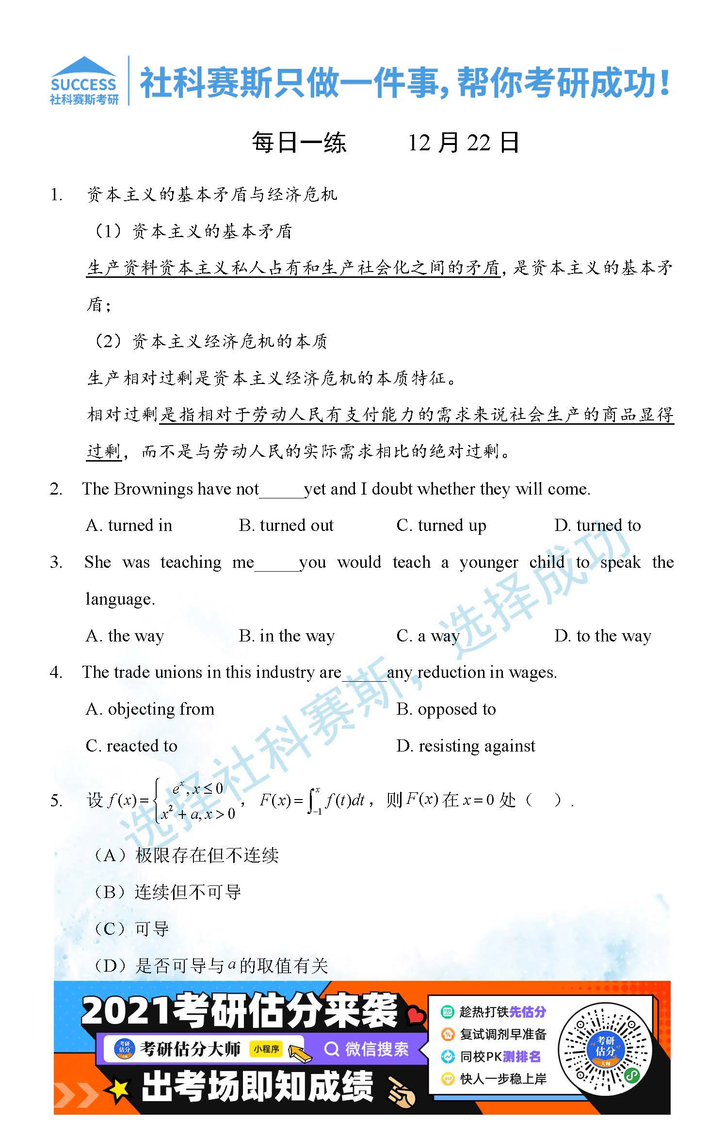 首頁> 管理類聯(lián)考每日一練 > 2021管理類聯(lián)考12月22日每日一練及答案