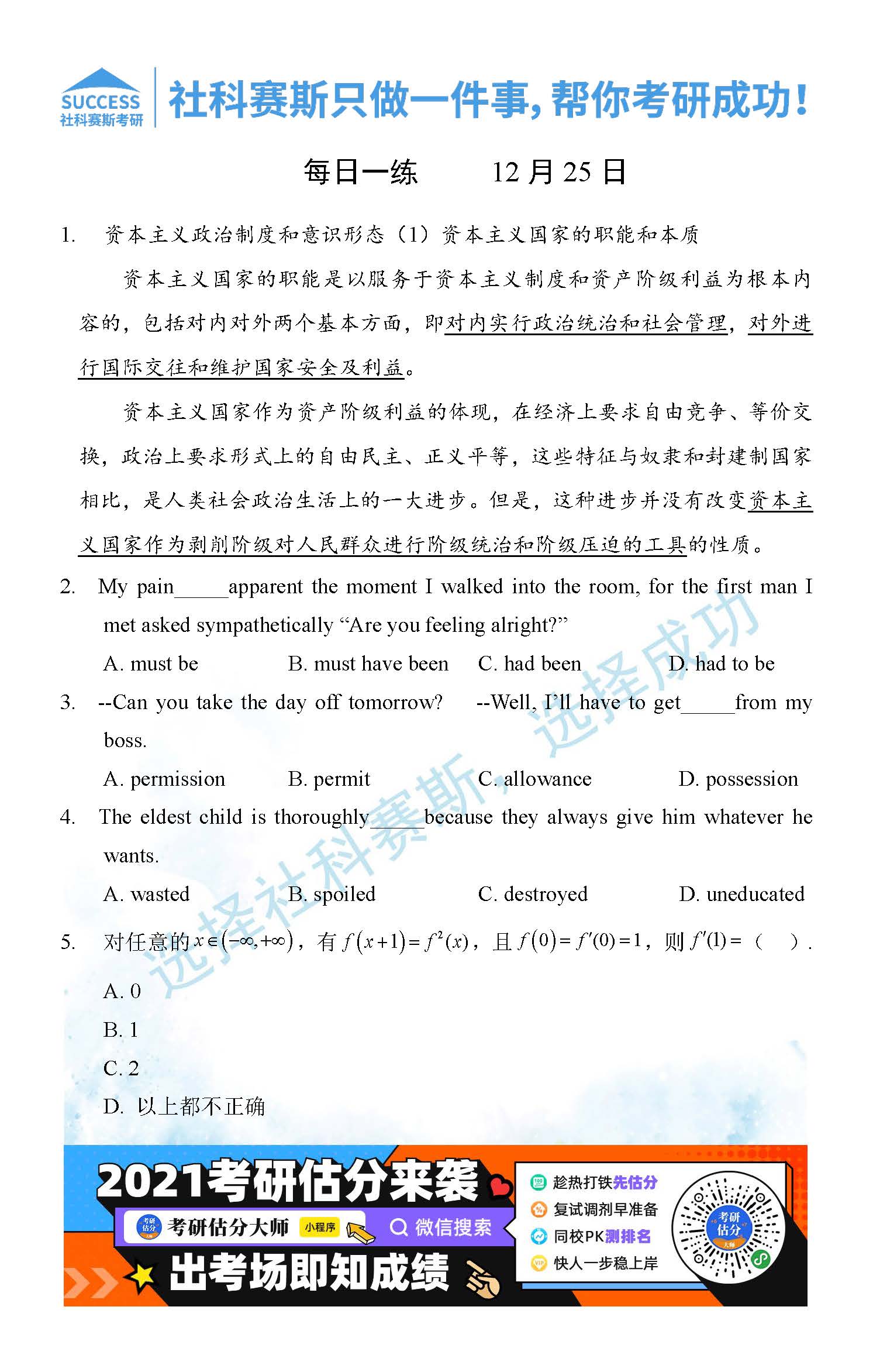 首頁> 管理類聯(lián)考每日一練 > 2021管理類聯(lián)考12月25日每日一練及答案