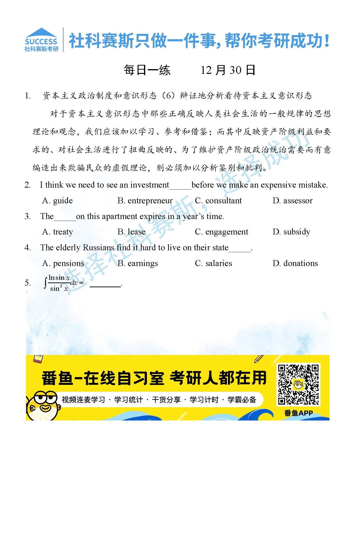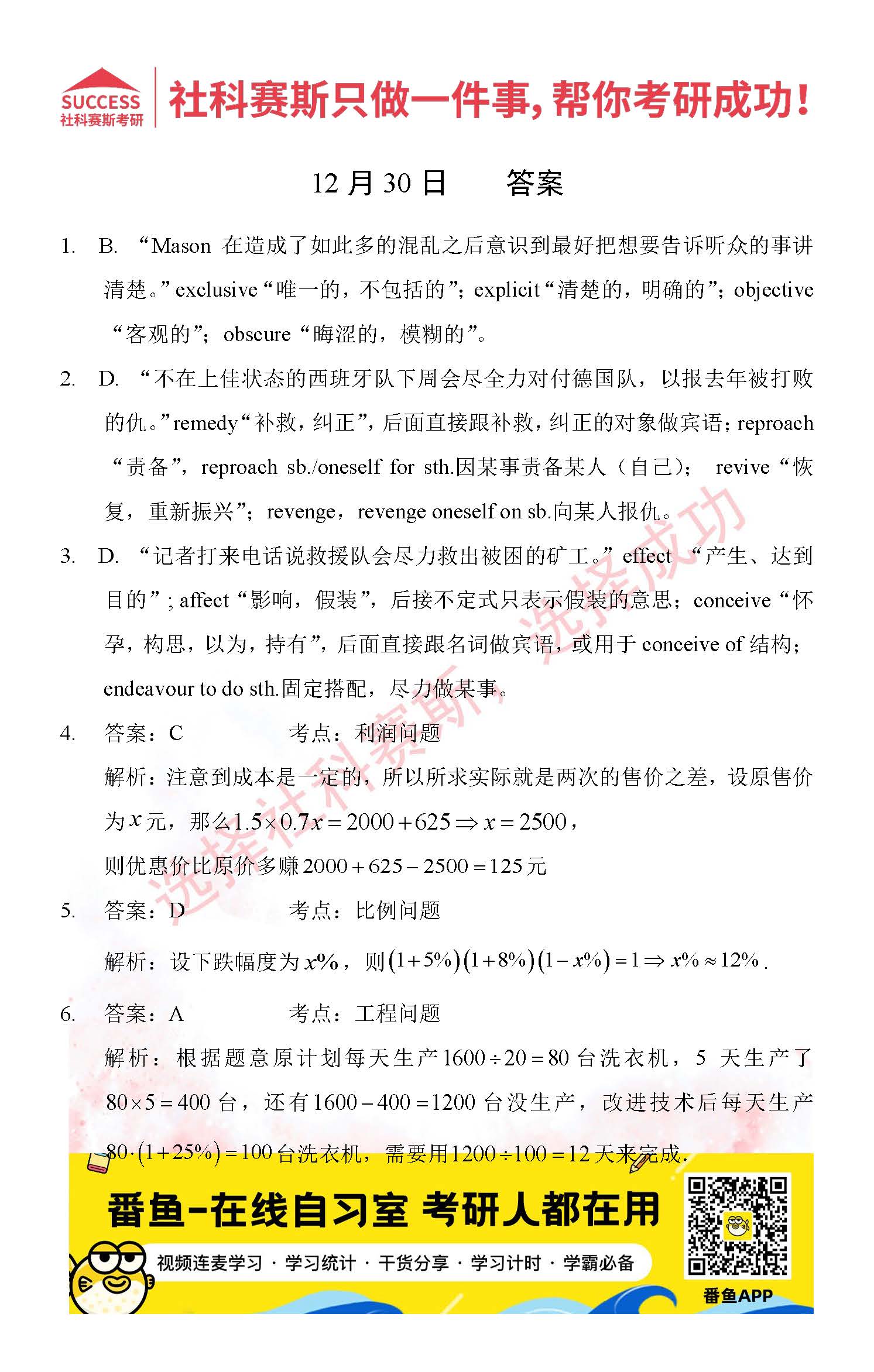 導讀:考研是一場持久戰,保持良好的學習習慣,是能確保復習高效的關鍵。今天社科賽斯MBA備考網小編整理了“2021管理類聯12月30日每日一練及答案”的內容,希望能對廣大考生有所幫助。