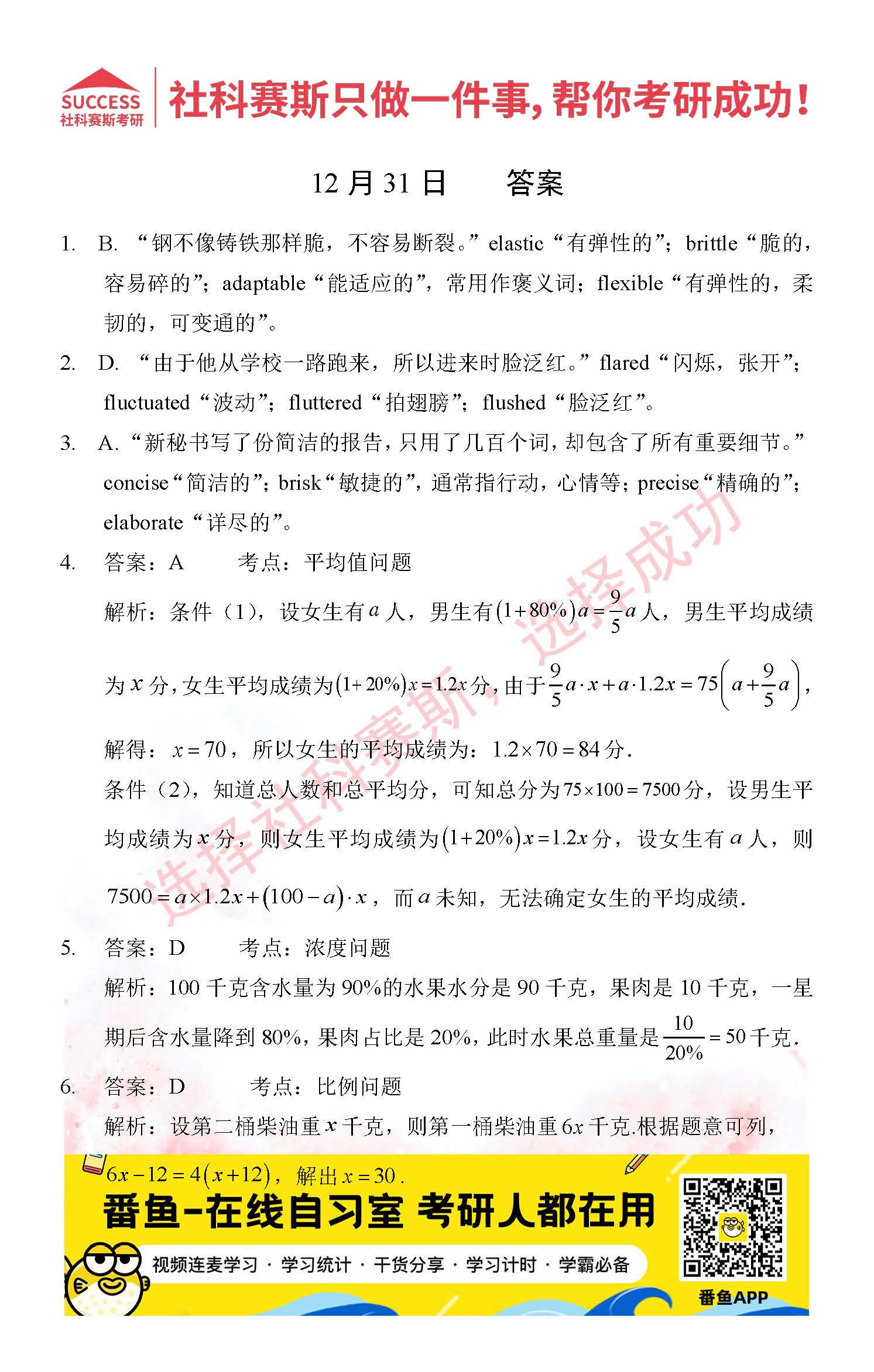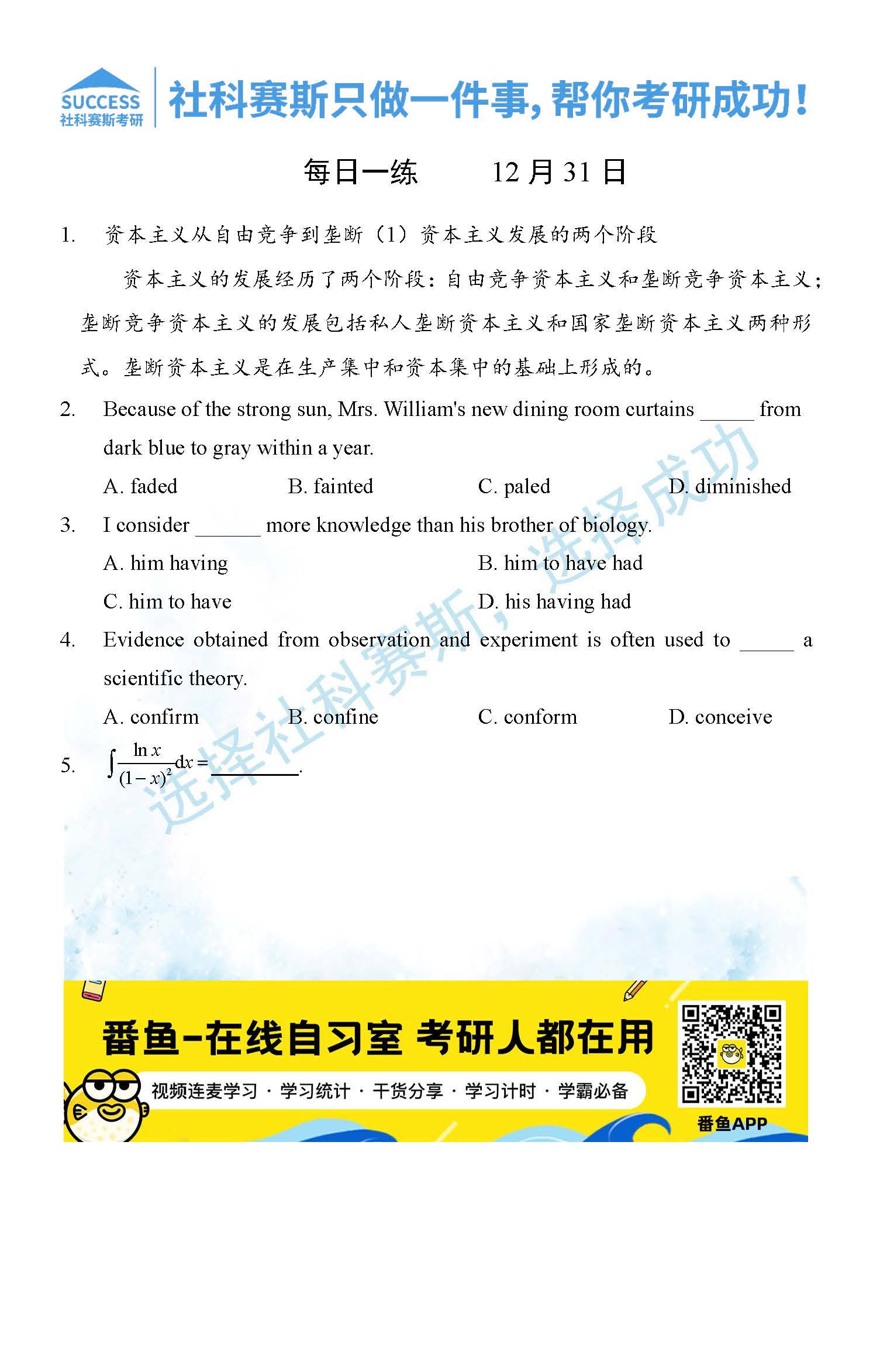 導讀:考研是一場持久戰,保持良好的學習習慣,是能確保復習高效的關鍵。今天社科賽斯MBA備考網小編整理了“2021管理類聯12月31日每日一練及答案”的內容,希望能對廣大考生有所幫助。