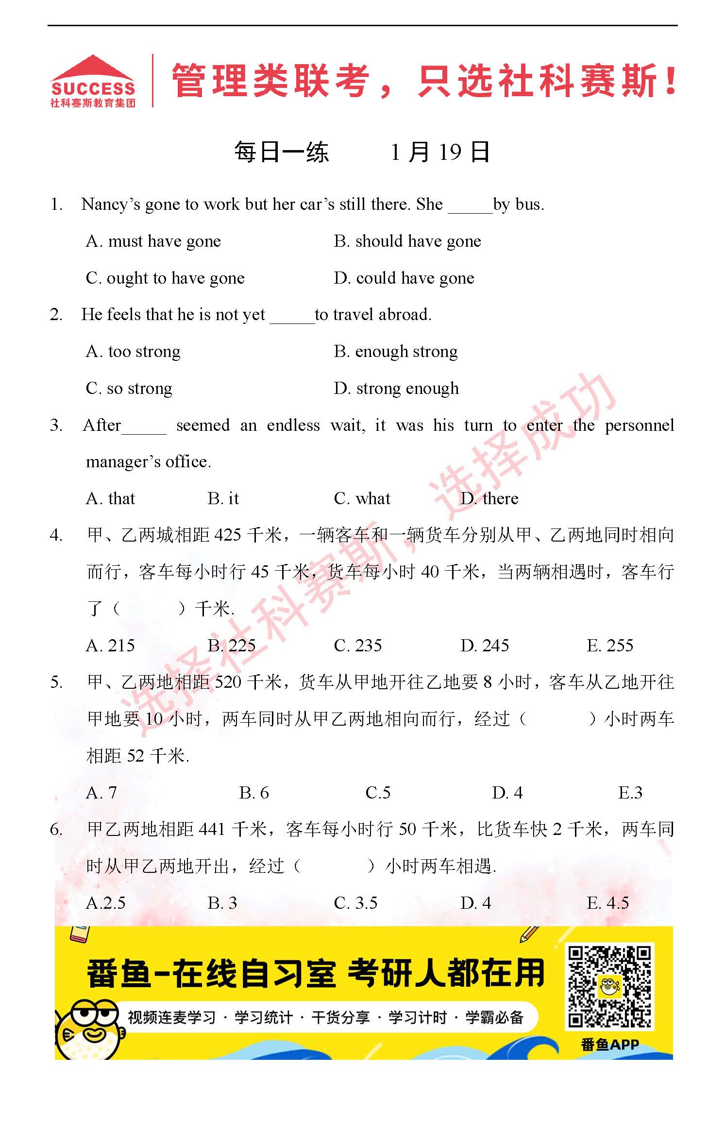 導讀:考研是一場持久戰(zhàn),保持良好的學習習慣,是能確保復習高效的關(guān)鍵。今天社科賽斯MBA備考網(wǎng)小編整理了“2022管理類聯(lián)1月19日每日一練及答案”的內(nèi)容,希望能對廣大考生有所幫助。
