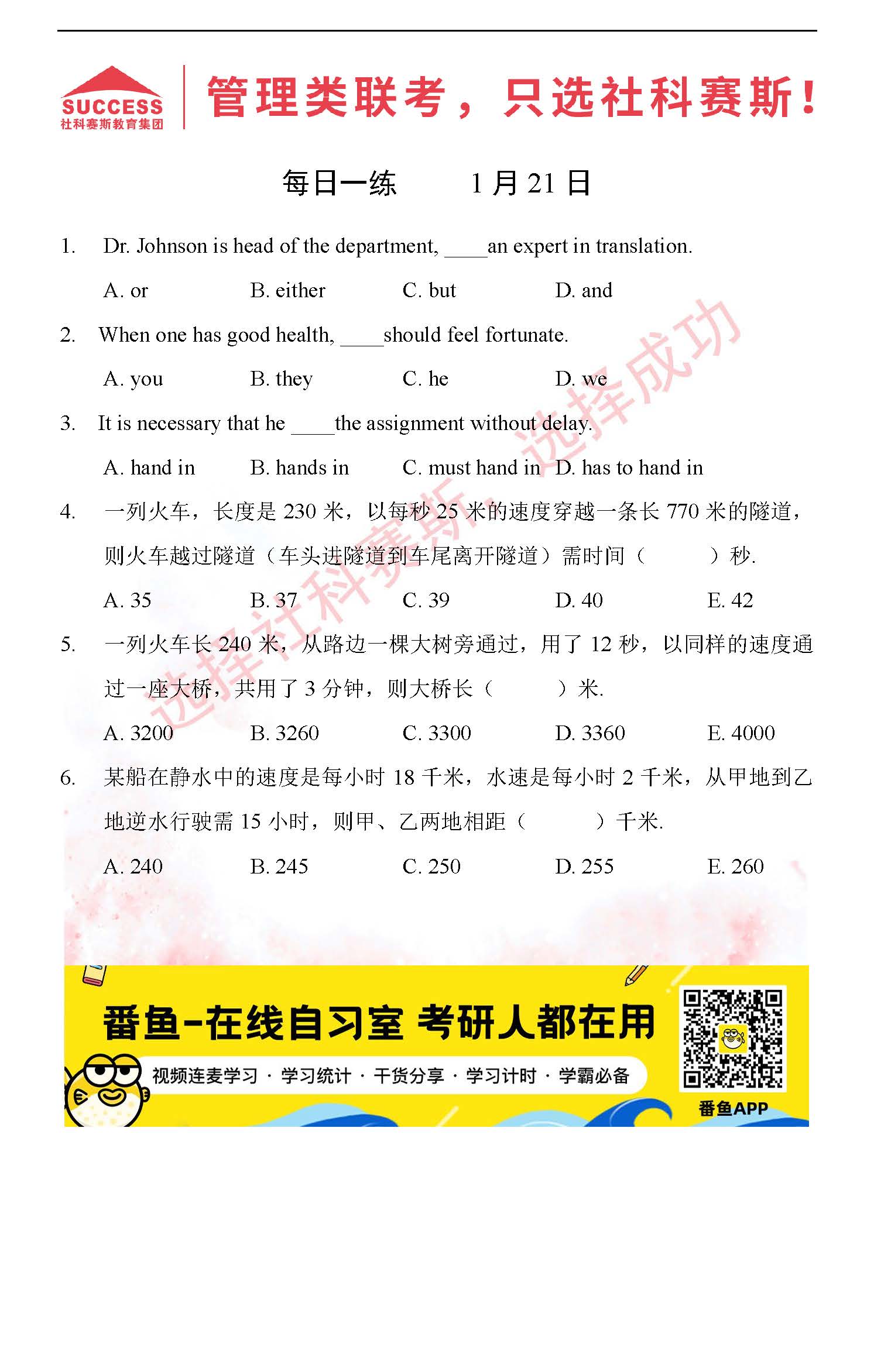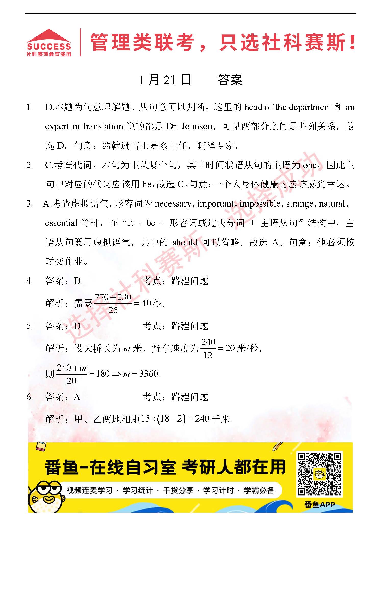 首頁> 管理類聯(lián)考每日一練 > 2022管理類聯(lián)考1月21日每日一練及答案
