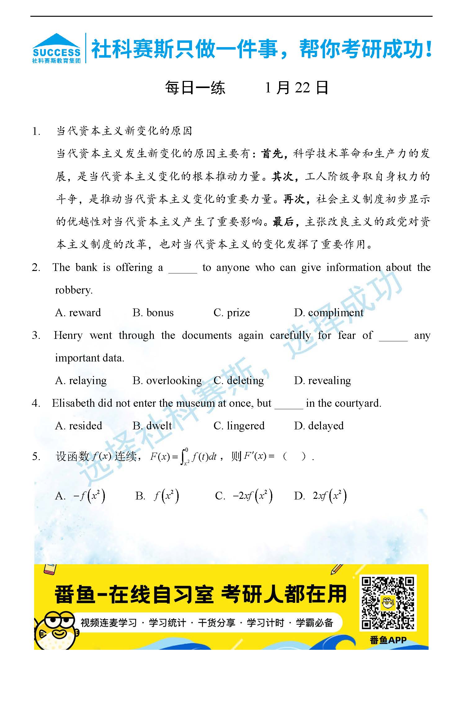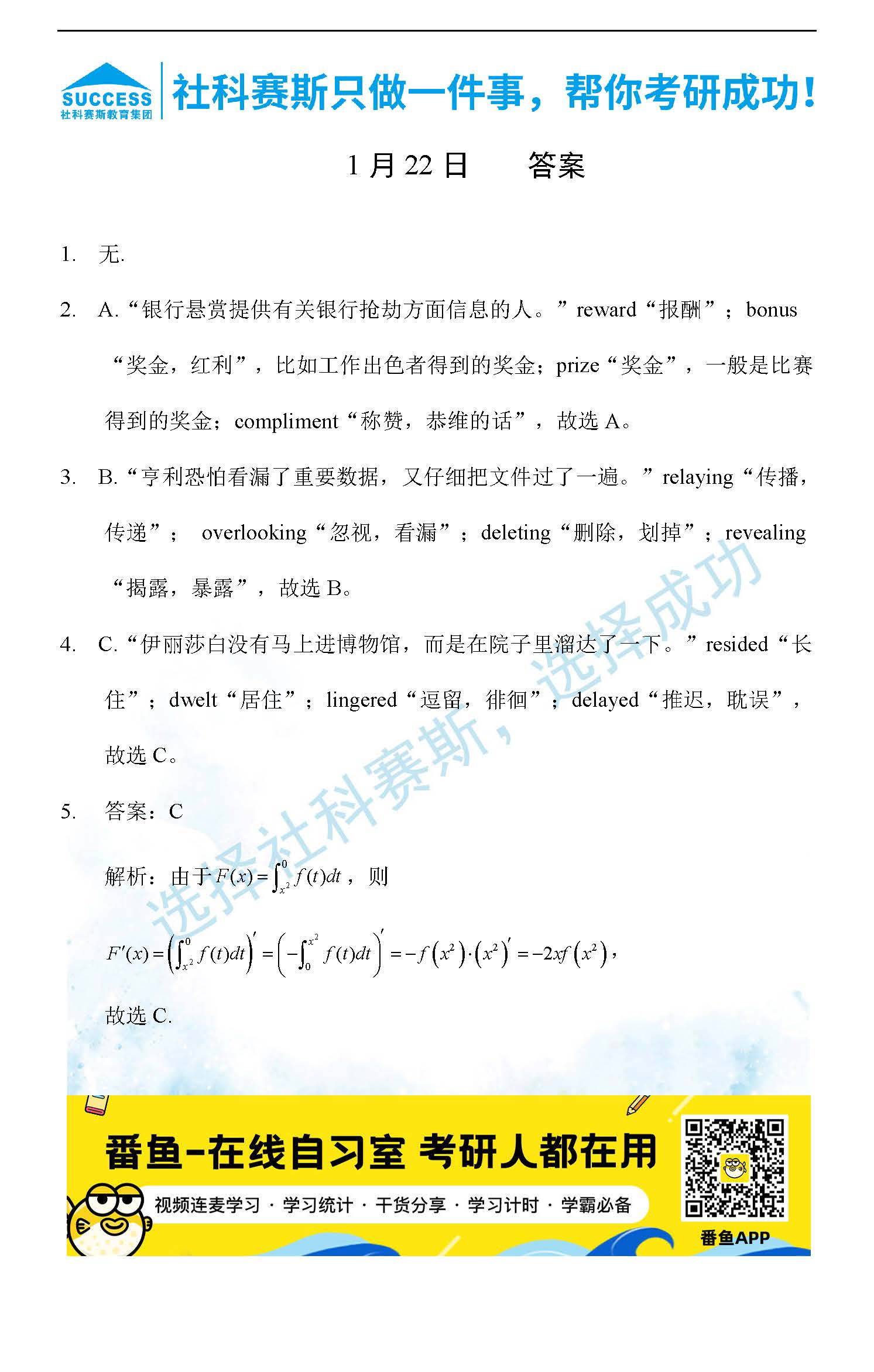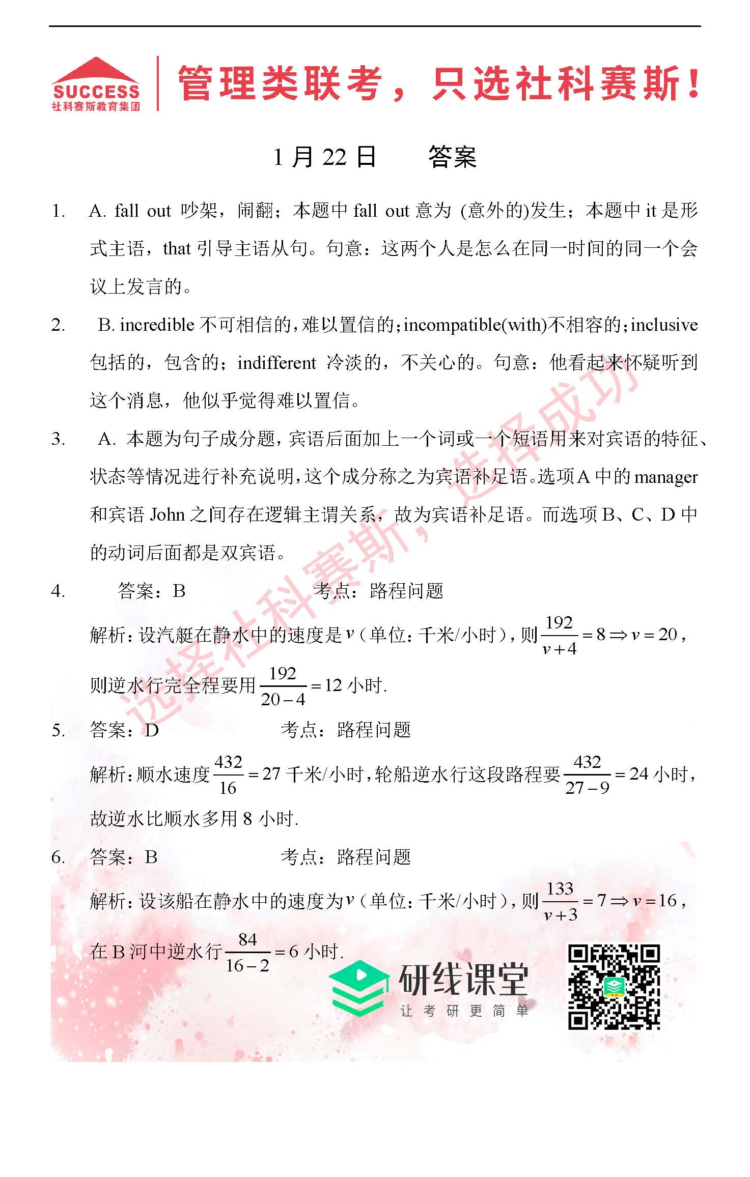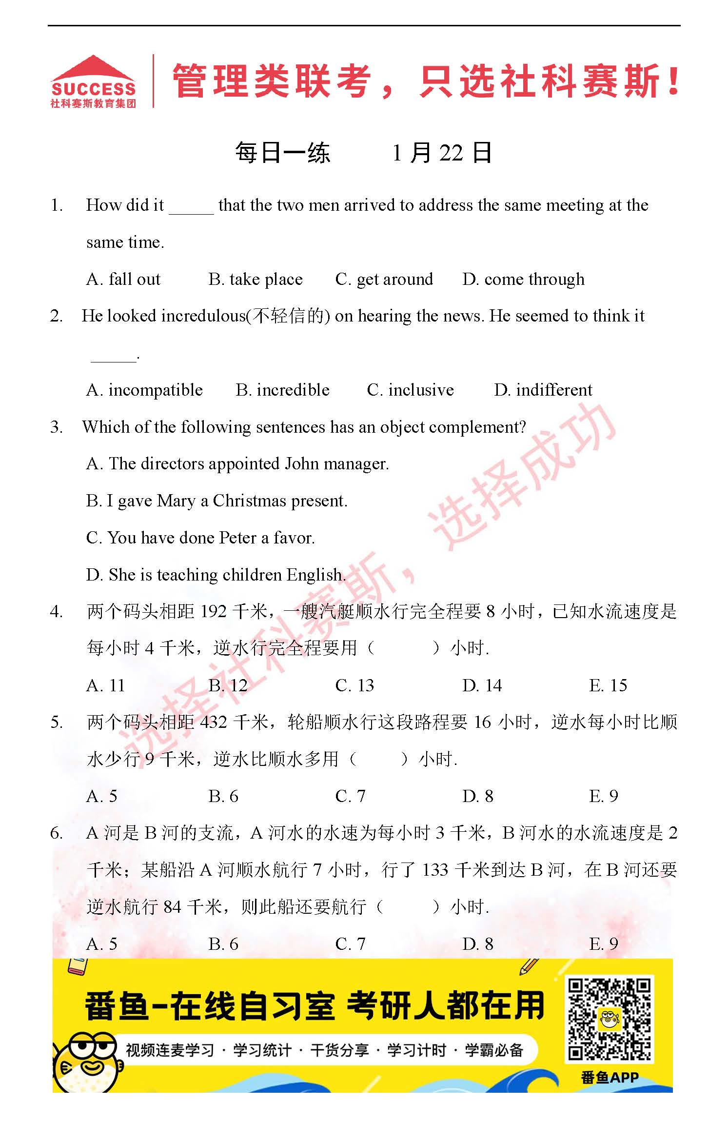 導讀:考研是一場持久戰,保持良好的學習習慣,是能確保復習高效的關鍵。今天社科賽斯MBA備考網小編整理了“2022管理類聯1月22日每日一練及答案”的內容,希望能對廣大考生有所幫助。