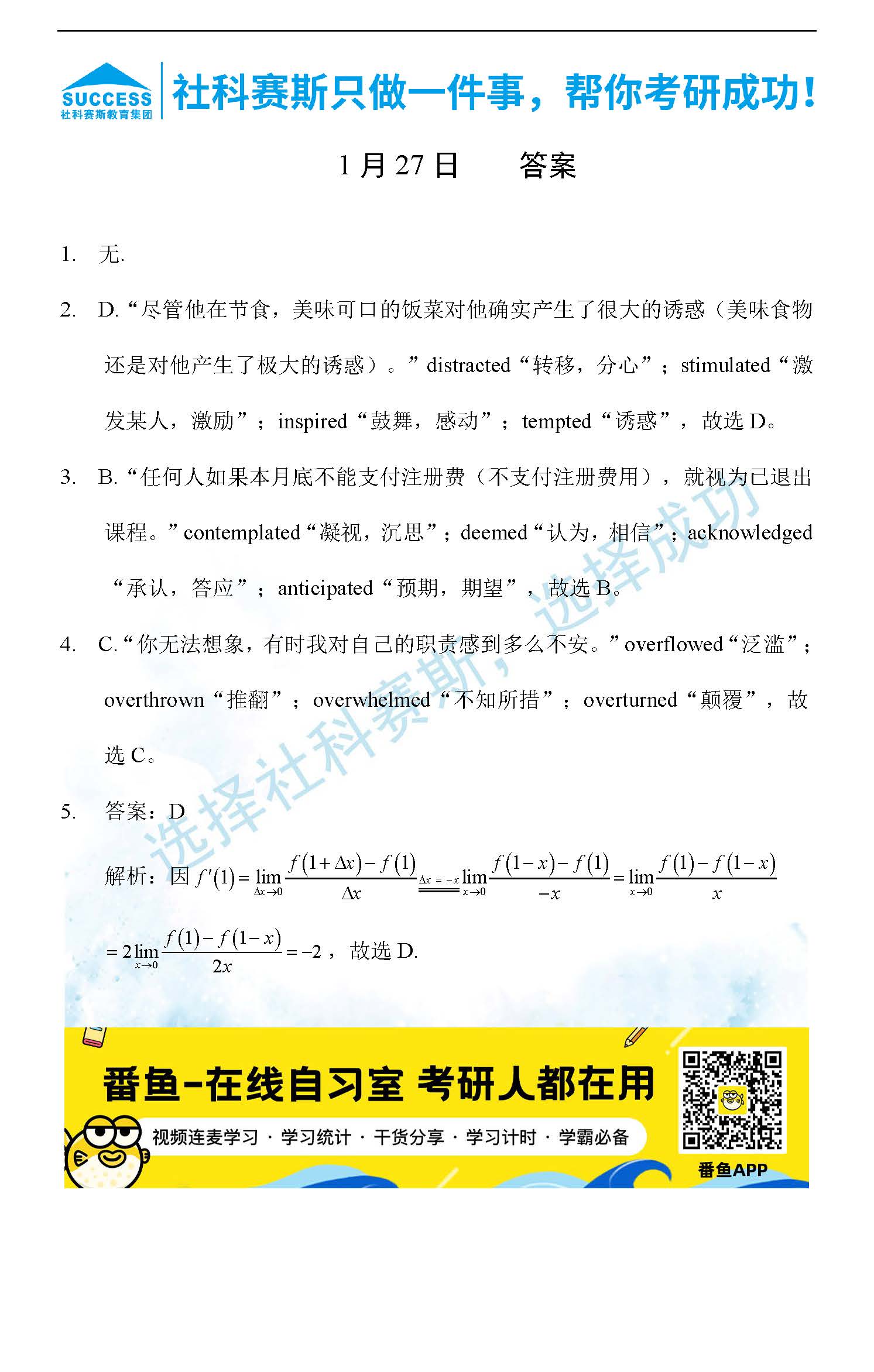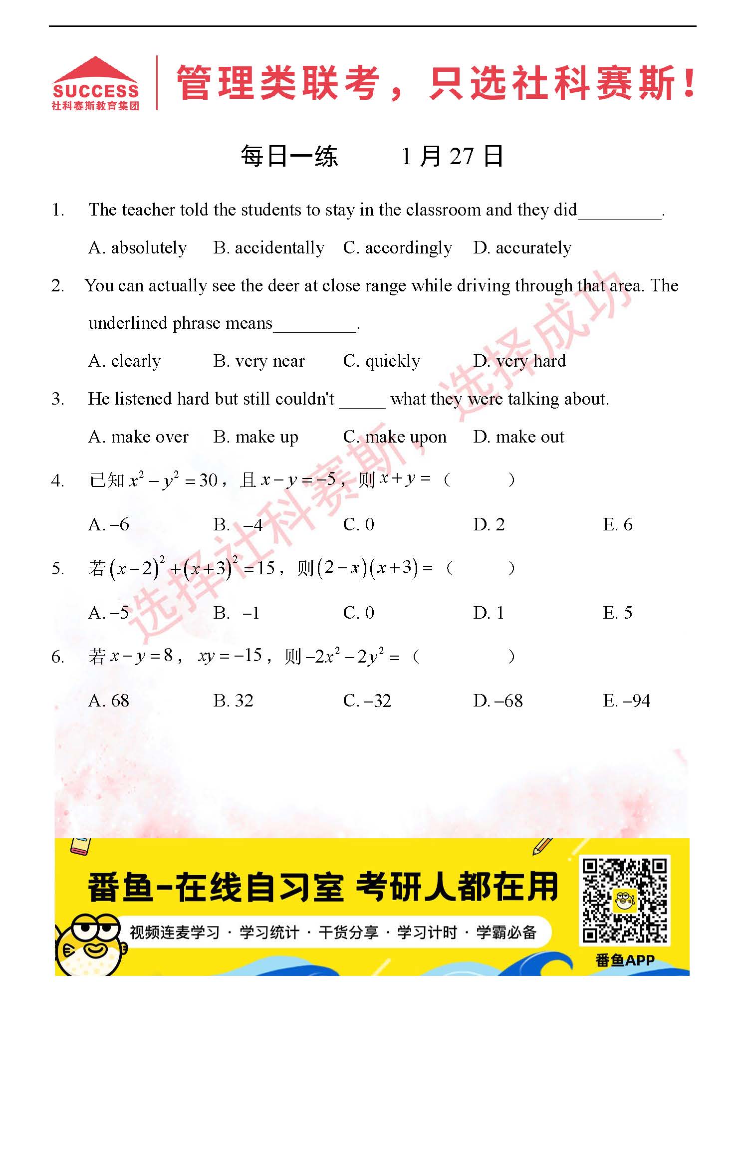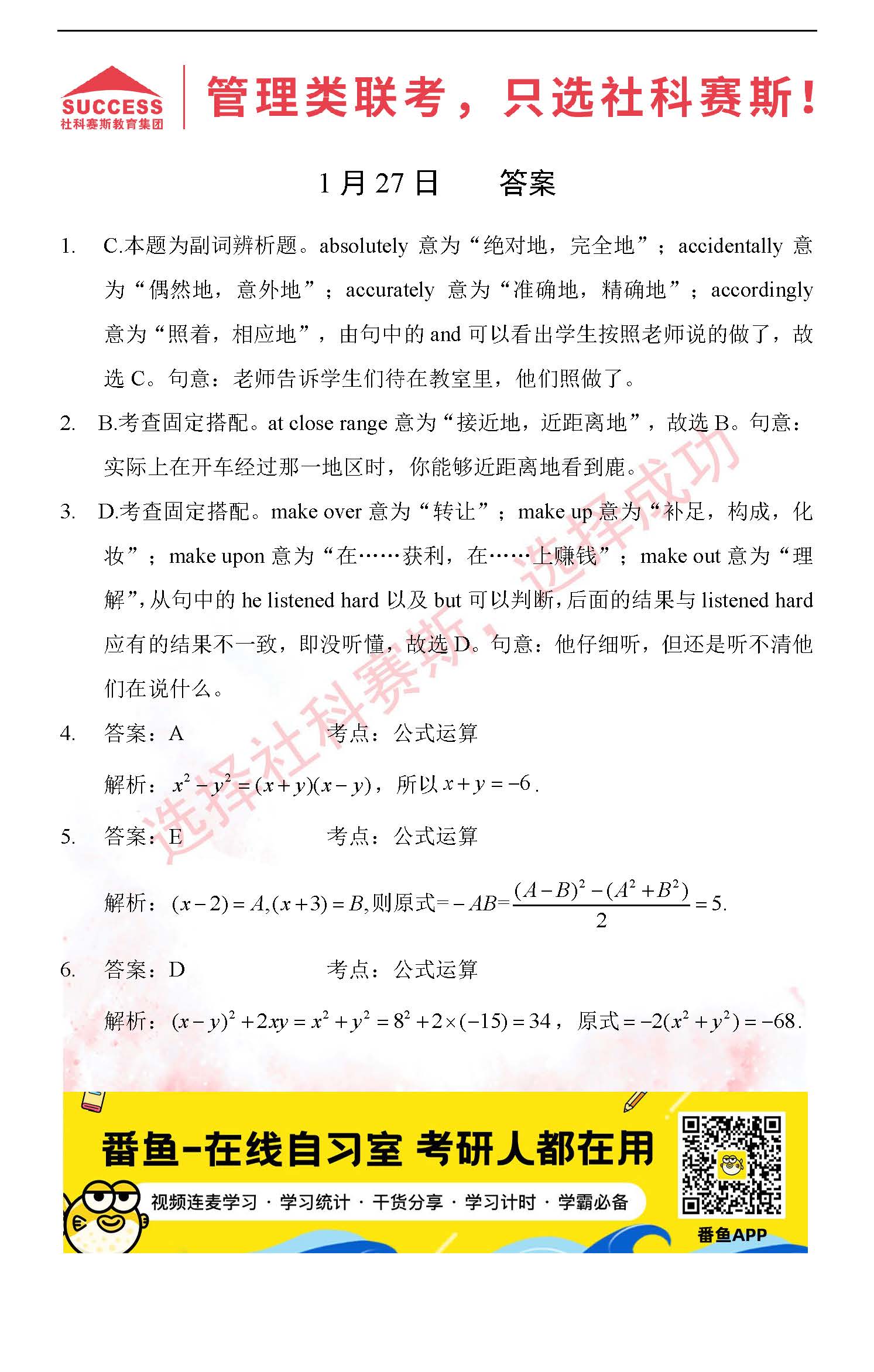 導讀:考研是一場持久戰,保持良好的學習習慣,是能確保復習高效的關鍵。今天社科賽斯MBA備考網小編整理了“2022管理類聯1月27日每日一練及答案”的內容,希望能對廣大考生有所幫助。